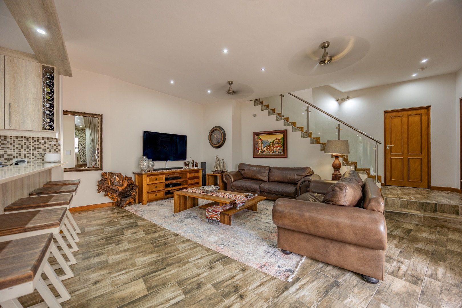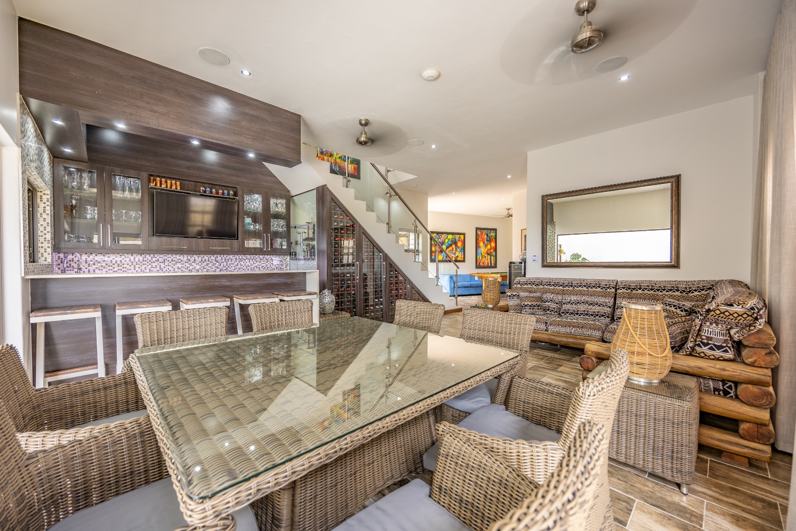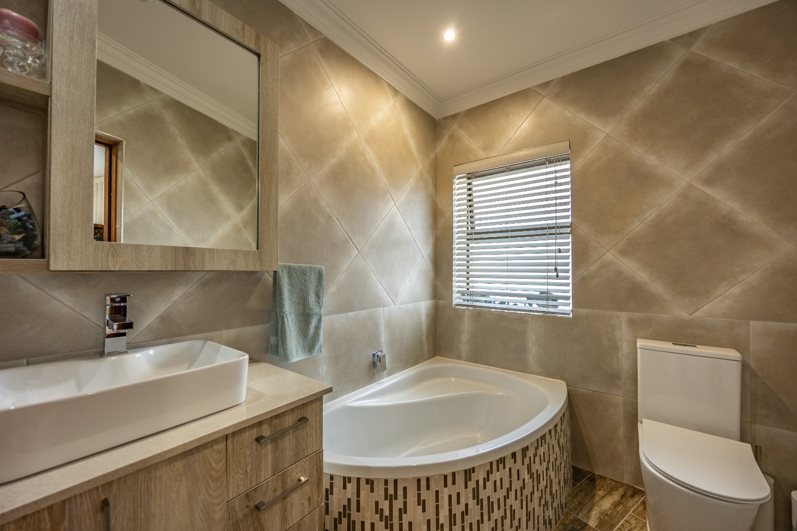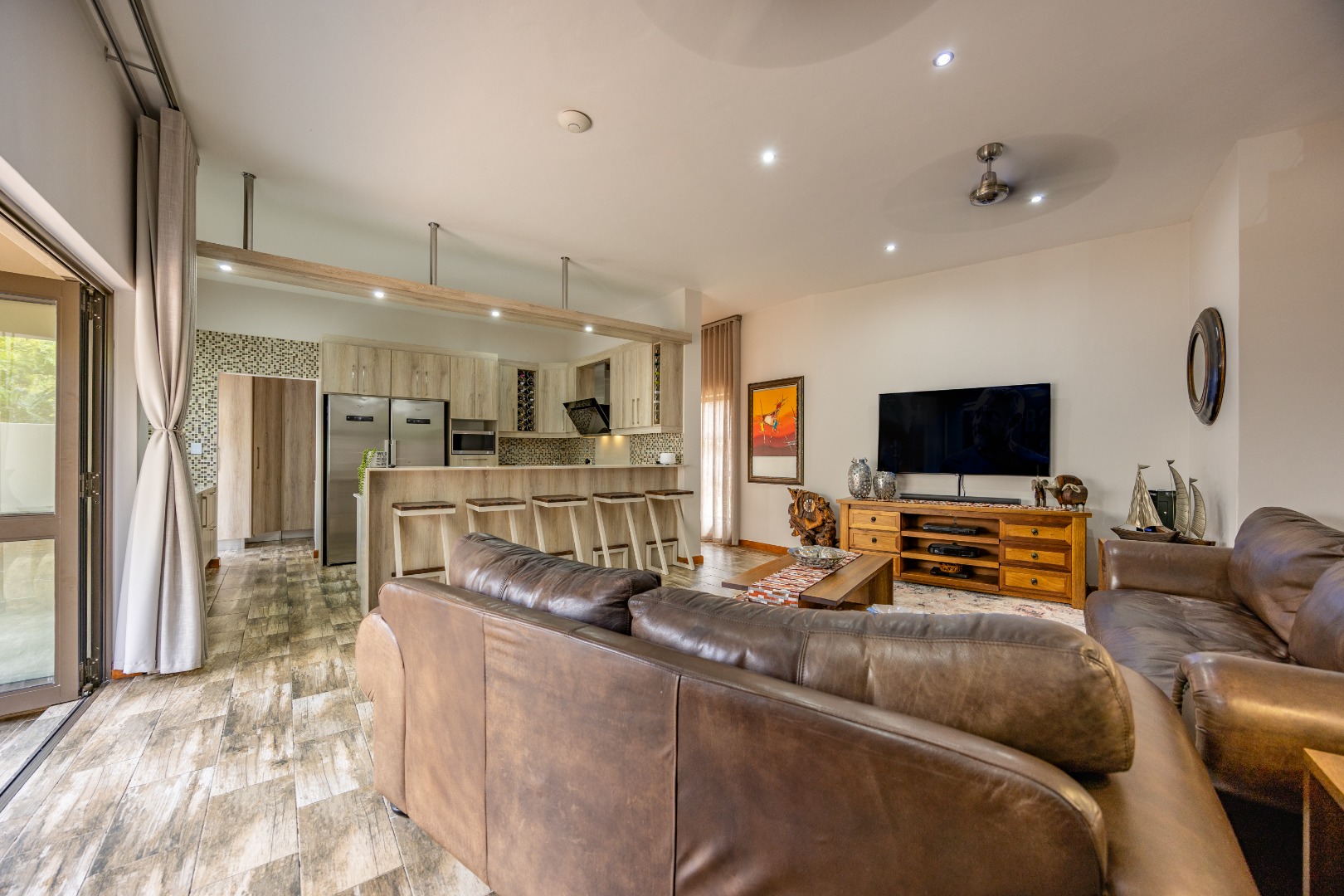 Experience unparalleled elegance in this remarkable 11-bedroom residence situated in the exclusive Copperleaf Golf & Country Estate. Overlooking the 12th and 13th holes of the Ernie Els-designed golf course and framed by the majestic Magaliesberg mountain range, this 1,200m² masterpiece redefines luxury living. Designed for multi-generational families, boutique guest accommodation, or discerning entertainers, the property spans four distinct homes that combine comfort, sophistication, and practicality. The main house boasts four expansive en-suite bedrooms with walk-in closets, including a grand master suite with air-conditioning and a double spa bath. The open-plan kitchen, complete with a scullery, pantry, and gas appliances, flows effortlessly into the lounge and dining areas, enhanced by a built-in gas heater and large stacking doors that frame breathtaking sunset views across the fairways.