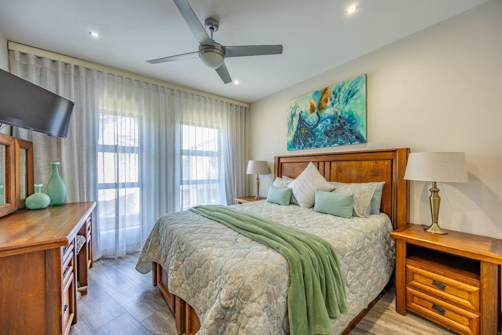 - Flat 3: Includes two bedrooms (main with a walk-in closet), a full bathroom, open-plan lounge and kitchen, and private balconies with golf course views.