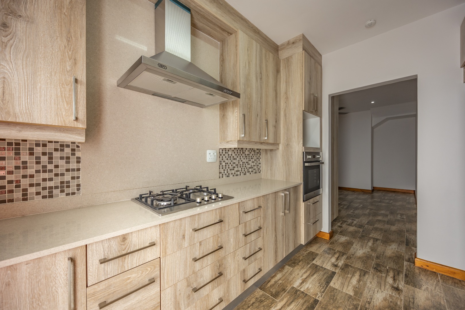 - Flat 1: Features two bedrooms (main with a walk-in closet), a full bathroom, open-plan lounge and dining area, a fully equipped kitchen with gas hob, electric oven, extractor fan, and one garage.
