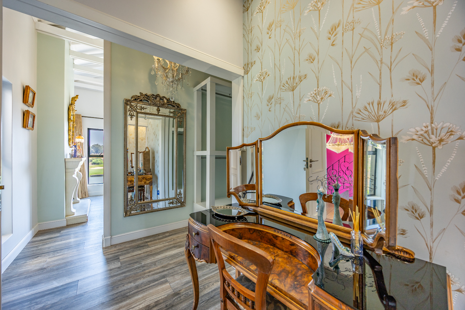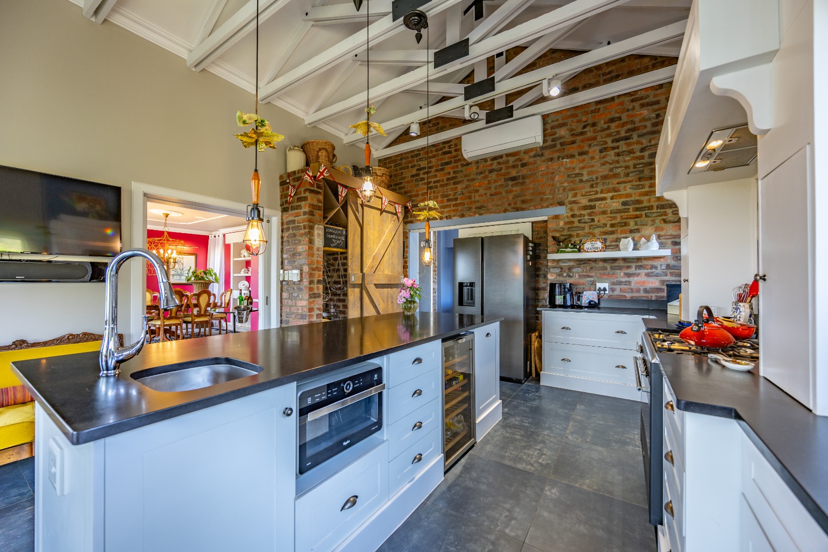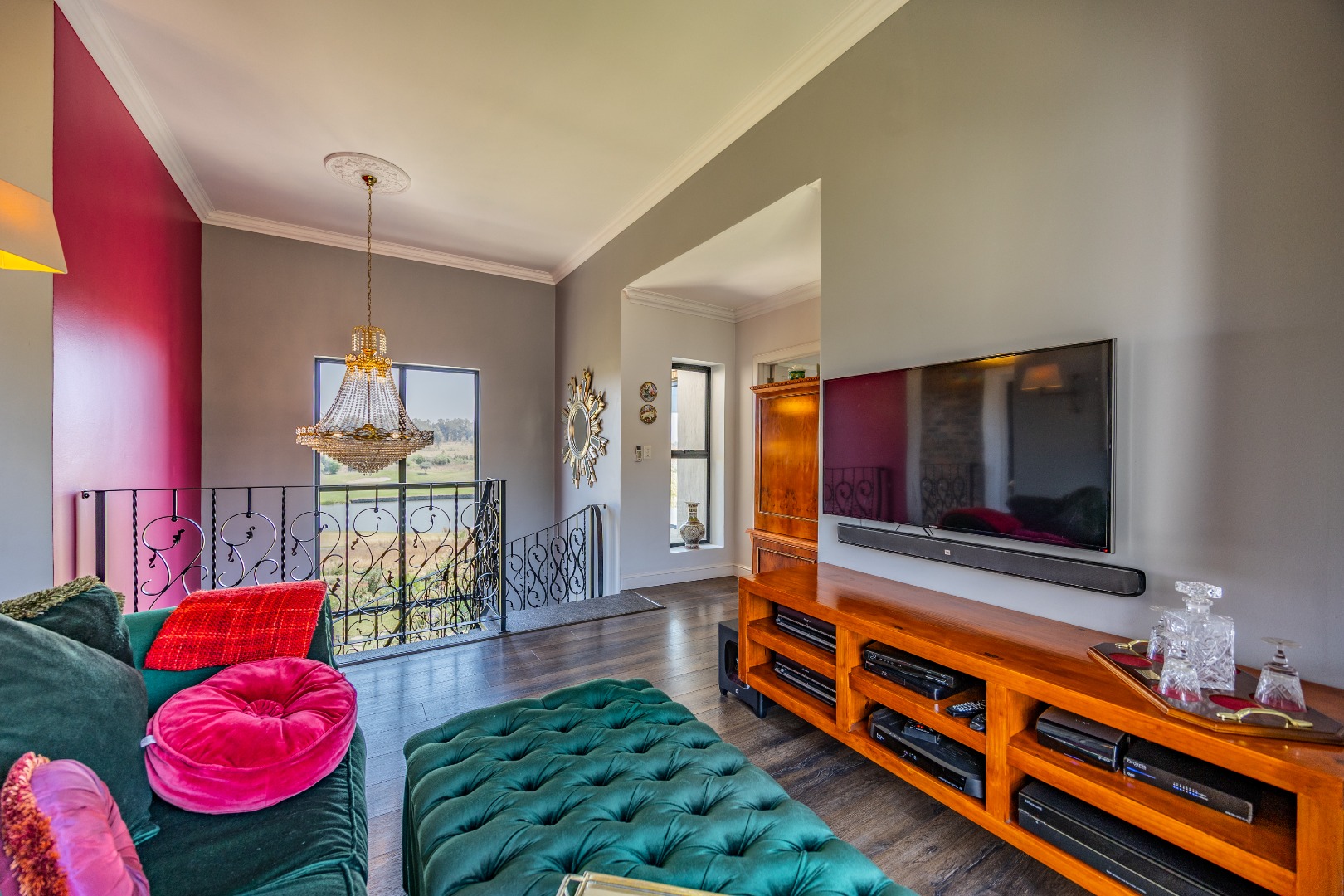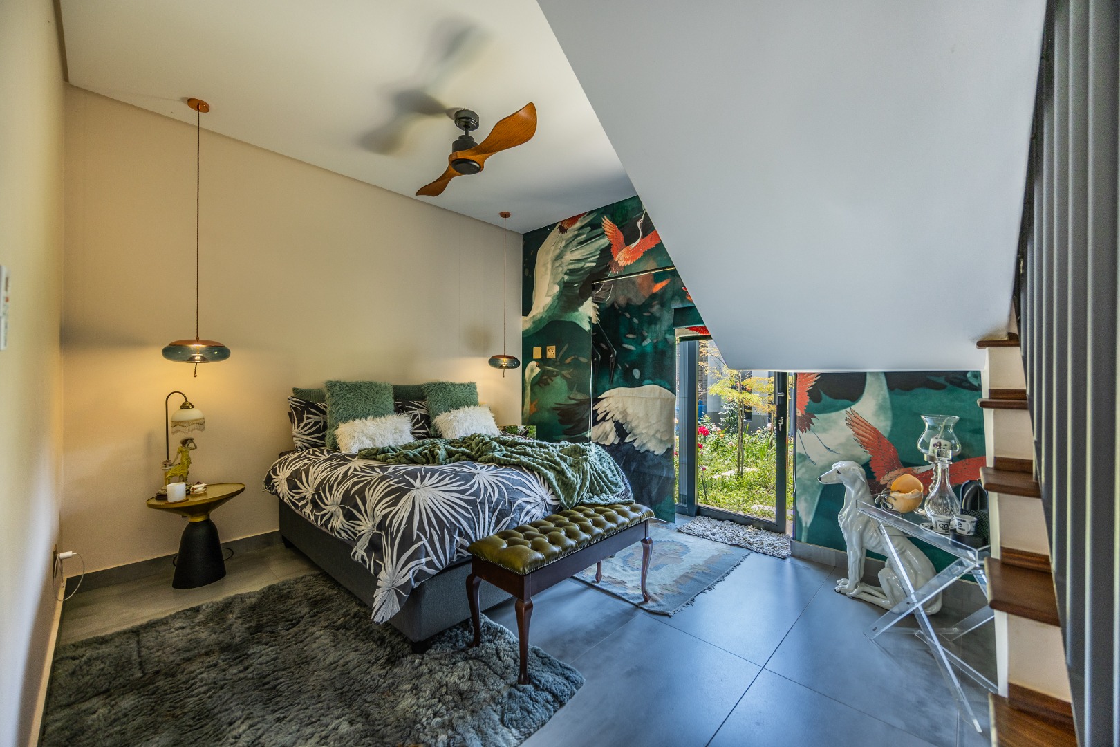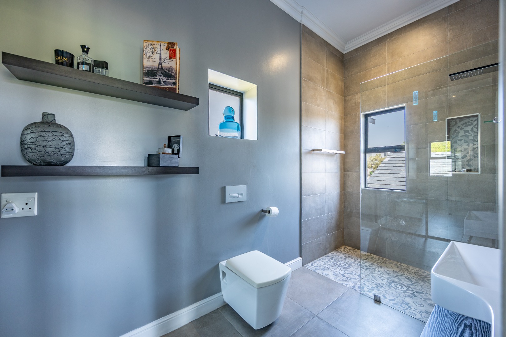 Here's where it gets even better: sustainability is built right in. With a full Sunsynk 8.8kVA solar system, 12 solar panels, and dual water tanks, you're looking at eco-conscious, near off-grid living without sacrificing an ounce of comfort. The library design with a hidden bathroom and a study nook tucked beneath a wrought-iron staircase add delightful surprises around every corner. The main suit is luxury at its finest, with high ceilings, panoramic windows, a walk-in dressing room, and an opulent en-suite that overlooks the garden.