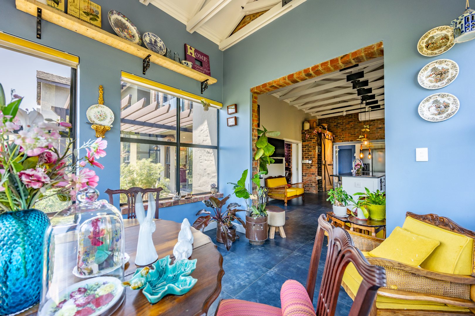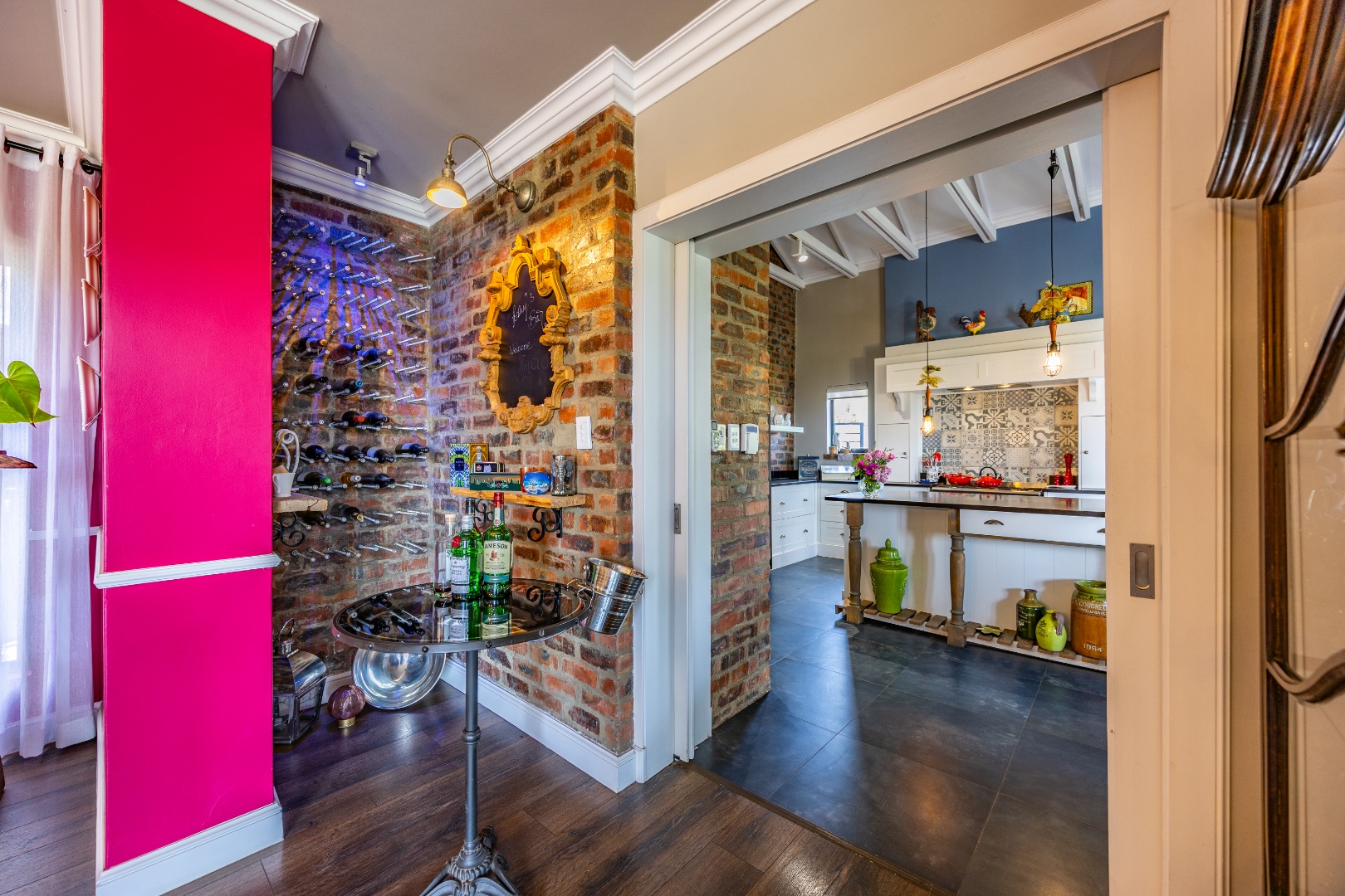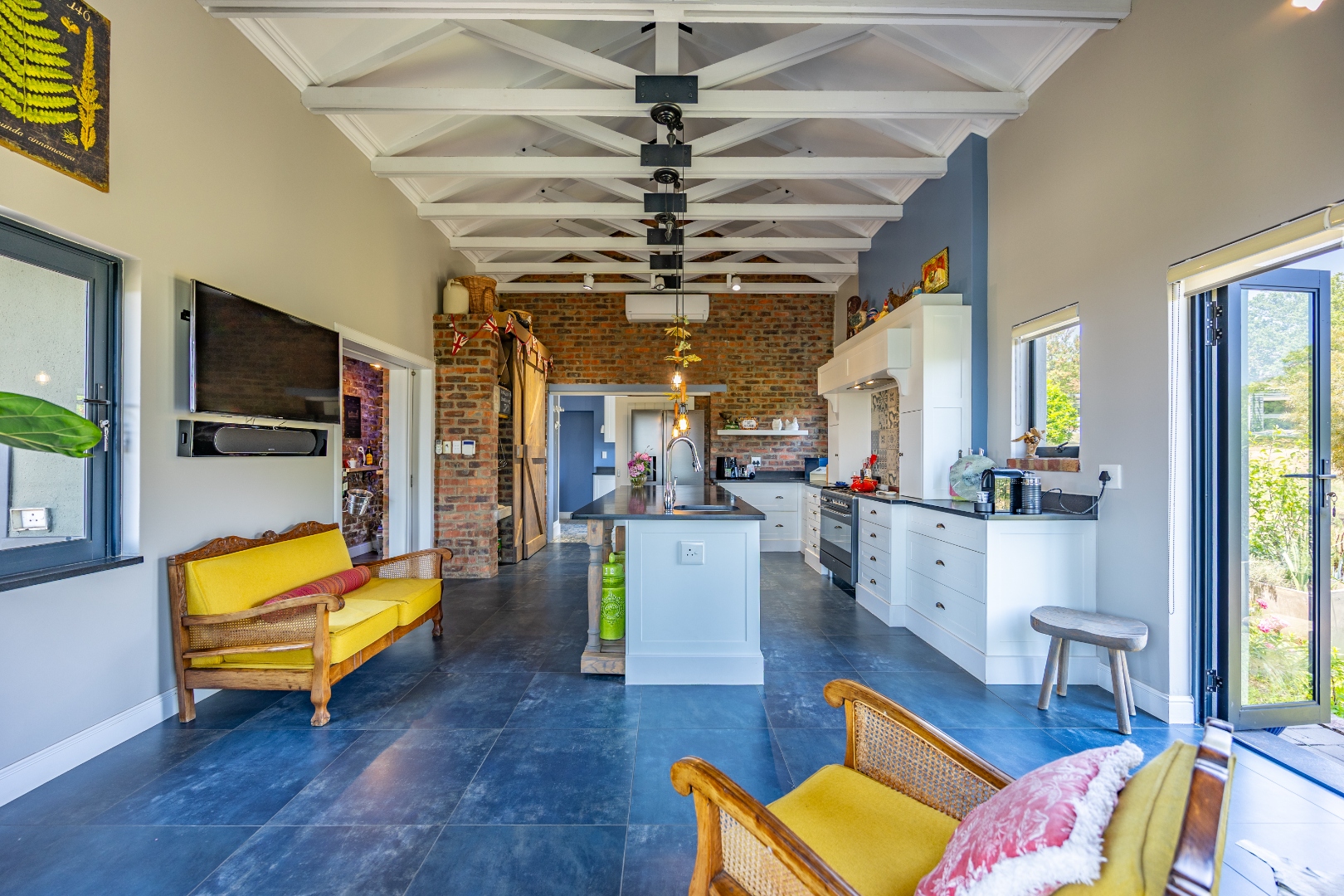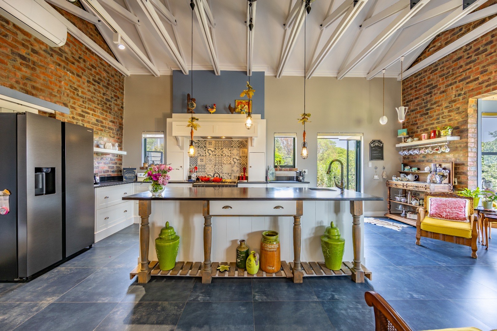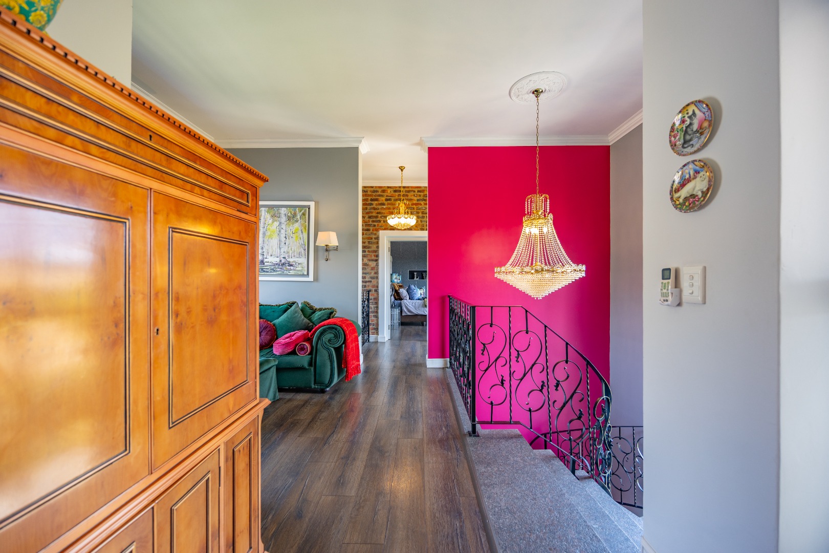 Here's where it gets even better: sustainability is built right in. With a full Sunsynk 8.8kVA solar system, 12 solar panels, and dual water tanks, you're looking at eco-conscious, near off-grid living without sacrificing an ounce of comfort. The library design with a hidden bathroom and a study nook tucked beneath a wrought-iron staircase add delightful surprises around every corner. The main suit is luxury at its finest, with high ceilings, panoramic windows, a walk-in dressing room, and an opulent en-suite that overlooks the garden.