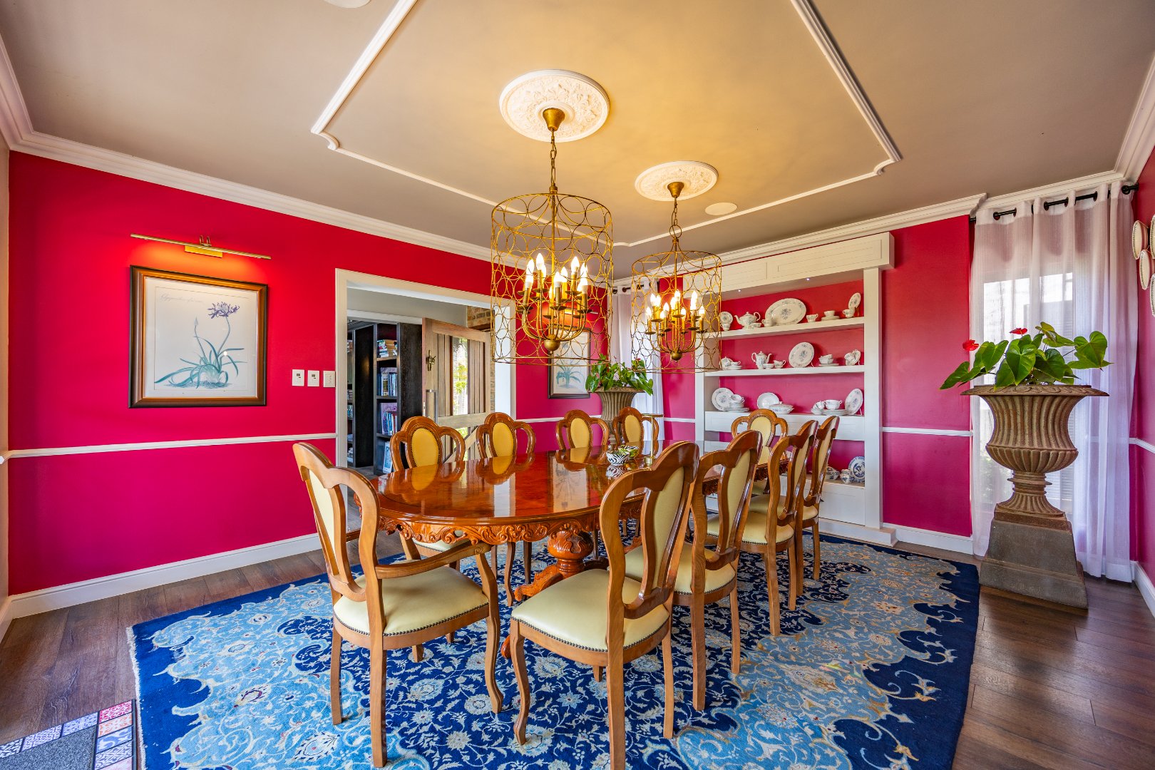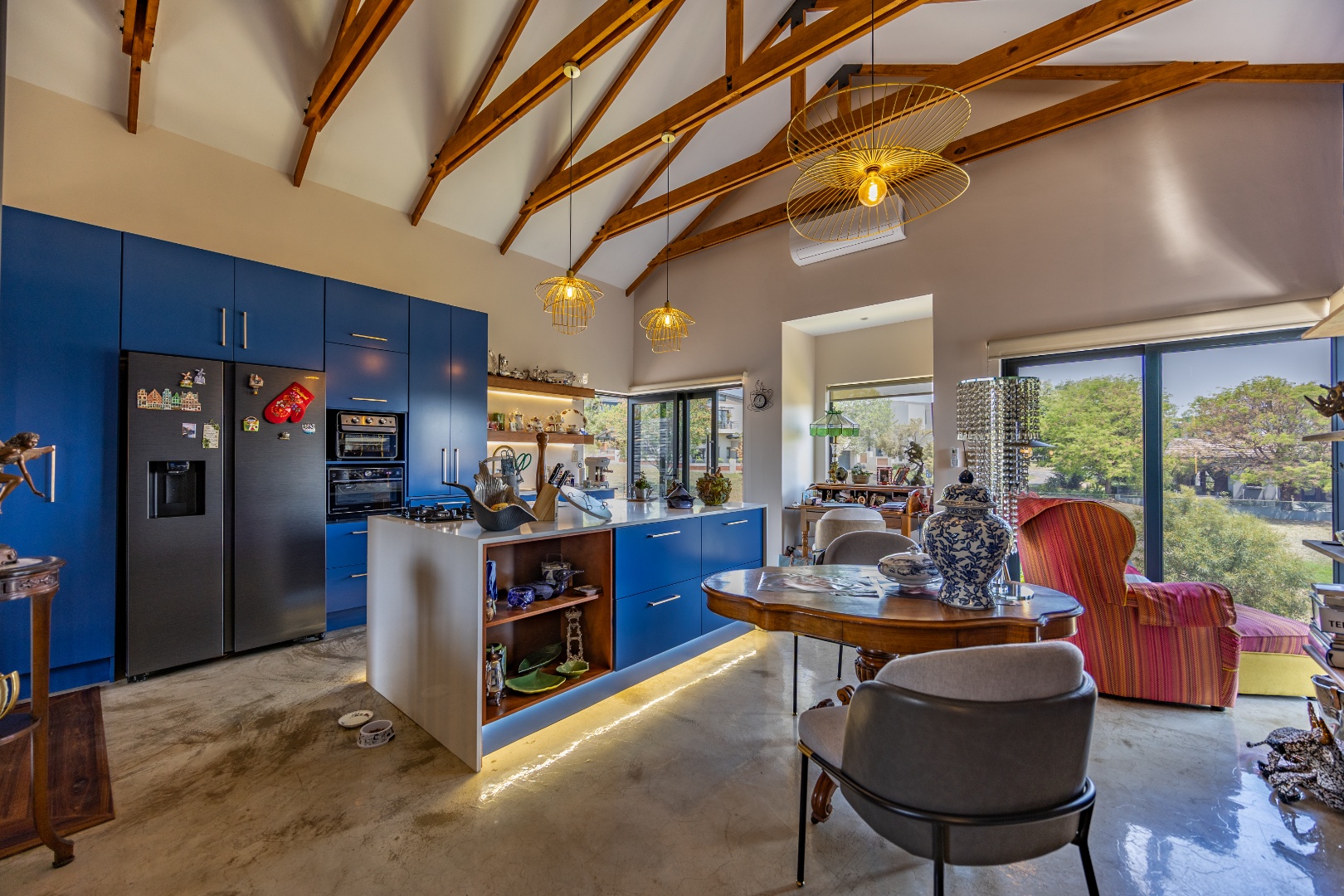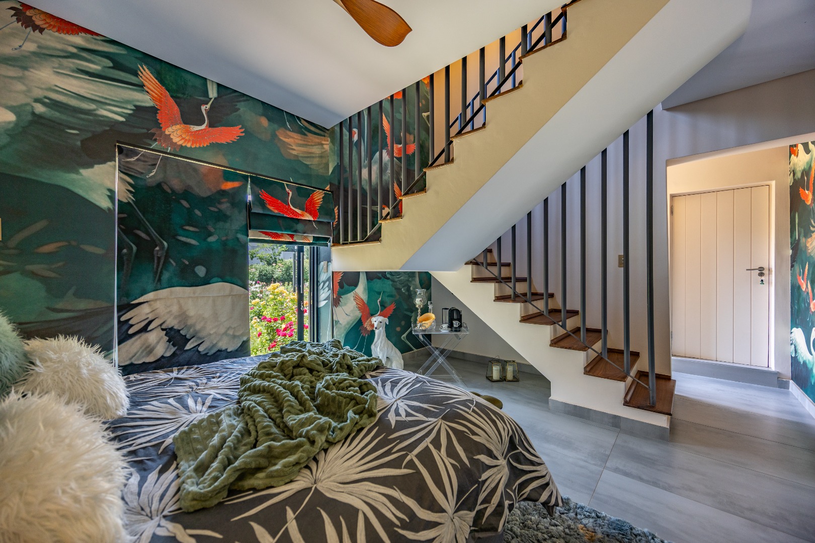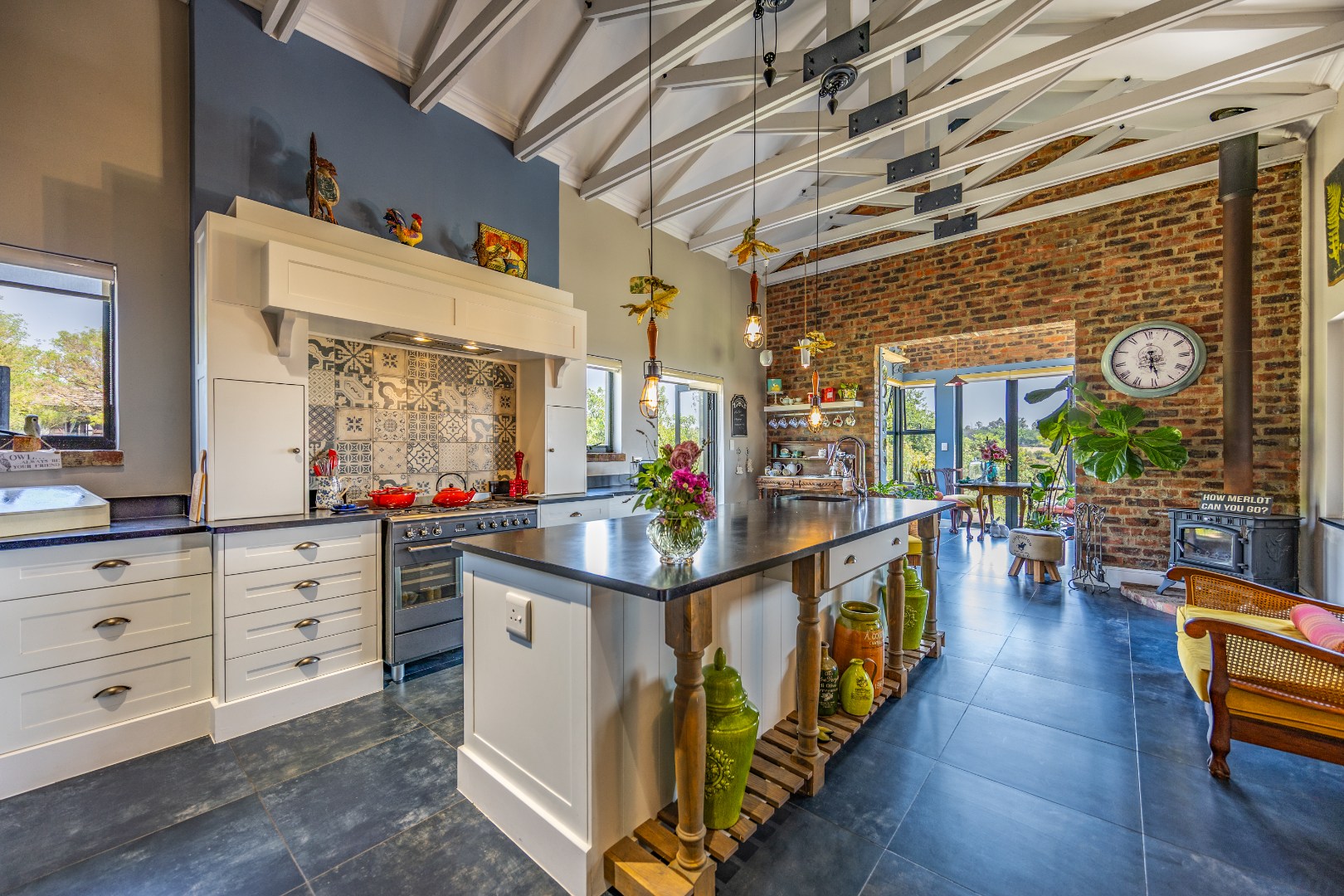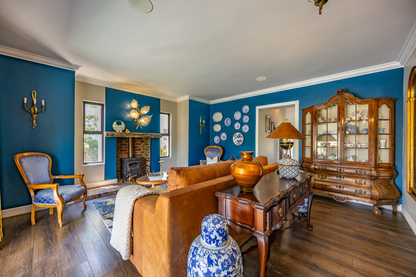 Here's where it gets even better: sustainability is built right in. With a full Sunsynk 8.8kVA solar system, 12 solar panels, and dual water tanks, you're looking at eco-conscious, near off-grid living without sacrificing an ounce of comfort. The library design with a hidden bathroom and a study nook tucked beneath a wrought-iron staircase add delightful surprises around every corner. The main suit is luxury at its finest, with high ceilings, panoramic windows, a walk-in dressing room, and an opulent en-suite that overlooks the garden.