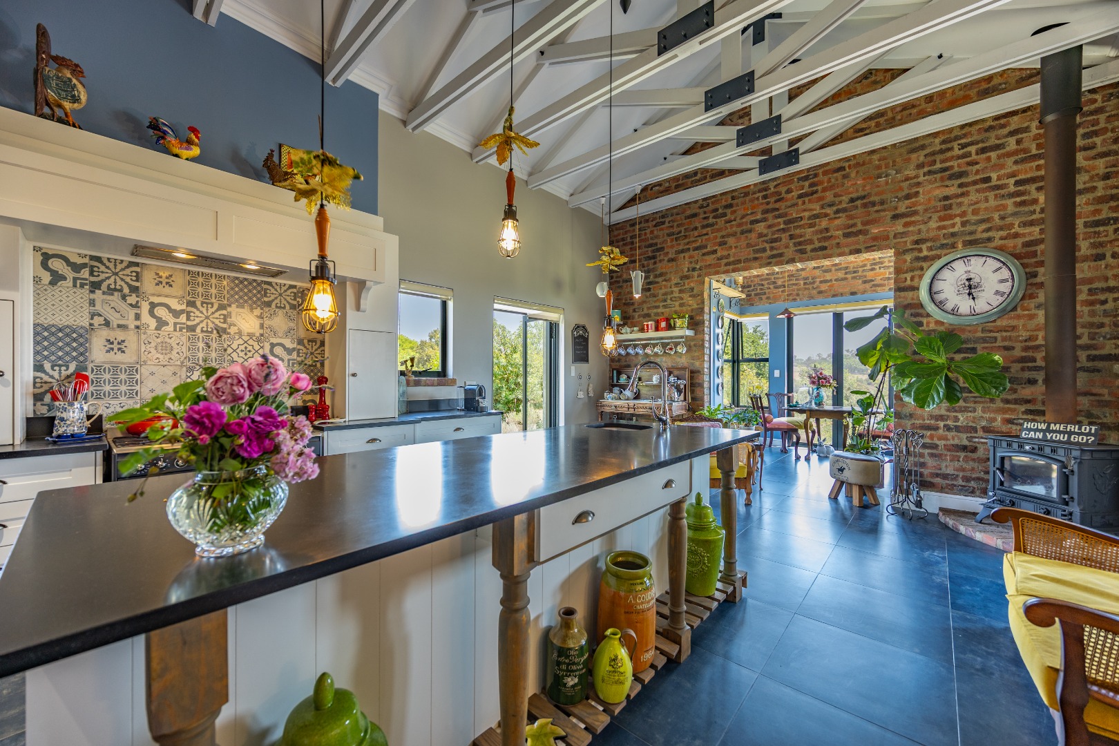 The gourmet kitchen is where memories are made. With its bold cabinetry, premium appliances, soaring vaulted ceilings with exposed beams, and seamless flow to the garden, it's perfect for lazy Sunday mornings or entertaining friends on warm evenings. Step outside and you'll discover your own landscaped paradise: terraced gardens, peaceful water features, and a natural filtration pool surrounded by lush greenery.This home knows how to celebrate life. You've got indoor and outdoor entertainment areas, alfresco dining spaces, a jacuzzi deck, and a layout that invites you to live both inside and out. The private guest wing and self-contained apartment offer complete privacy for family or visitors, with its own open-plan kitchen, lounge, and garden access.