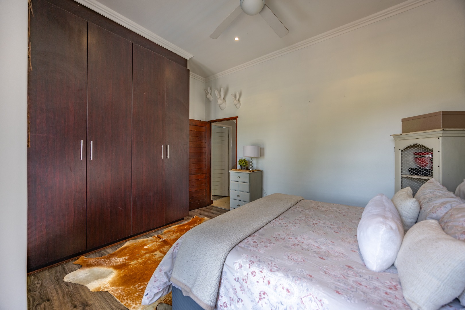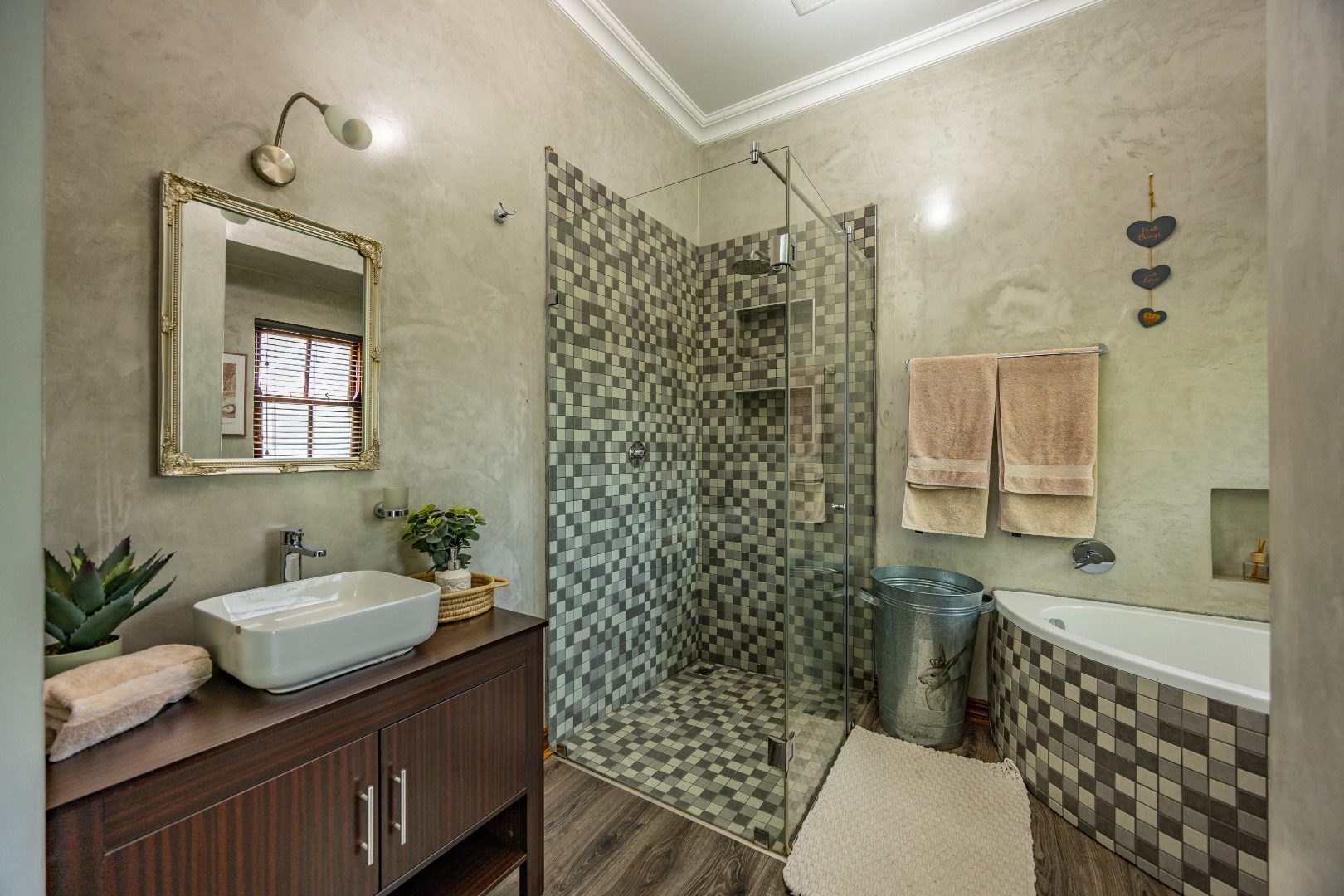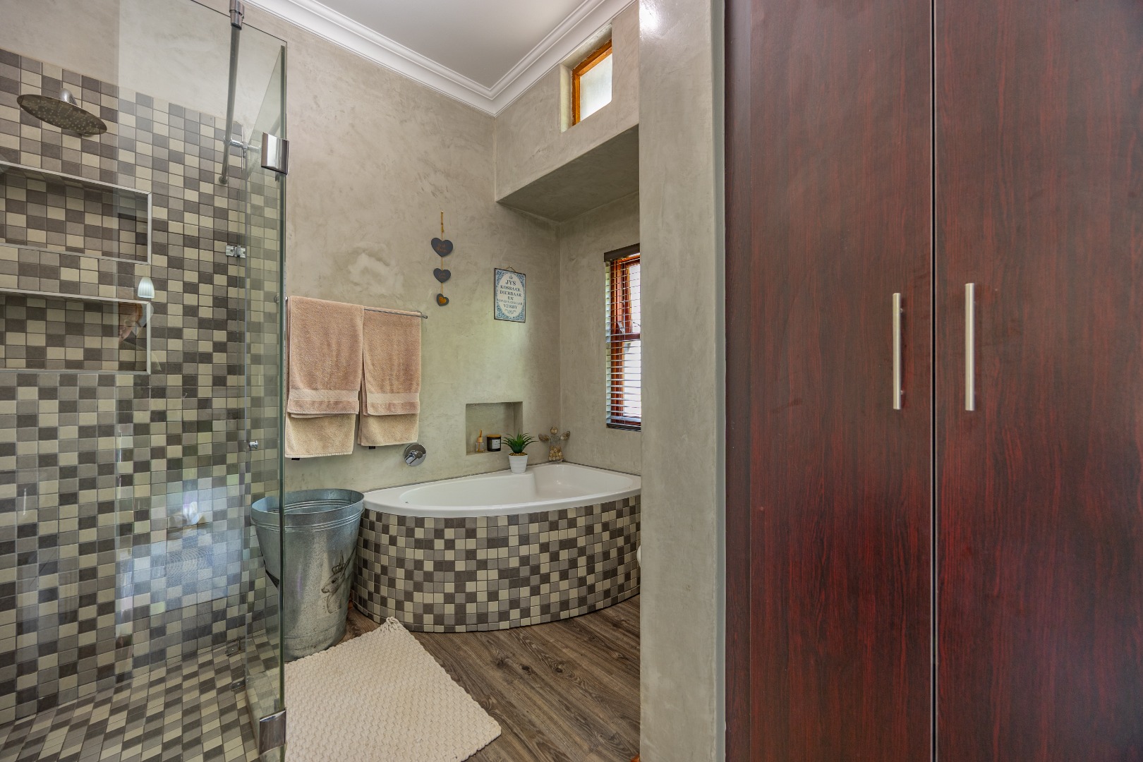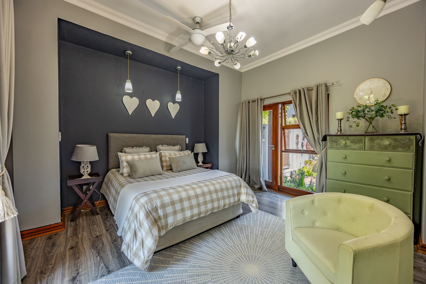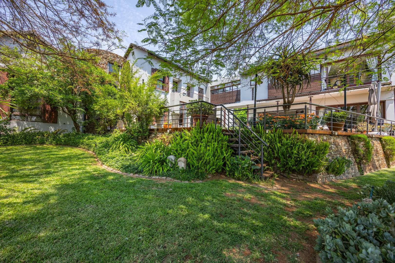 The upper level offers four additional bedrooms, each designed with comfort and privacy in mind. The main suite is a true retreat, boasting a fireplace, walk-in closet, and spa-inspired en-suite bathroom, while its private balcony captures breathtaking views over the Ernie Els Signature Golf Course and the Magaliesberg Mountains. Two more bedrooms also open onto the balcony, while the remaining room can serve as a study or children’s room. Multiple lounges throughout the home—one featuring surround sound and another with a ceiling fan and garden access—create versatile family spaces suited to both relaxation and entertainment.