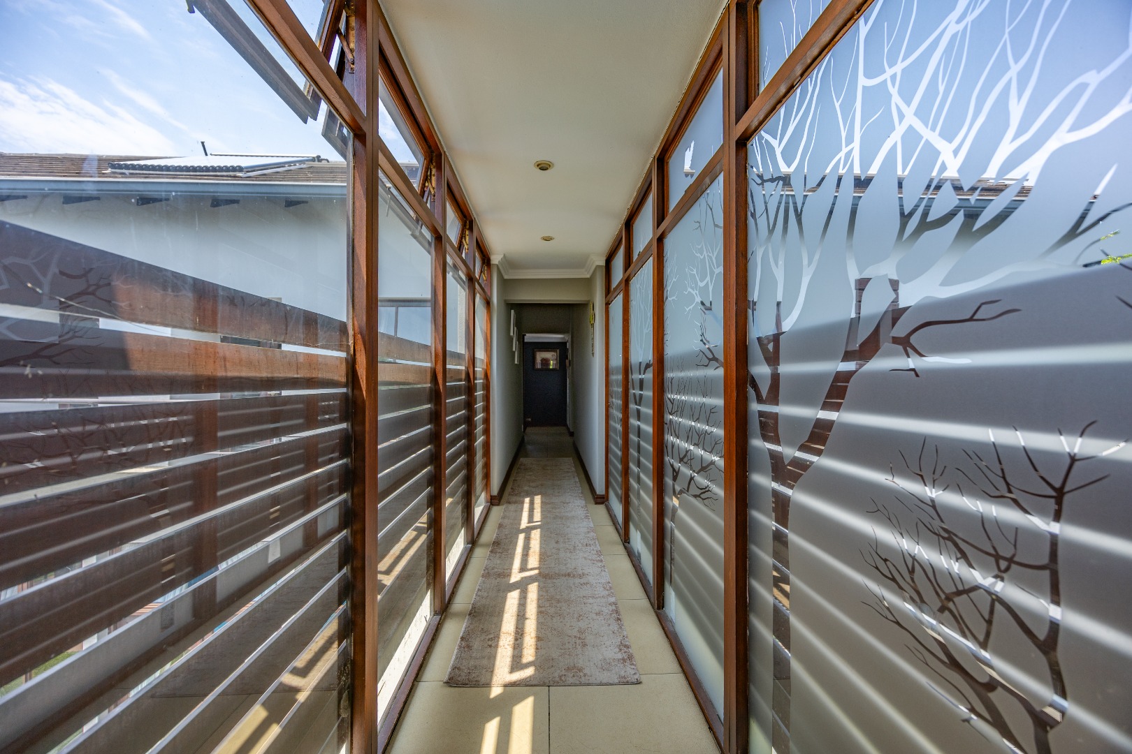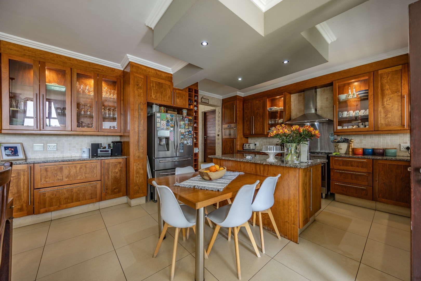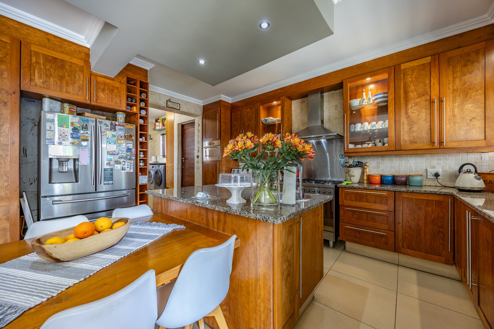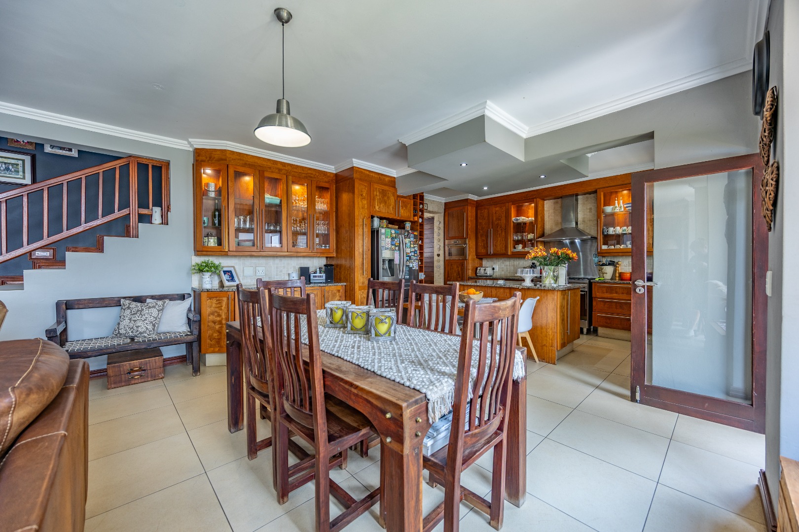 Nestled in the prestigious Copperleaf Golf and Country Estate, this luxurious five-bedroom residence epitomizes refined family living, seamlessly blending sophistication, comfort, and sustainability. From the moment you step through the double-volume entrance hall, the home welcomes you with open-plan living spaces that flow effortlessly between the lounge, dining area, and gourmet kitchen. The kitchen, designed with both elegance and functionality in mind, features a large centre island, premium finishes, built-in appliances, and a generous scullery with space for multiple appliances. Large sliding doors open out to the entertainment patio, creating a perfect harmony between indoor and outdoor living. A guest suite with its own private lounge and en-suite bathroom completes the downstairs layout—ideal for visitors or extended family.
