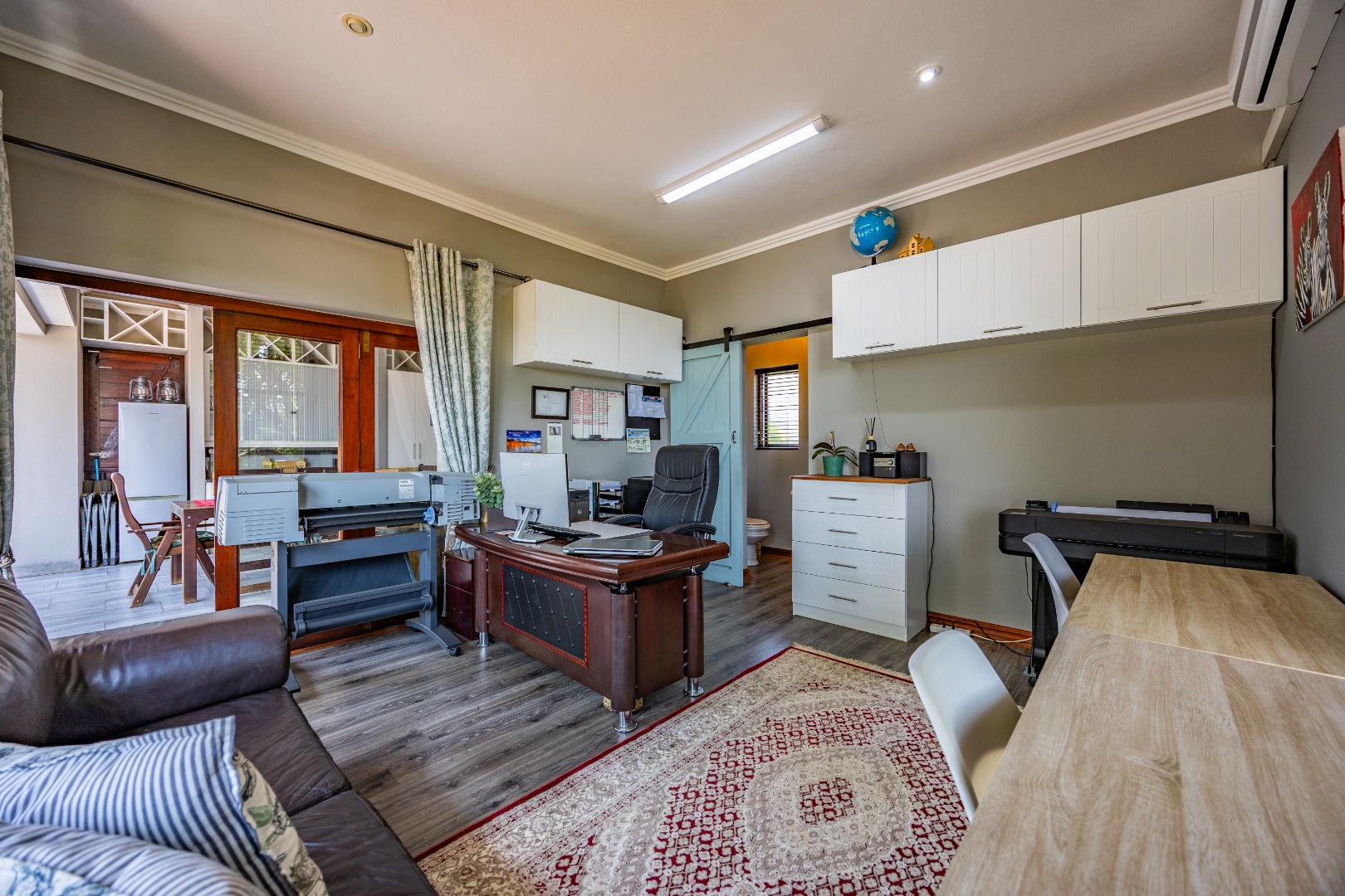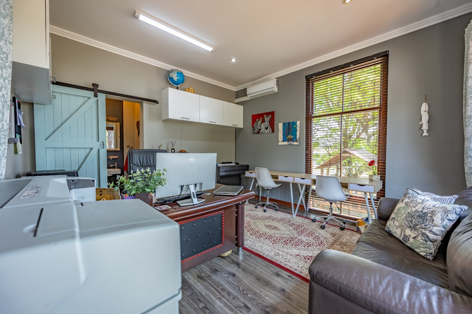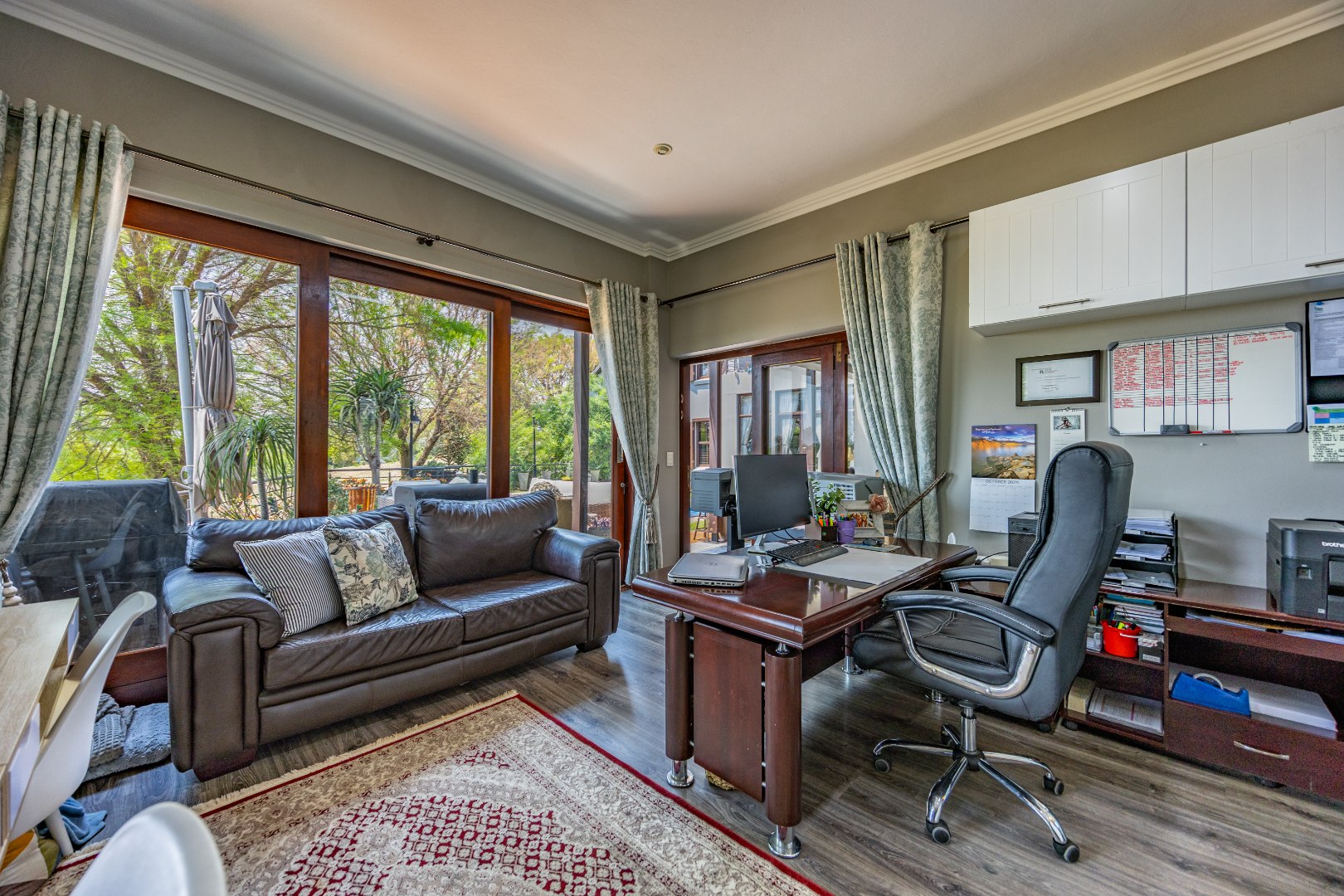 Outdoor living is where this home truly shines. The manicured garden frames a solar-heated swimming pool, boma, and covered entertainment area complete with a built-in braai and ample space for dining or a pool table. A detached office with its own toilet provides a serene work-from-home setup, overlooking the pool and fairway. The property runs fully off-grid with a 12KW inverter, 30KW battery storage, 25 solar panels, two solar geysers, and backup water supply, ensuring sustainability without compromise. Additional features include three automated garages, staff accommodation, air-conditioning, a children’s play area, and extra storage beneath the patio. Positioned along one of Copperleaf’s most coveted fairways, this residence offers an exceptional lifestyle defined by luxury, privacy, and uninterrupted golf course views—a true sanctuary in one of Gauteng’s most sought-after estates.