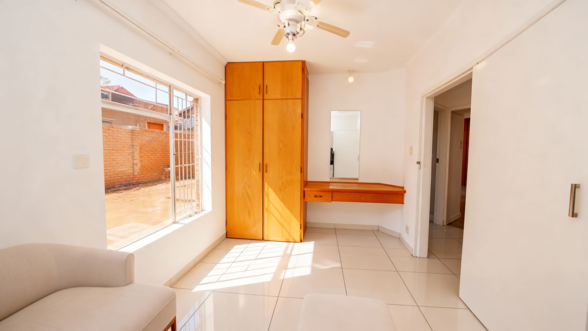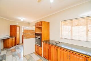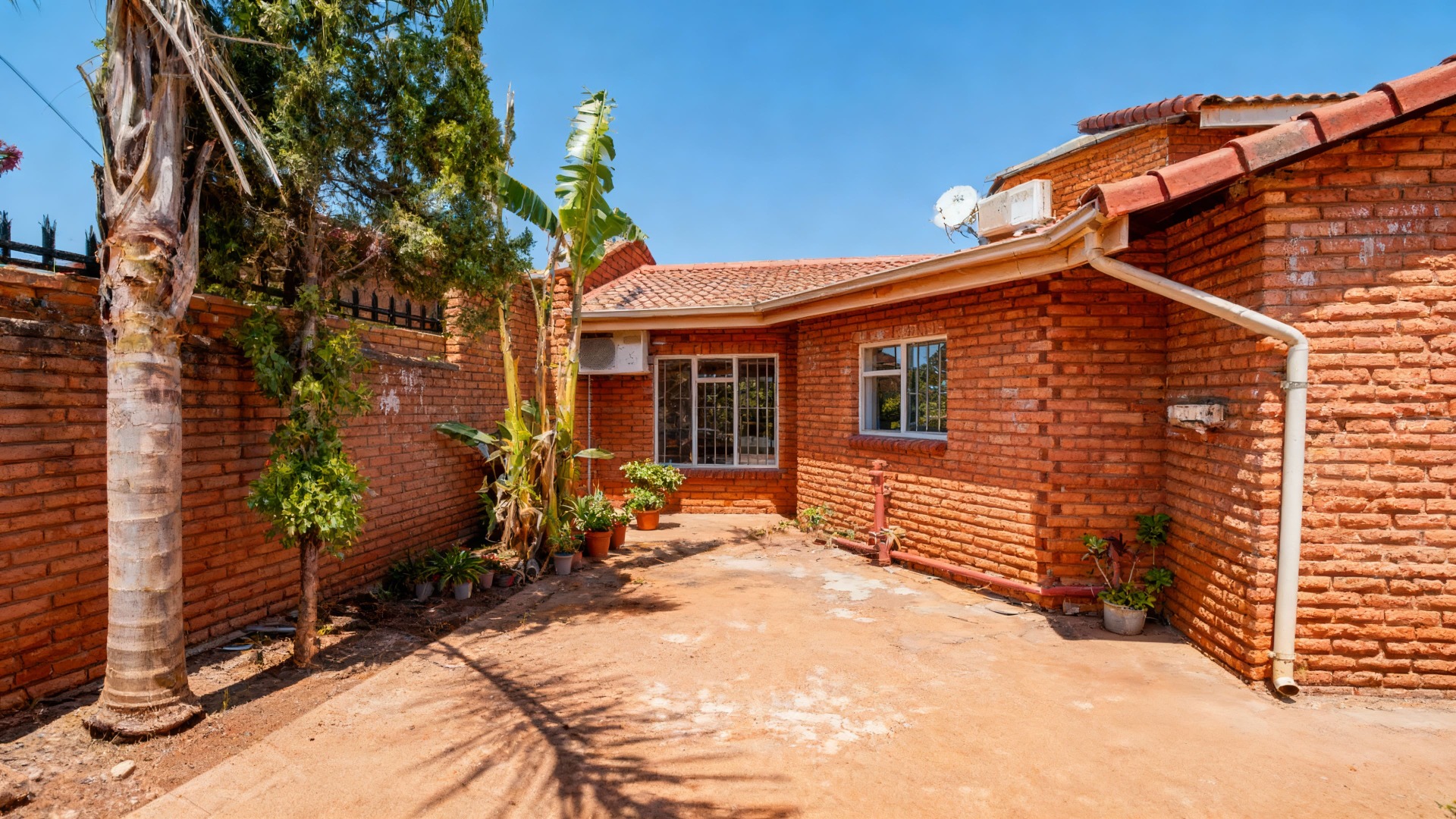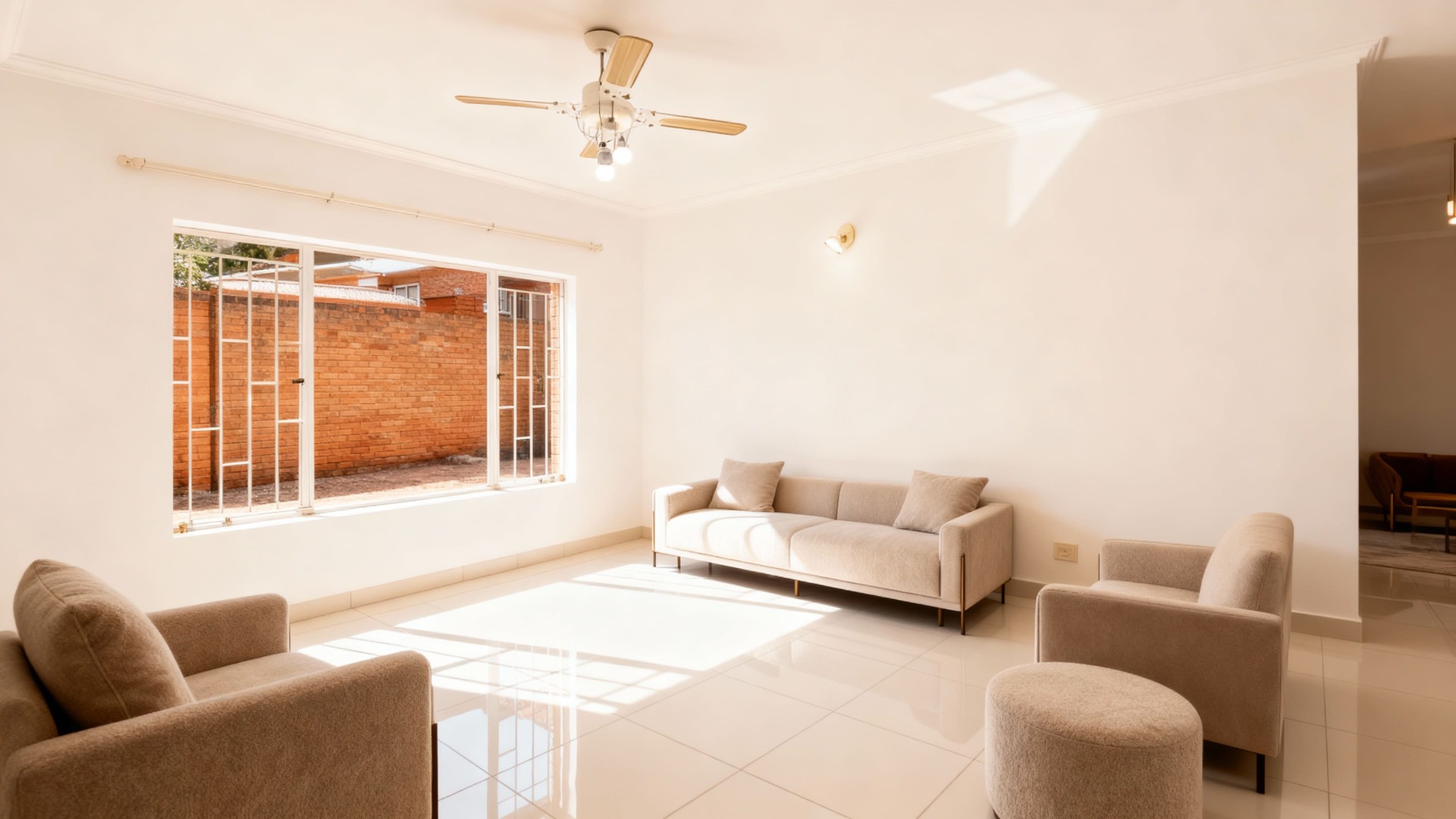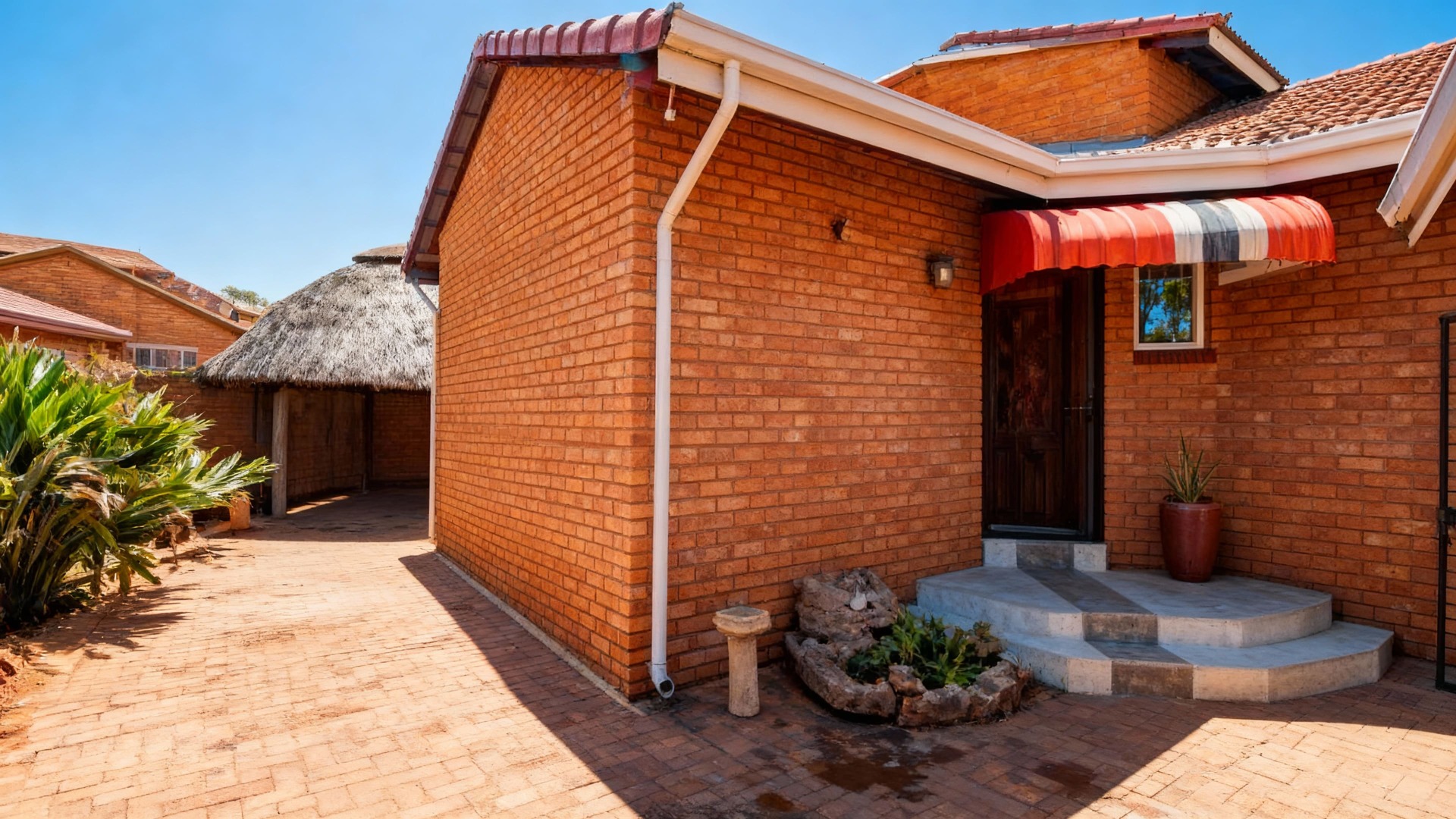 This charming 3-bedroom, 2-bathroom residential property, situated in a peaceful cul-de-sac in Die Hoewes, offers a comfortable family living experience. The durable brick exterior, complemented by a paved driveway and secure gated entrance, provides excellent kerb appeal. A unique thatch-roofed structure, possibly a lapa or carport, adds character and outdoor utility, while established plants enhance the frontage. Inside, the home features a spacious open-plan lounge and dining area, bathed in natural light from large windows. The clean white tiled flooring throughout creates a bright atmosphere, further enhanced by an eye-catching exposed brick accent wall and architectural archways. A ceiling fan ensures comfort in the living space. The functional kitchen boasts extensive wooden cabinetry, dark countertops, and a built-in oven, providing ample storage and preparation space. A large window offers pleasant outdoor views, and a charming Dutch door provides direct access to the exterior. The three well-proportioned bedrooms and two bathrooms cater to family needs. Security is a priority, with robust security gates at the entrance and burglar bars on windows, ensuring peace of mind. This property, with a generous floor size of 235.00 sqm on a 404.00 sqm erf, presents a solid opportunity for those seeking a well-located home in Centurion, South Africa. Key Features: * 3 Bedrooms, 2 Bathrooms * 1 Garage * Open-plan Lounge and Dining Room * Functional Kitchen with Wooden Cabinetry * Durable Brick Exterior * Paved Driveway and Secure Gated Entrance * Thatch-roofed Structure (Lapa/Carport) * Cul-de-sac Location