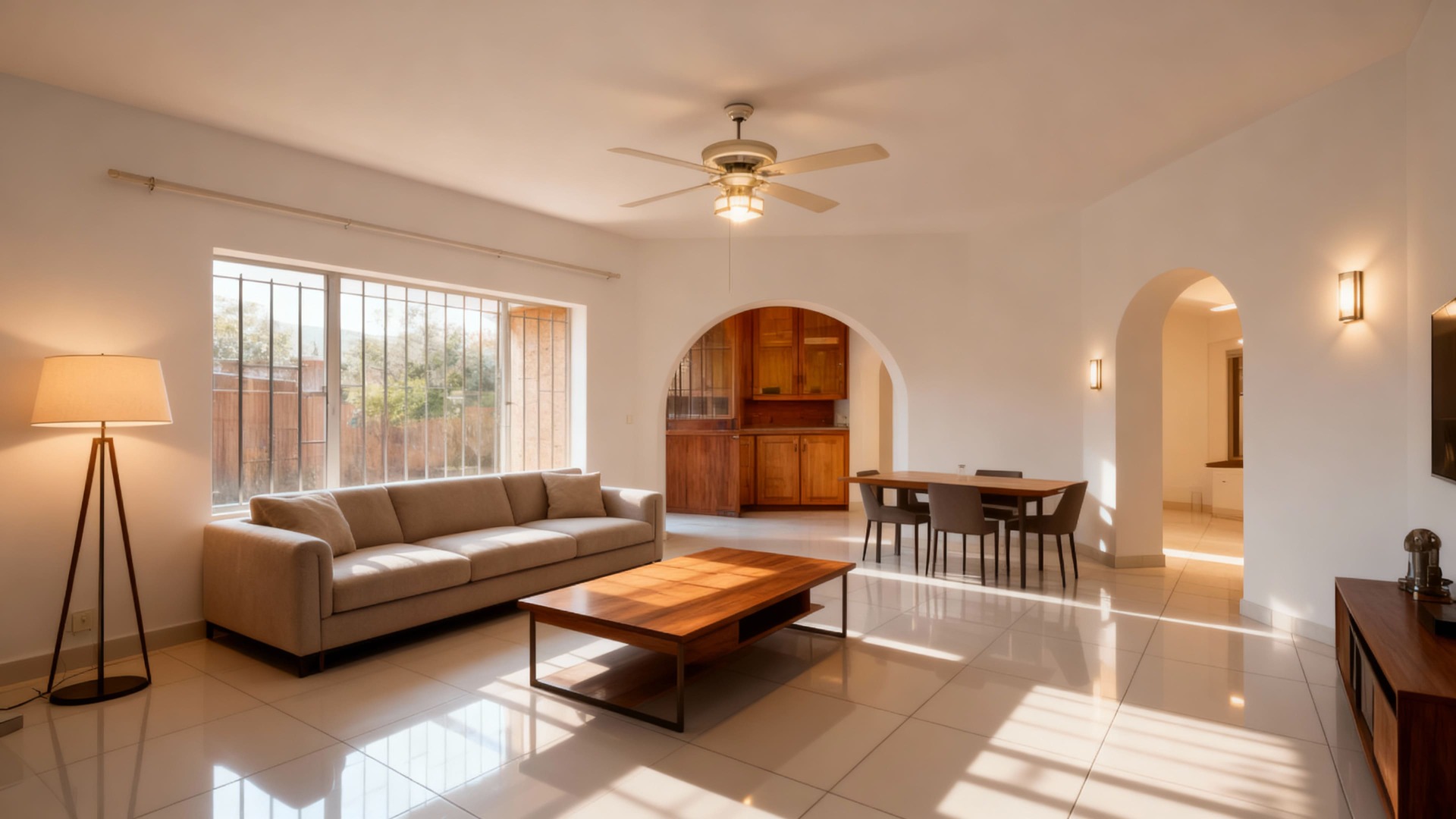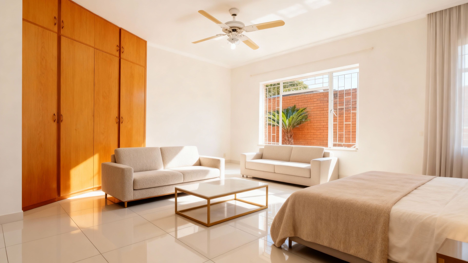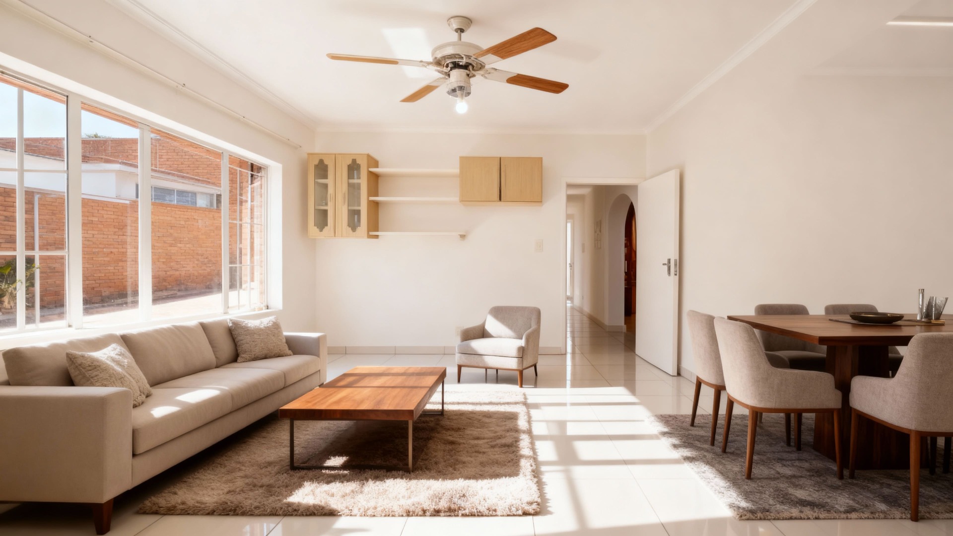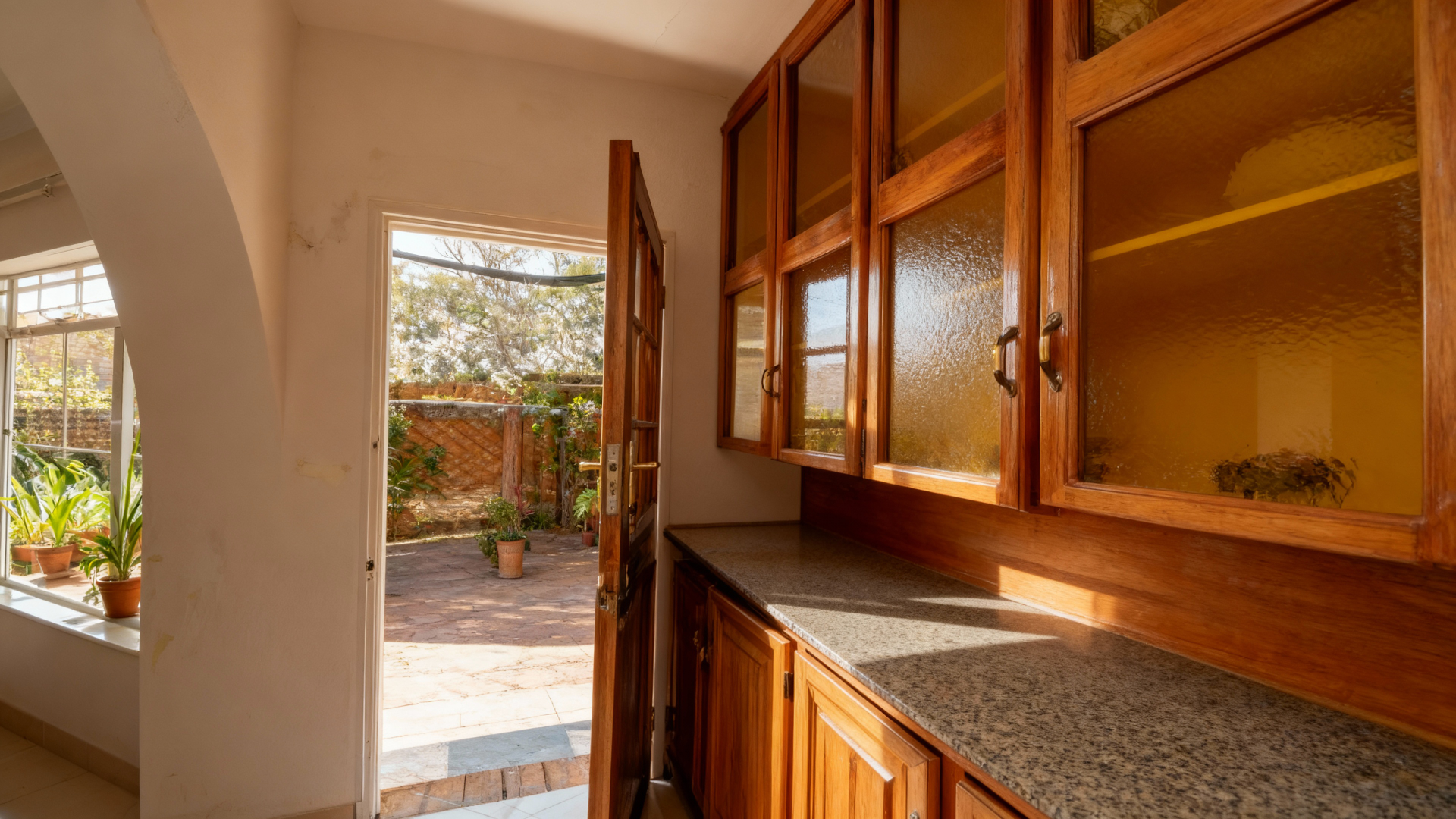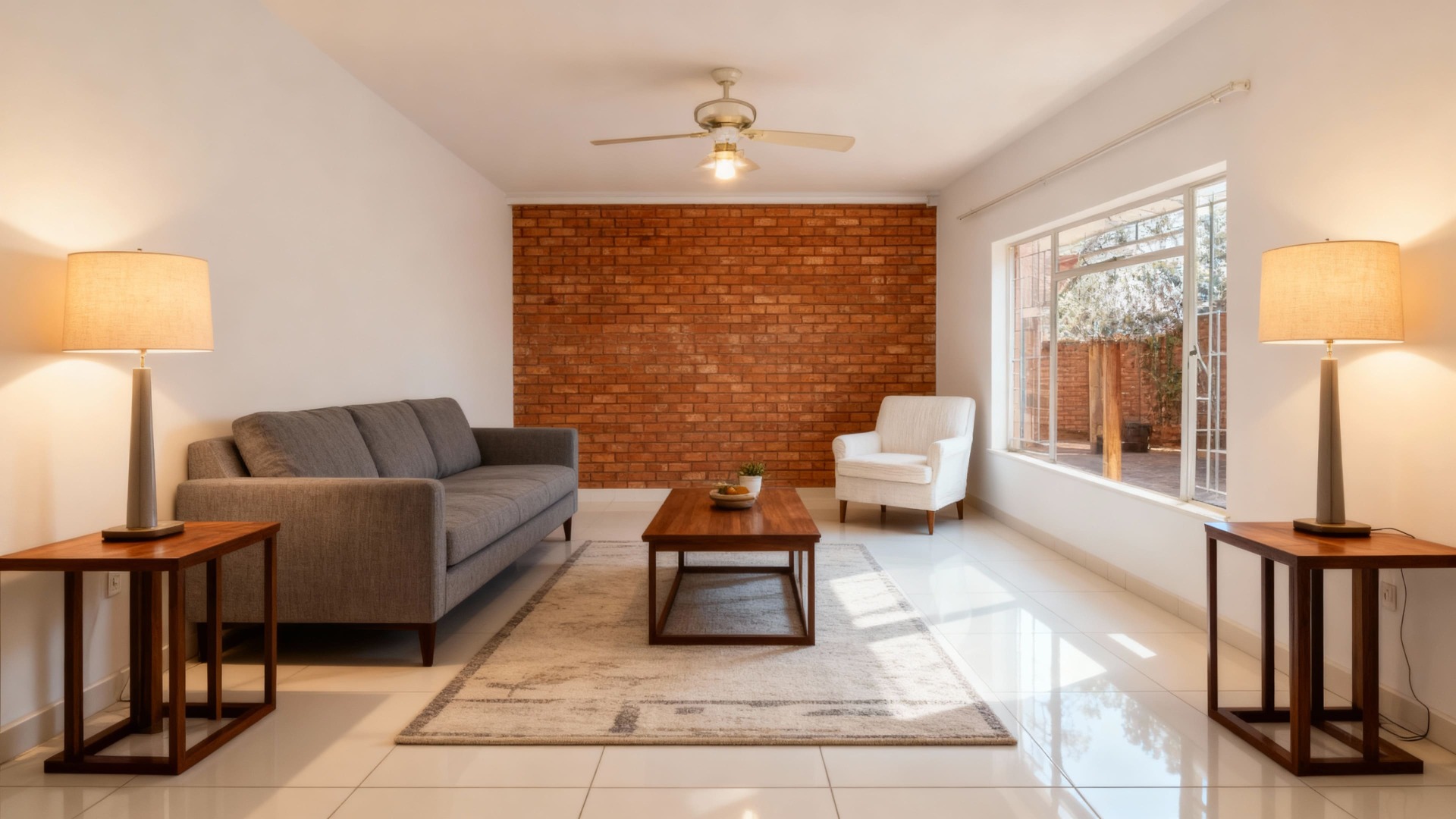 This charming 3-bedroom, 2-bathroom residential property, situated in a peaceful cul-de-sac in Die Hoewes, offers a comfortable family living experience. The durable brick exterior, complemented by a paved driveway and secure gated entrance, provides excellent kerb appeal. A unique thatch-roofed structure, possibly a lapa or carport, adds character and outdoor utility, while established plants enhance the frontage. Inside, the home features a spacious open-plan lounge and dining area, bathed in natural light from large windows. The clean white tiled flooring throughout creates a bright atmosphere, further enhanced by an eye-catching exposed brick accent wall and architectural archways. A ceiling fan ensures comfort in the living space. The functional kitchen boasts extensive wooden cabinetry, dark countertops, and a built-in oven, providing ample storage and preparation space. A large window offers pleasant outdoor views, and a charming Dutch door provides direct access to the exterior. The three well-proportioned bedrooms and two bathrooms cater to family needs. Security is a priority, with robust security gates at the entrance and burglar bars on windows, ensuring peace of mind. This property, with a generous floor size of 235.00 sqm on a 404.00 sqm erf, presents a solid opportunity for those seeking a well-located home in Centurion, South Africa. Key Features: * 3 Bedrooms, 2 Bathrooms * 1 Garage * Open-plan Lounge and Dining Room * Functional Kitchen with Wooden Cabinetry * Durable Brick Exterior * Paved Driveway and Secure Gated Entrance * Thatch-roofed Structure (Lapa/Carport) * Cul-de-sac Location