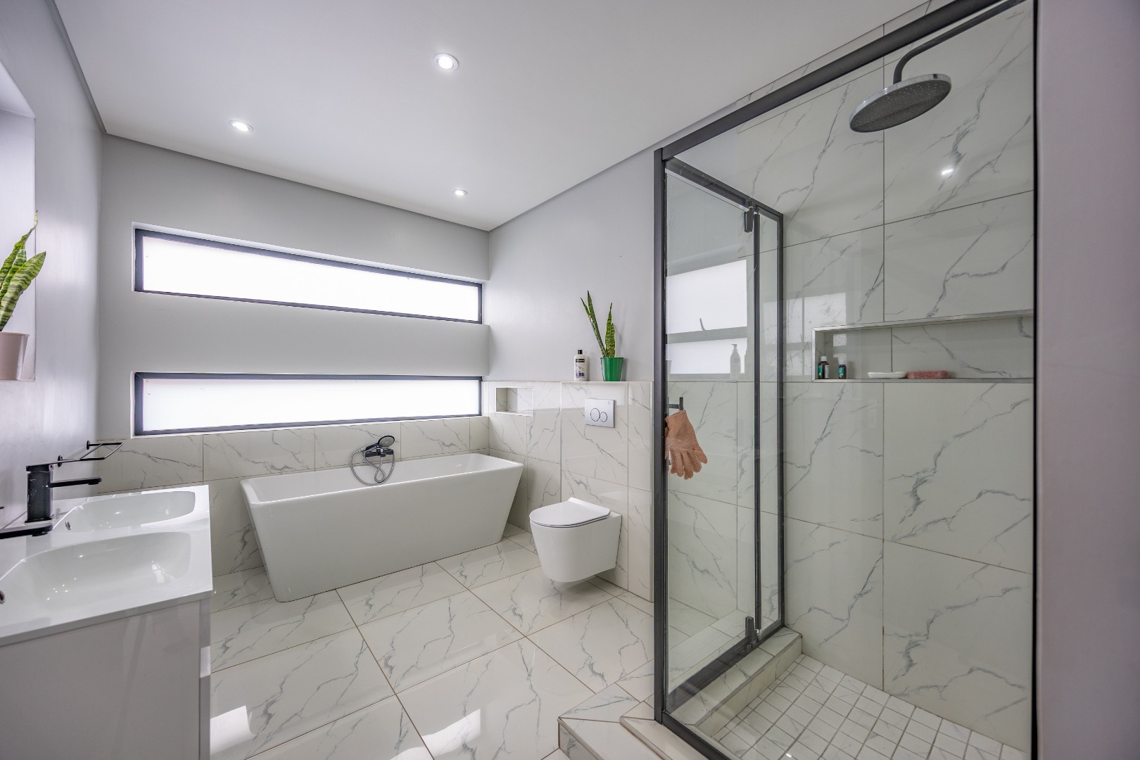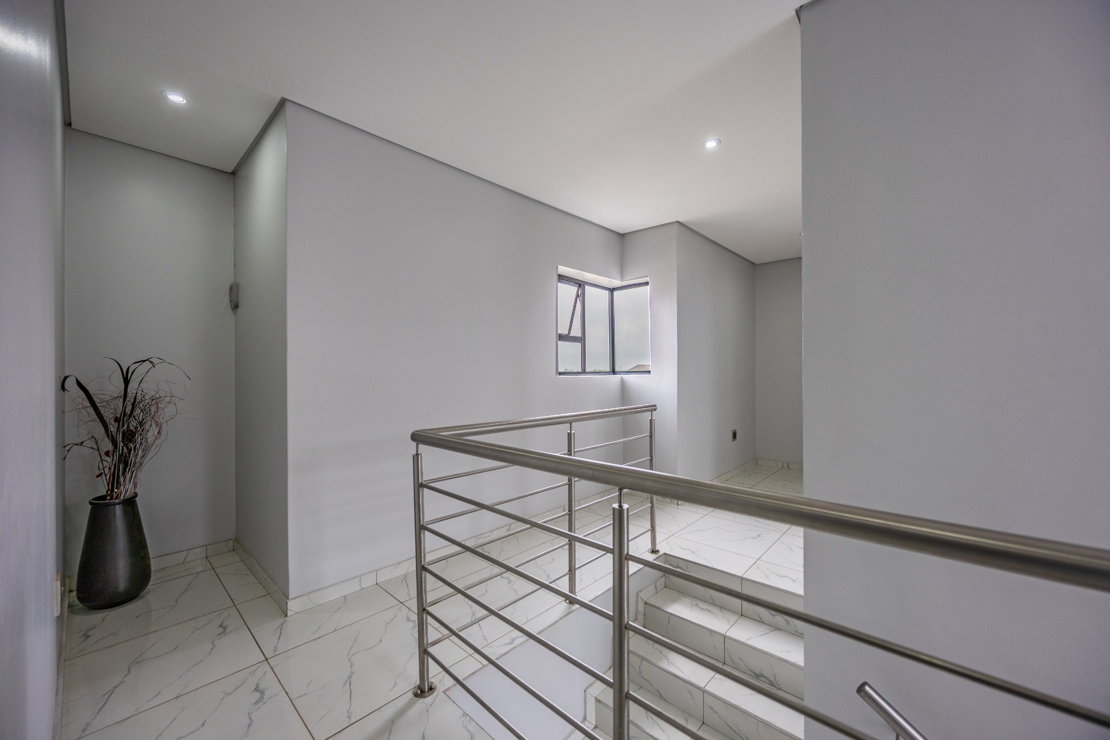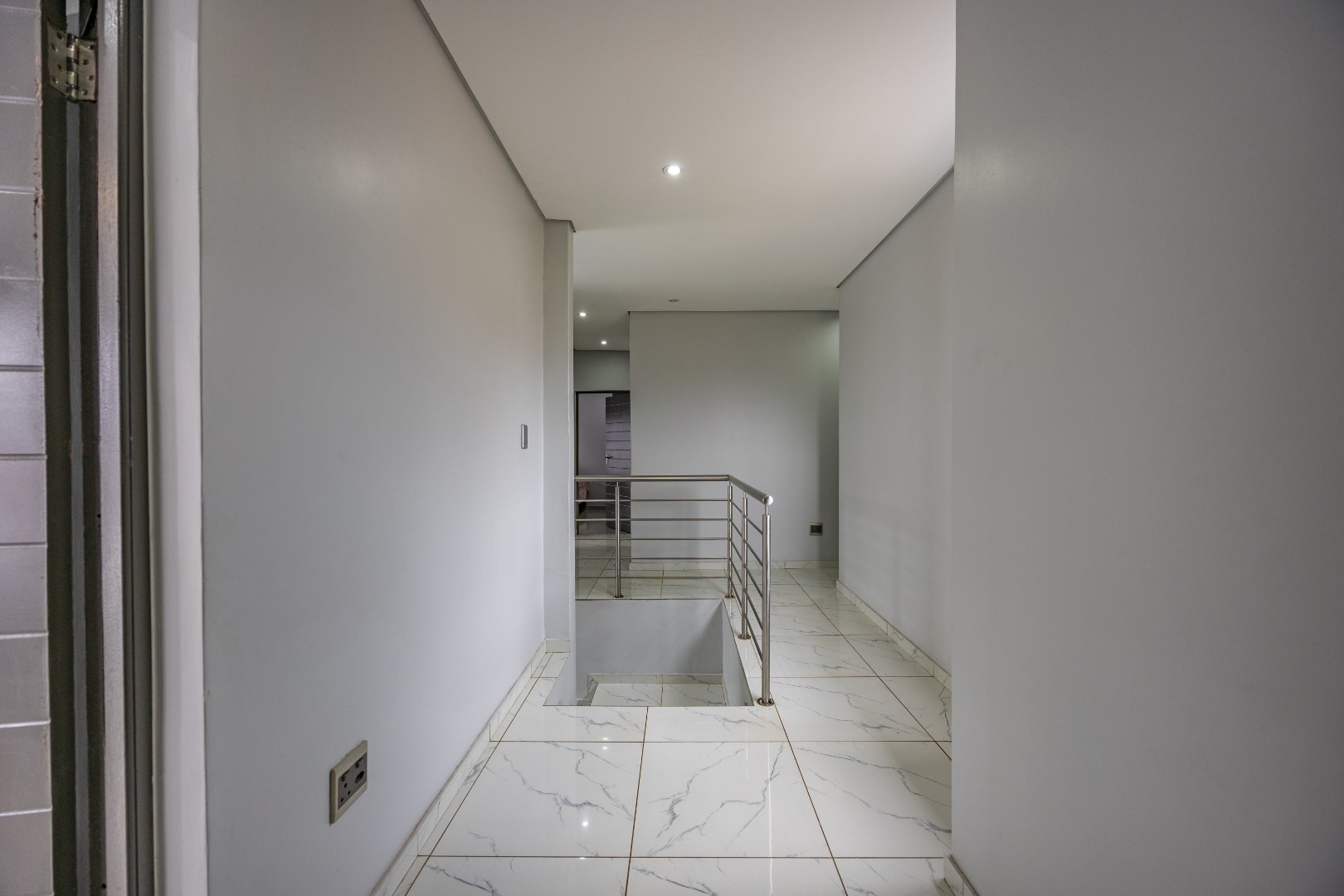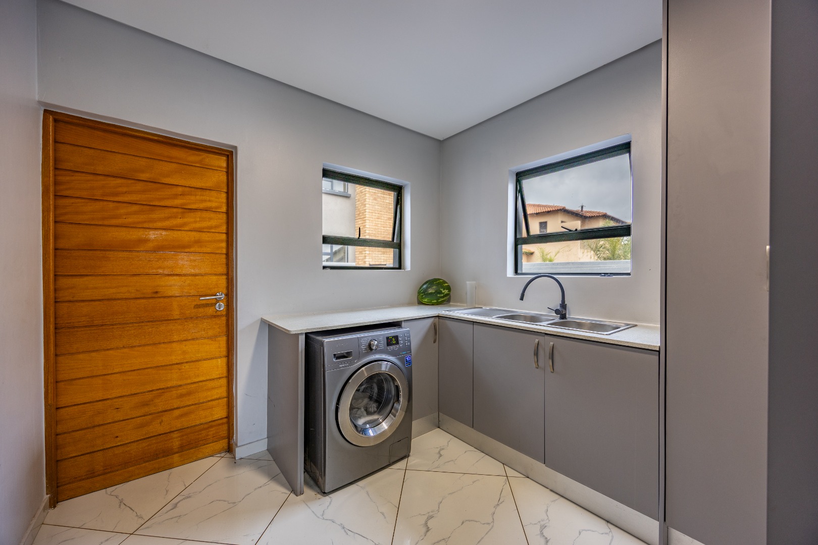 Welcome to this stunning 4-bedroom, 3-bathroom free-standing home located in a sought-after security estate offering 24-hour guarded access and peace of mind. Step through the front door and be greeted by an abundance of natural light, elegant bulk ceilings, and a spacious open-plan layout. The TV lounge, dining area, and designer kitchen flow seamlessly together, creating the perfect space for family living and entertaining. The kitchen features luxurious marble countertops, a massive center island that doubles as a breakfast counter, built-in oven and microwave, convection stove, and sleek push-touch cabinetry.