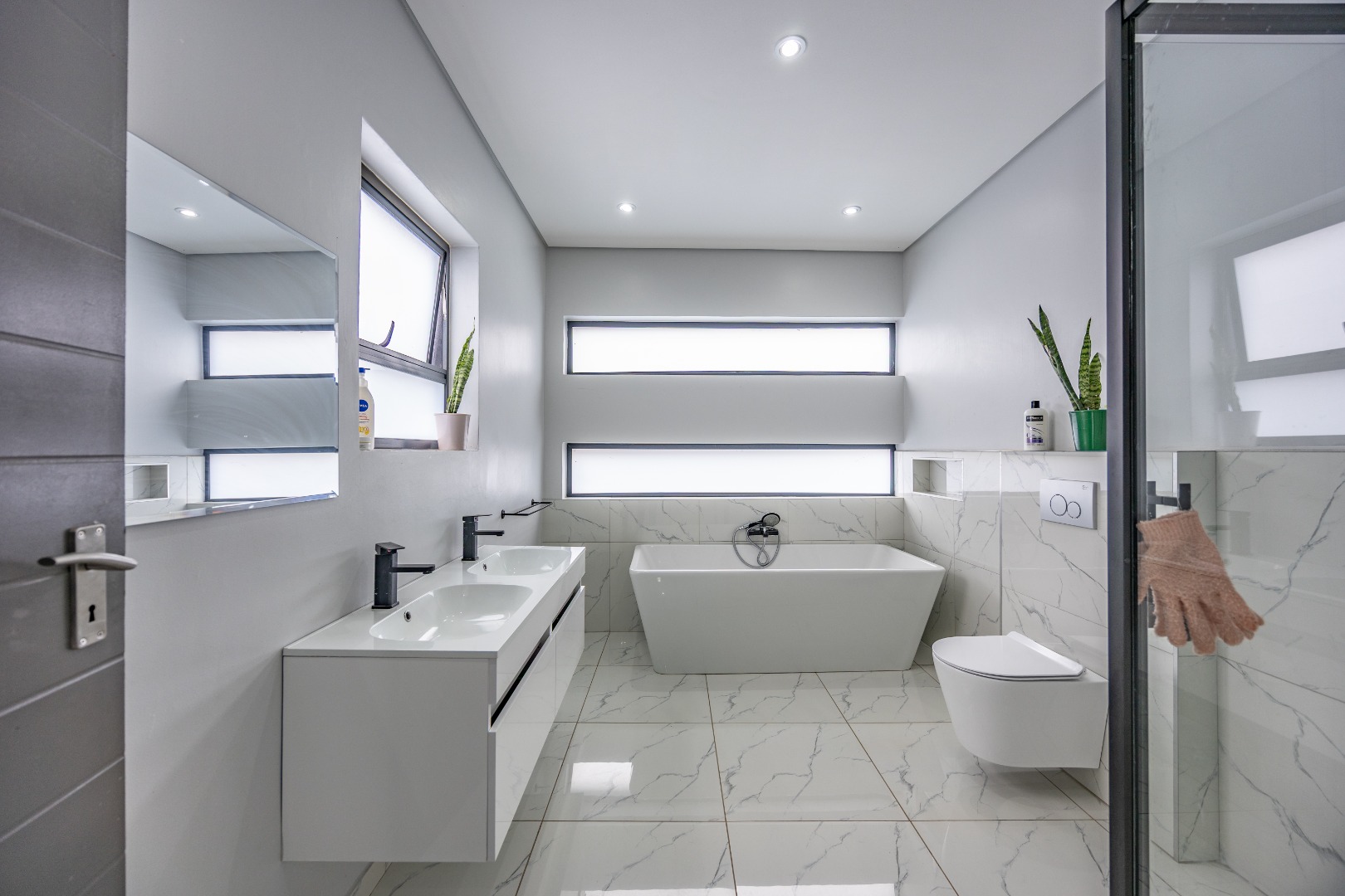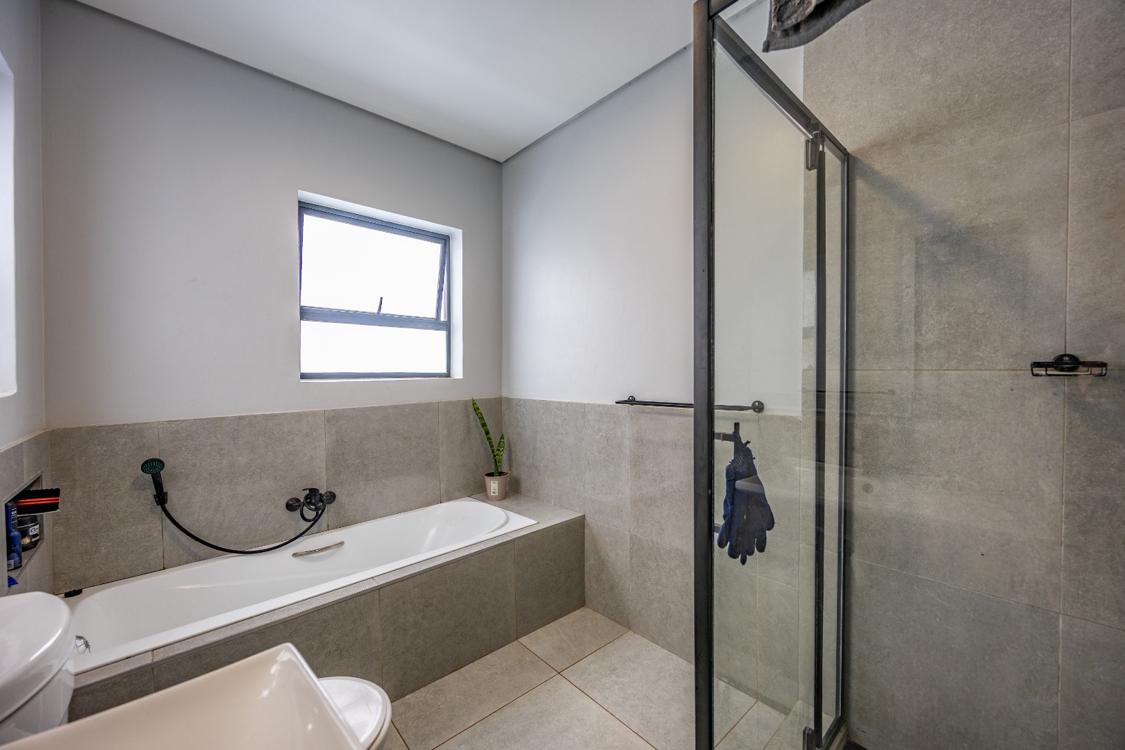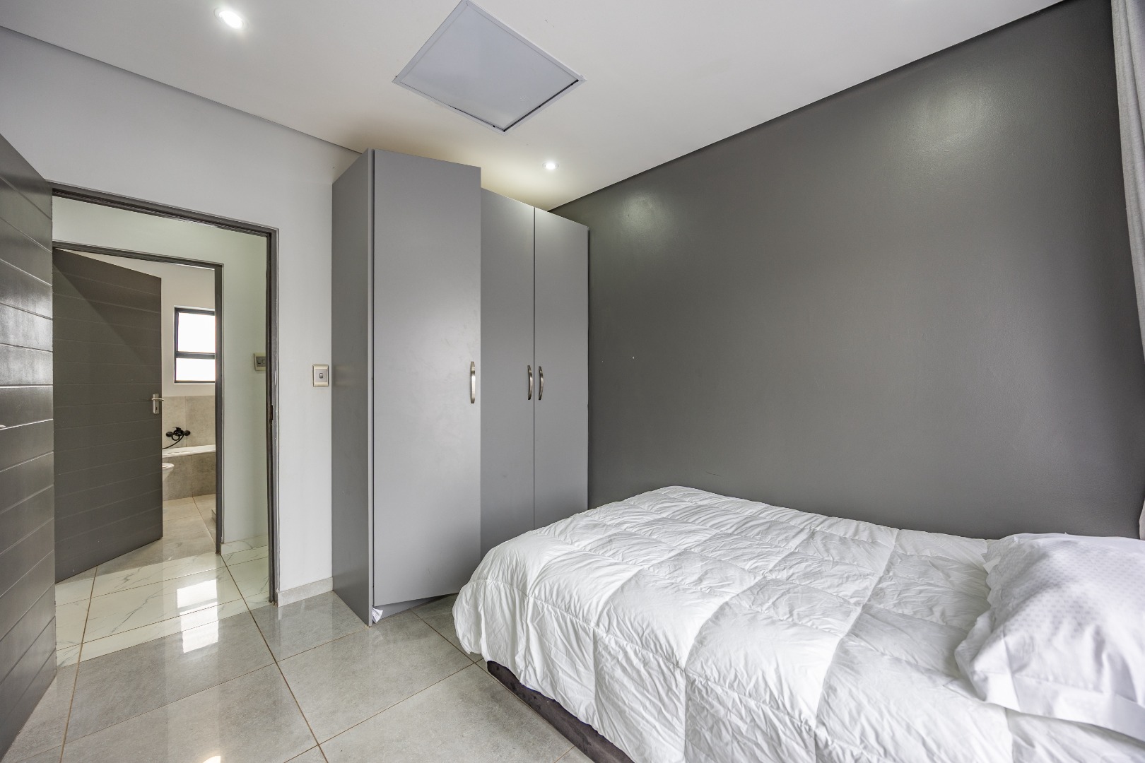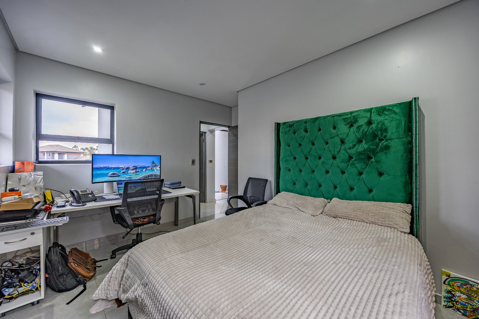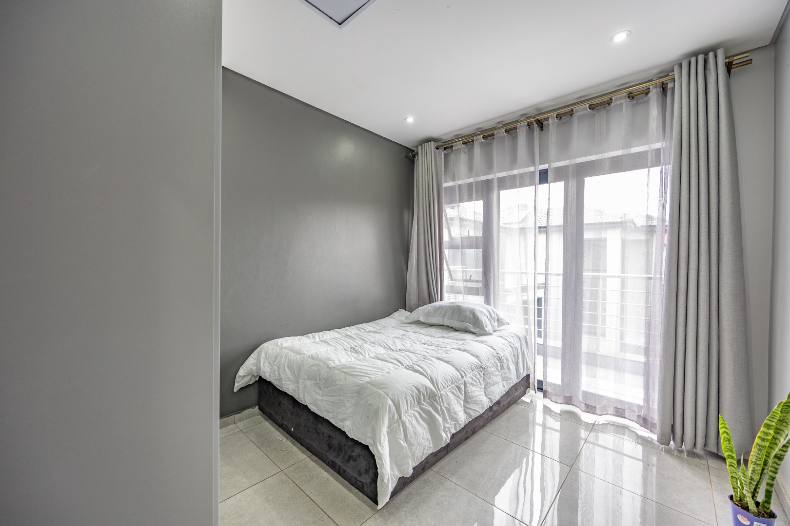 Welcome to this stunning 4-bedroom, 3-bathroom free-standing home located in a sought-after security estate offering 24-hour guarded access and peace of mind. Step through the front door and be greeted by an abundance of natural light, elegant bulk ceilings, and a spacious open-plan layout. The TV lounge, dining area, and designer kitchen flow seamlessly together, creating the perfect space for family living and entertaining. The kitchen features luxurious marble countertops, a massive center island that doubles as a breakfast counter, built-in oven and microwave, convection stove, and sleek push-touch cabinetry.