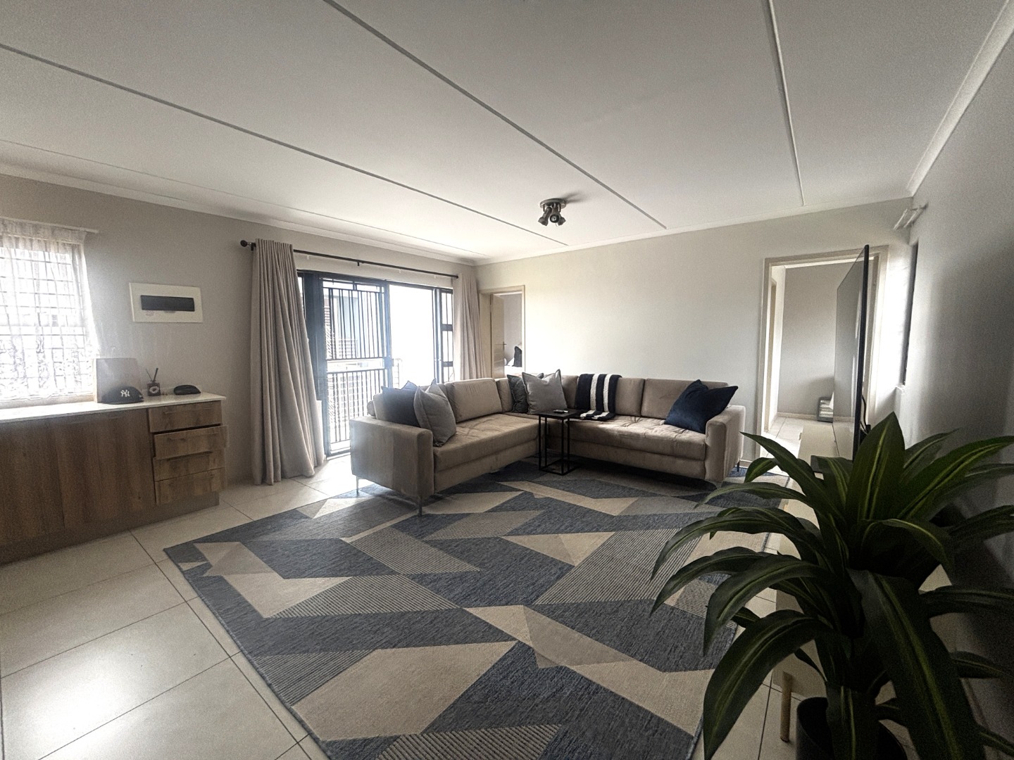 This stylish home offers an expansive open-plan living area with multiple layout possibilities and a private balcony fitted with a gas braai — perfect for entertaining. The modern kitchen features quartz countertops and a gas stove. Both bedrooms enjoy lovely views and share a full, well-appointed bathroom. Two undercover parking bays are included.