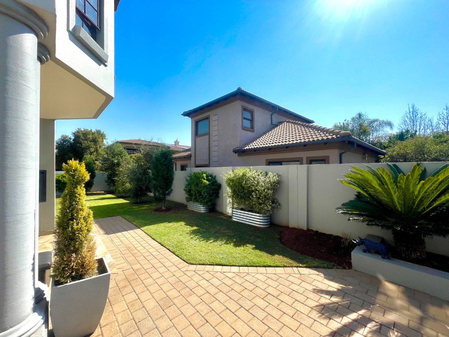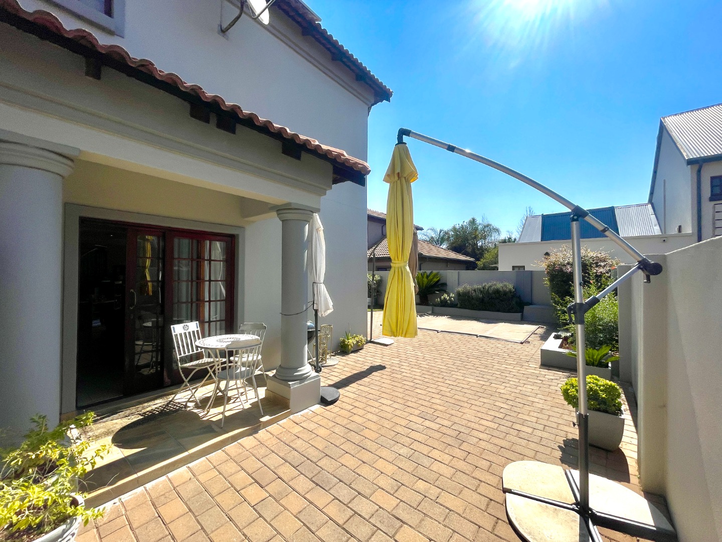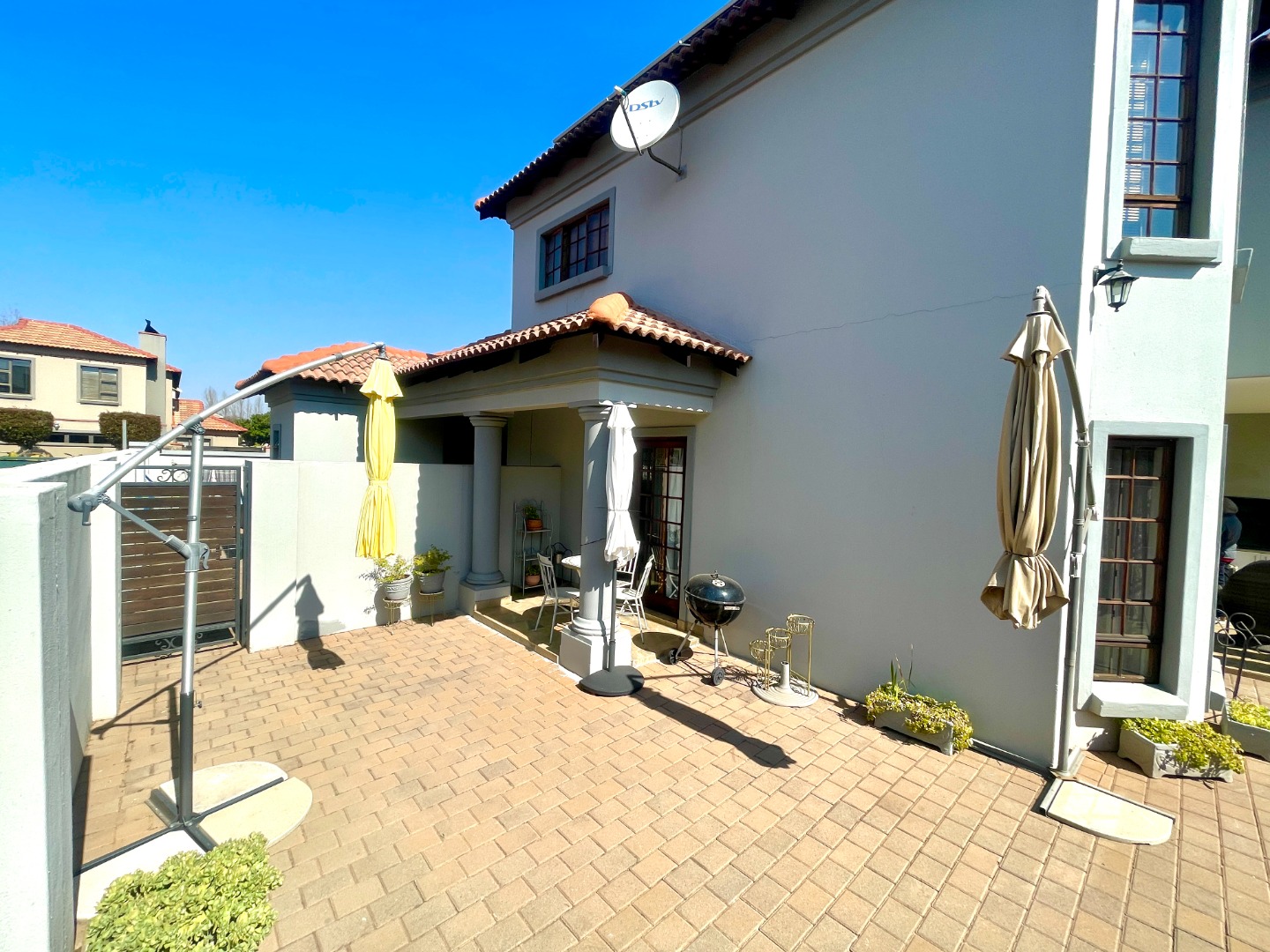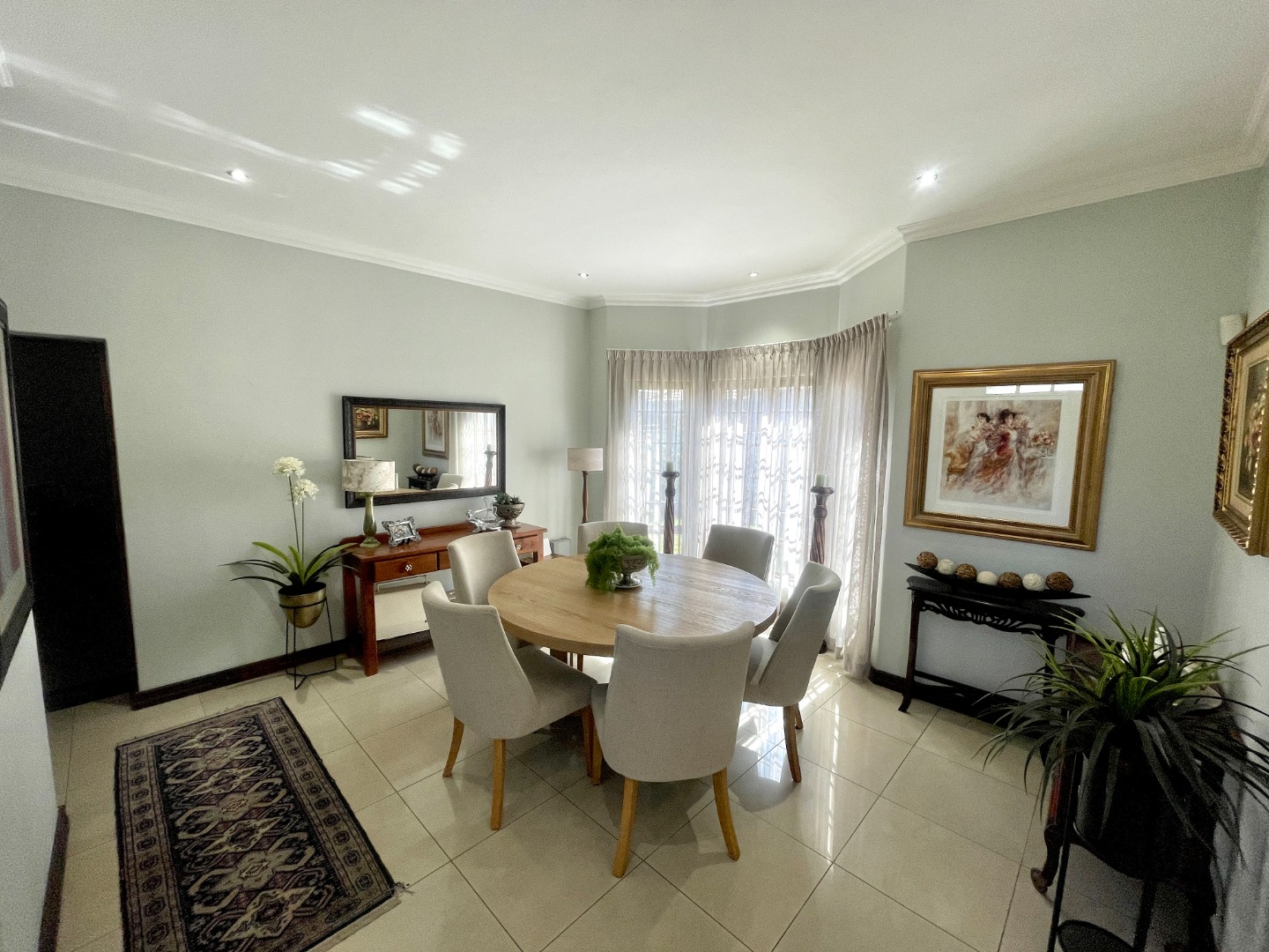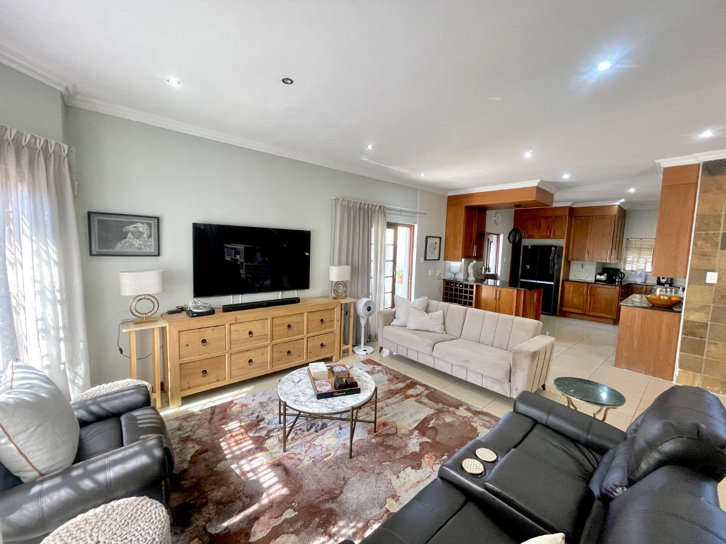 The thoughtfully designed kitchen is a culinary dream with a central island, gas hops, walk-in pantry, and space for three appliances and generous walk-in pantry, while the open-plan layout flows effortlessly into expansive living and dining areas, including a cozy library nook. Double wooden doors open out to your entertainment haven – a covered patio with built-in braai overlooking a sparkling pool and lush, private garden. Upstairs, three beautifully finished bedrooms provide restful retreats, including a renovated main bedroom with a large en-suit bathroom. Bonus features include a separate en-suite staff room (ideal as a separate flatlet), ample storage, oversized garages, a trailer parking, and energy-efficient extras like a 5KW inverter, battery, and 8 solar panels.