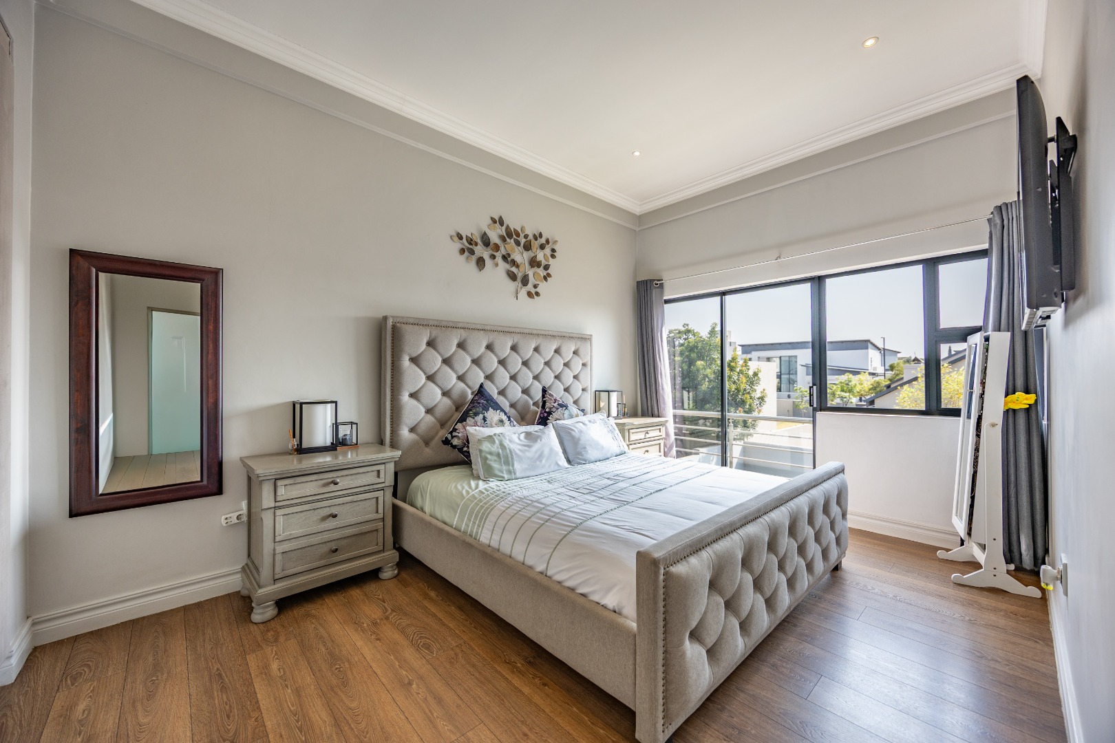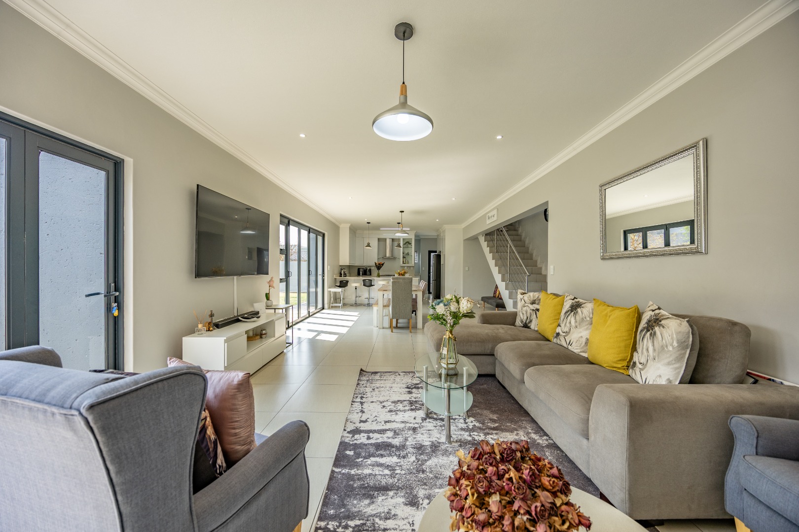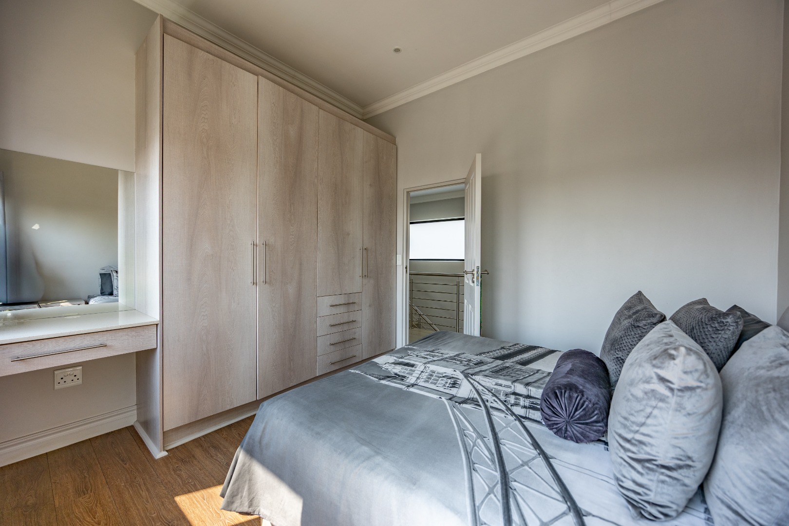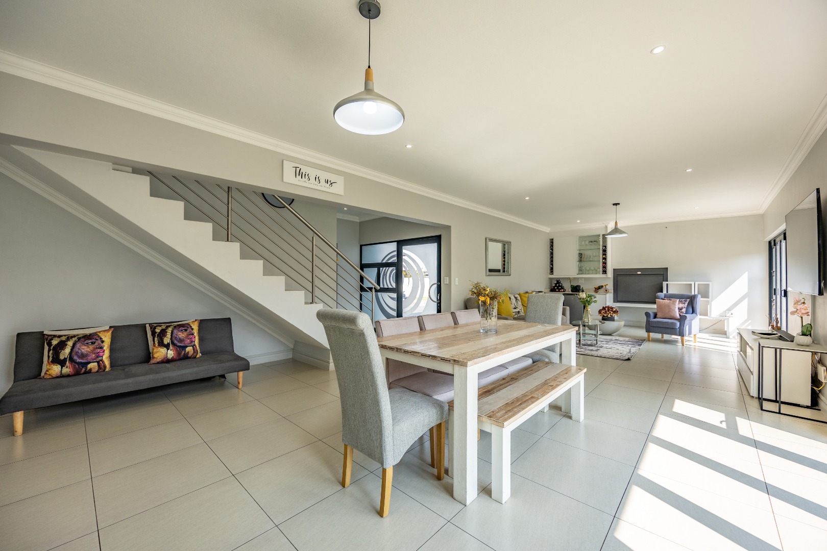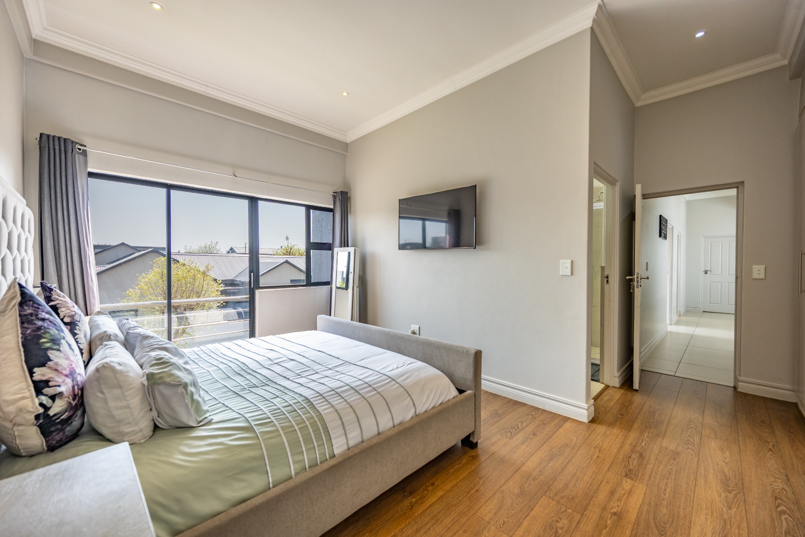 Upstairs, the luxurious main suite offers a serene retreat, complete with a private balcony, generous cupboards, and a full en-suite bathroom featuring double vanities, bath, and shower. Two additional bedrooms, each with their own balcony, provide space, light, and comfort for the entire family. With double automated garages, a solar geyser for energy-efficient living, and the peace of mind of 24/7 estate security, this home offers a secure, family-friendly lifestyle within easy reach of top schools, shopping, and healthcare. Don’t miss the opportunity to make this exceptional residence yours—contact us today to arrange your exclusive viewing