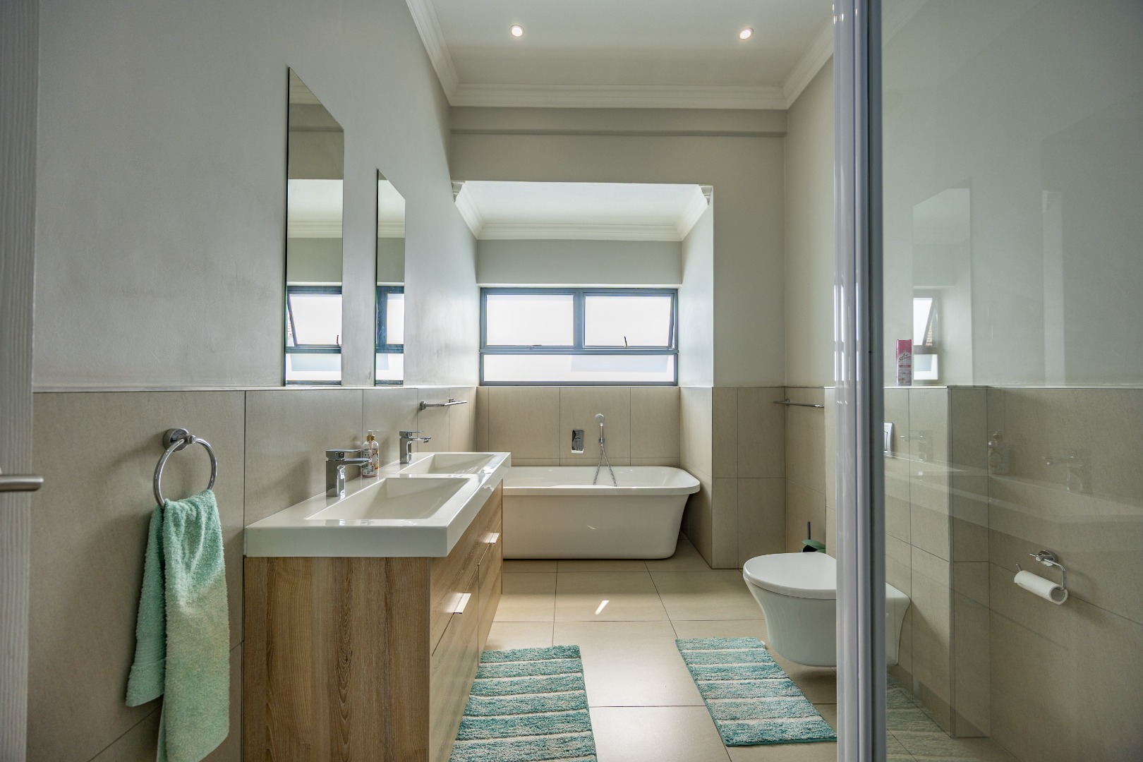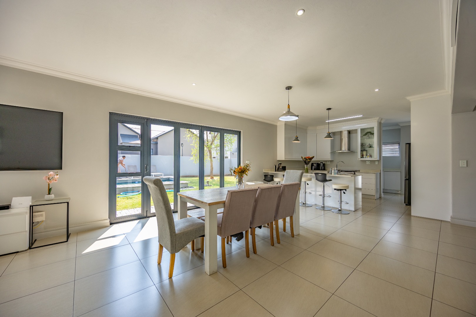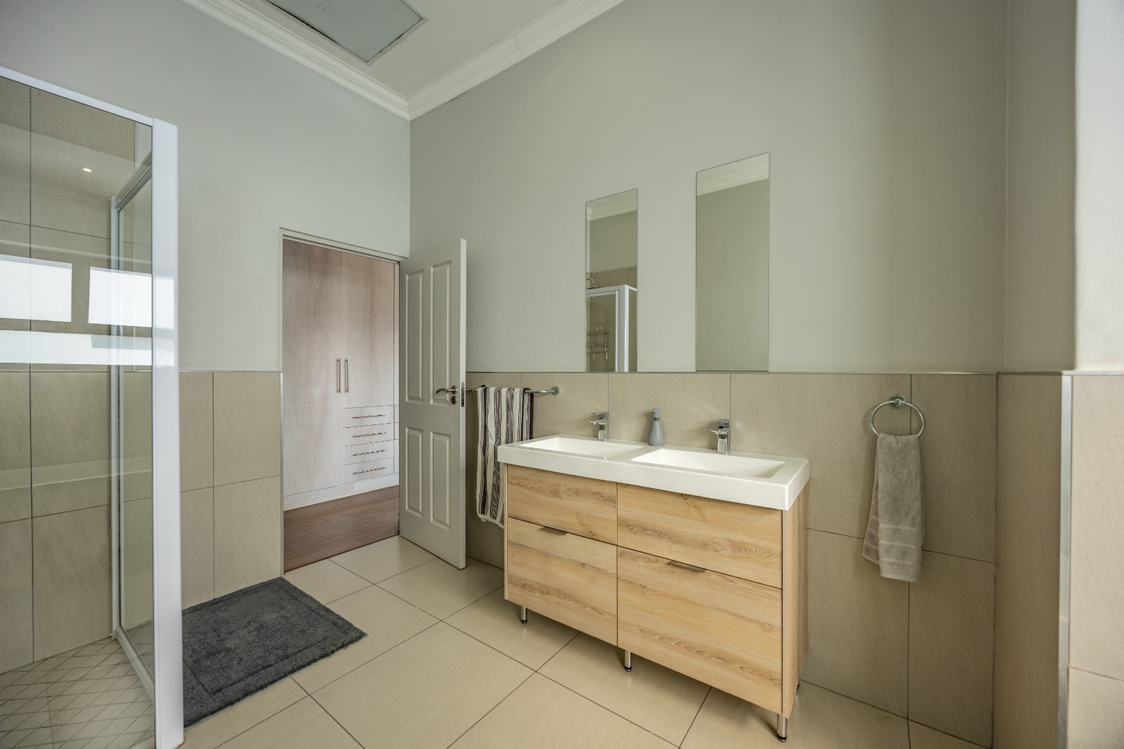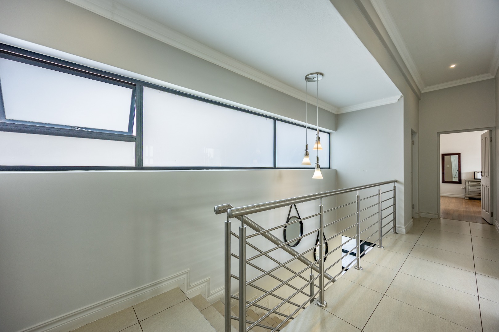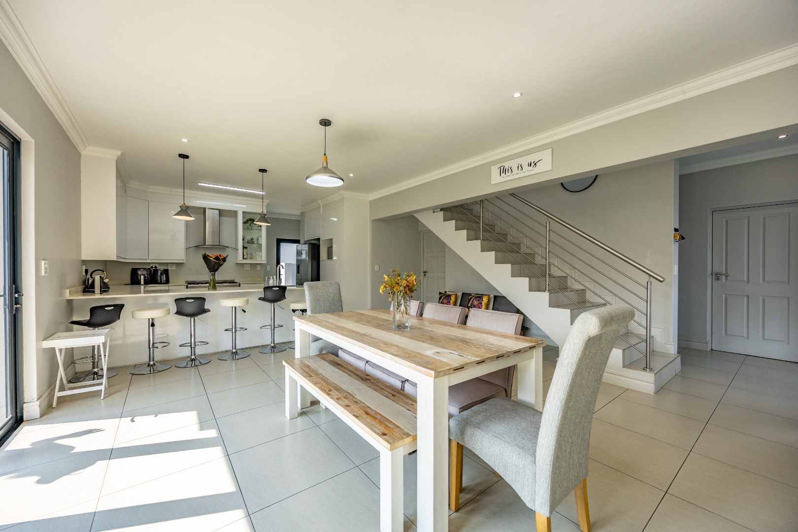 Upstairs, the luxurious main suite offers a serene retreat, complete with a private balcony, generous cupboards, and a full en-suite bathroom featuring double vanities, bath, and shower. Two additional bedrooms, each with their own balcony, provide space, light, and comfort for the entire family. With double automated garages, a solar geyser for energy-efficient living, and the peace of mind of 24/7 estate security, this home offers a secure, family-friendly lifestyle within easy reach of top schools, shopping, and healthcare. Don’t miss the opportunity to make this exceptional residence yours—contact us today to arrange your exclusive viewing