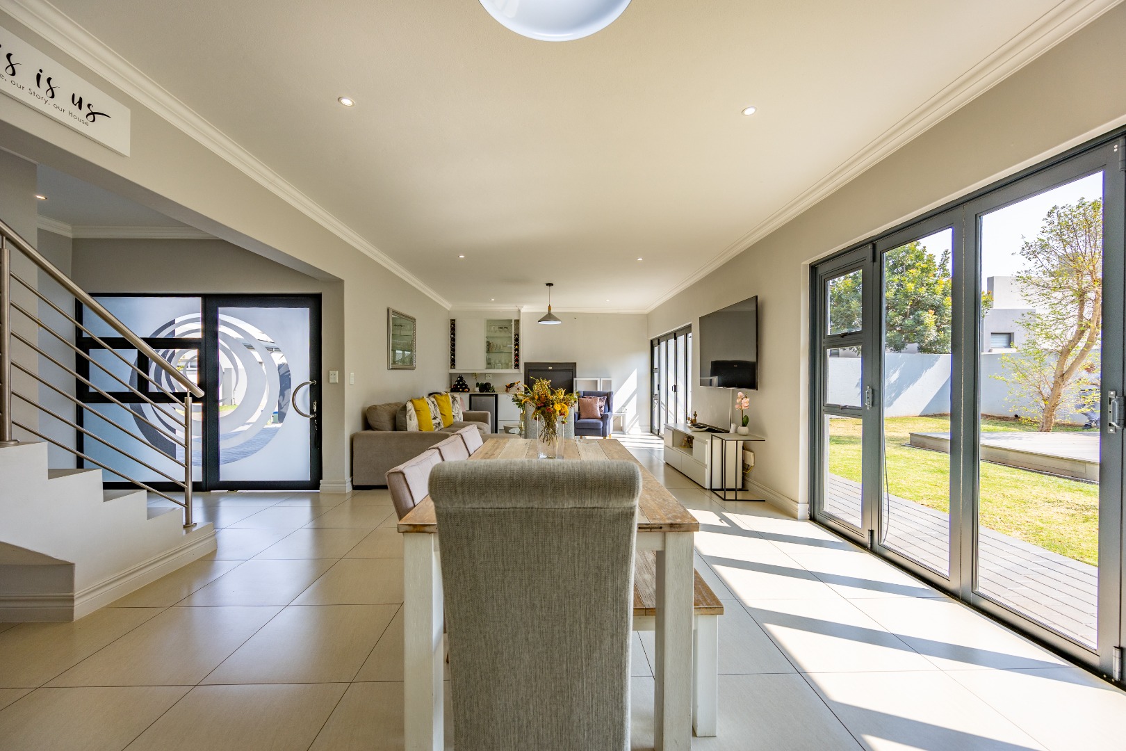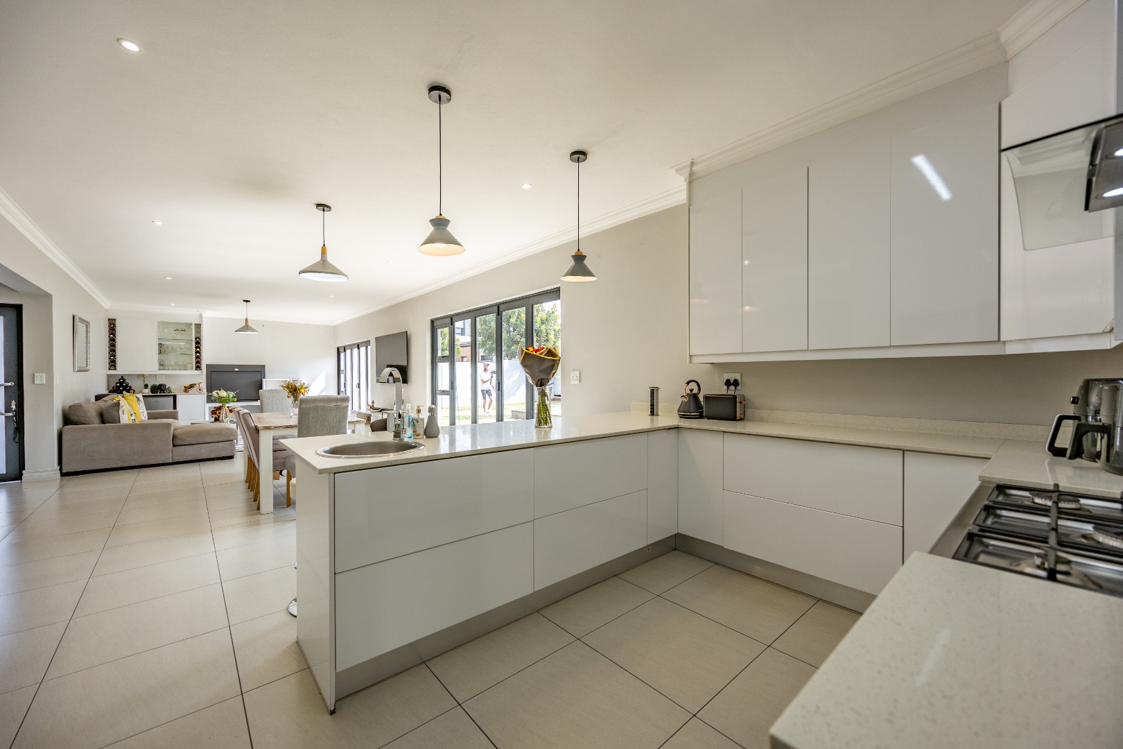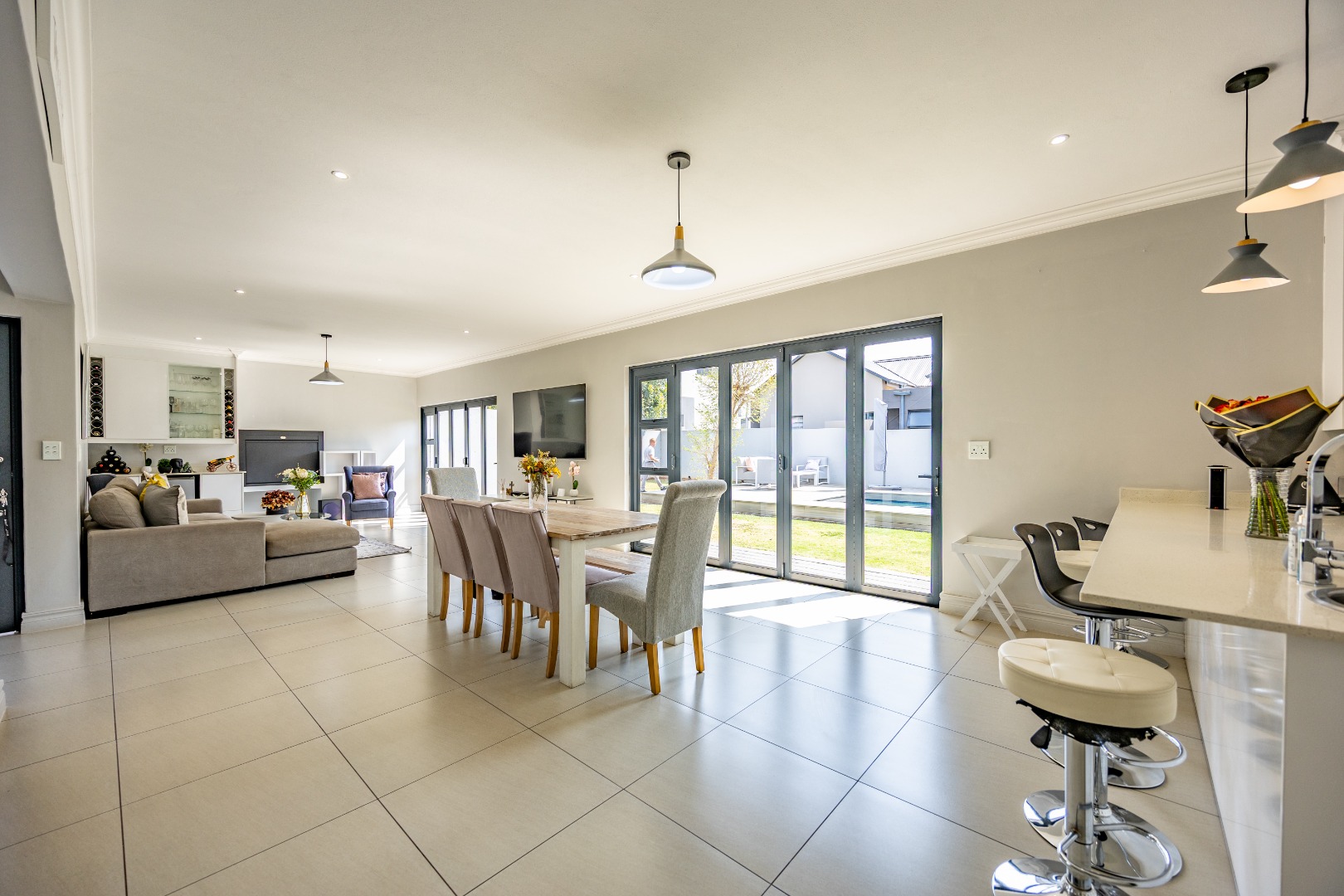 Ideal for entertaining, the heart of the home opens seamlessly through stacking doors onto a beautifully landscaped garden and sparkling private swimming pool. Whether you’re hosting family gatherings, enjoying summer braais with friends, or simply unwinding after a long day, this home delivers the perfect balance of indoor-outdoor living. The built-in braai, stylish design, and ample natural light create a welcoming atmosphere you’ll be proud to call your own.