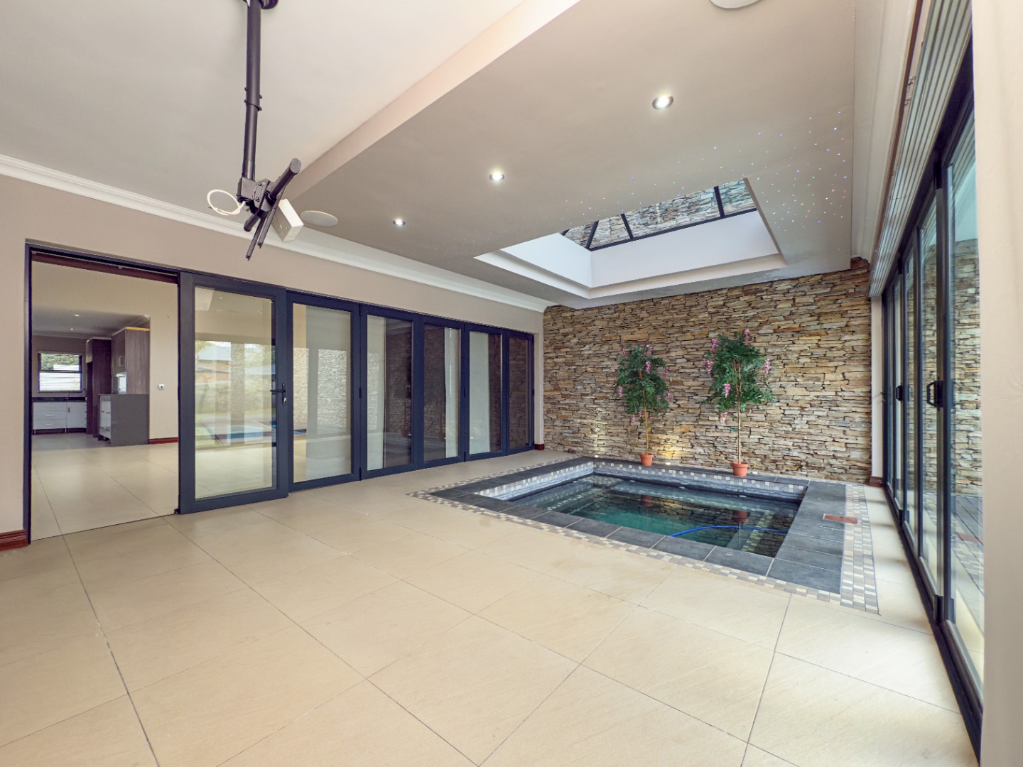 Welcome to Midlands Estate’s Ultimate Address — a one-of-a-kind, double-stand mansion crafted for those who live boldly, entertain effortlessly, and appreciate the art of luxury living. From the moment you walk through the grand double-volume entrance, you’re greeted by natural light pouring in from floor-to-ceiling windows, soaring ceilings, and open plan spaces that invite connection. Whether it’s game day in the hot tub under a starlit skylight or evenings spent around the fire lit boama with the statement hand-laid cladded wall towering over the lap pool or with music playing through the built-in sound system, this is a home where moments turn into memories.