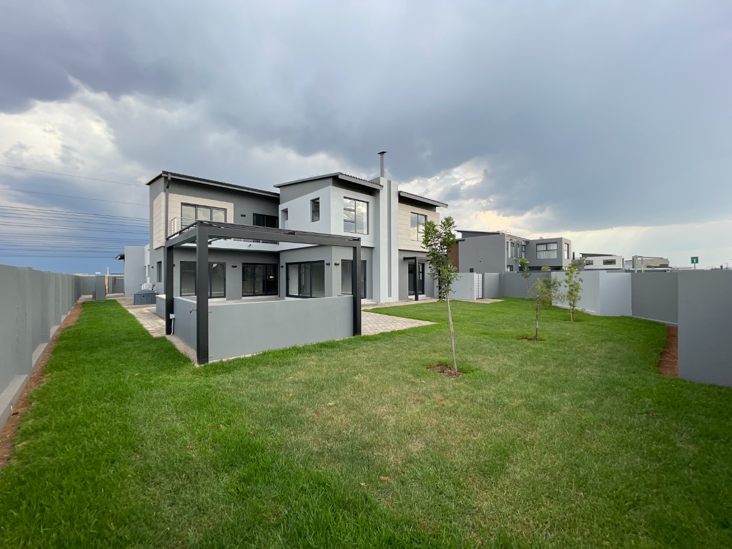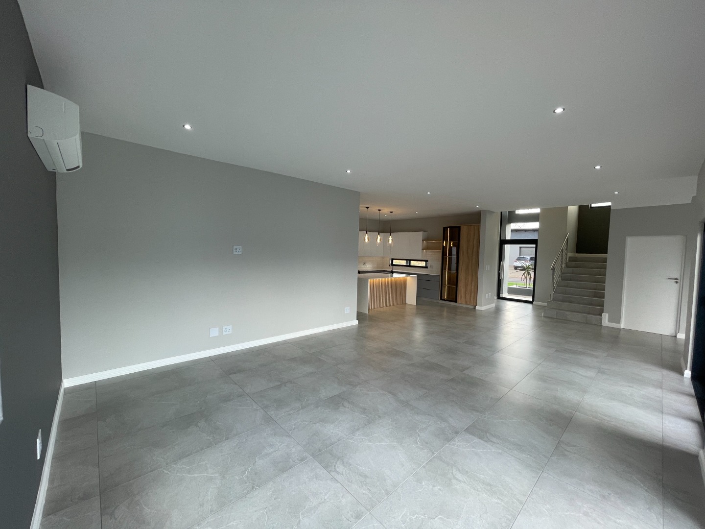 Step inside this newly completed 4-bedroom architectural showpiece and experience where modern design meets timeless luxury. Every inch of this home was designed to impress, from the triple tiled garages and grand double-volume entrance to the seamless open-plan layout that blurs the lines between indoor sophistication and outdoor living. The entertainer’s heart beats in the gourmet SMEG kitchen, complete with a 900mm gas hob, built-in microwave, and walk-in scullery linking directly to staff accommodation. Frameless showers, Giberit toilets, and two Samsung air-conditioners set the tone for a home that’s every bit as functional as it is flawless.