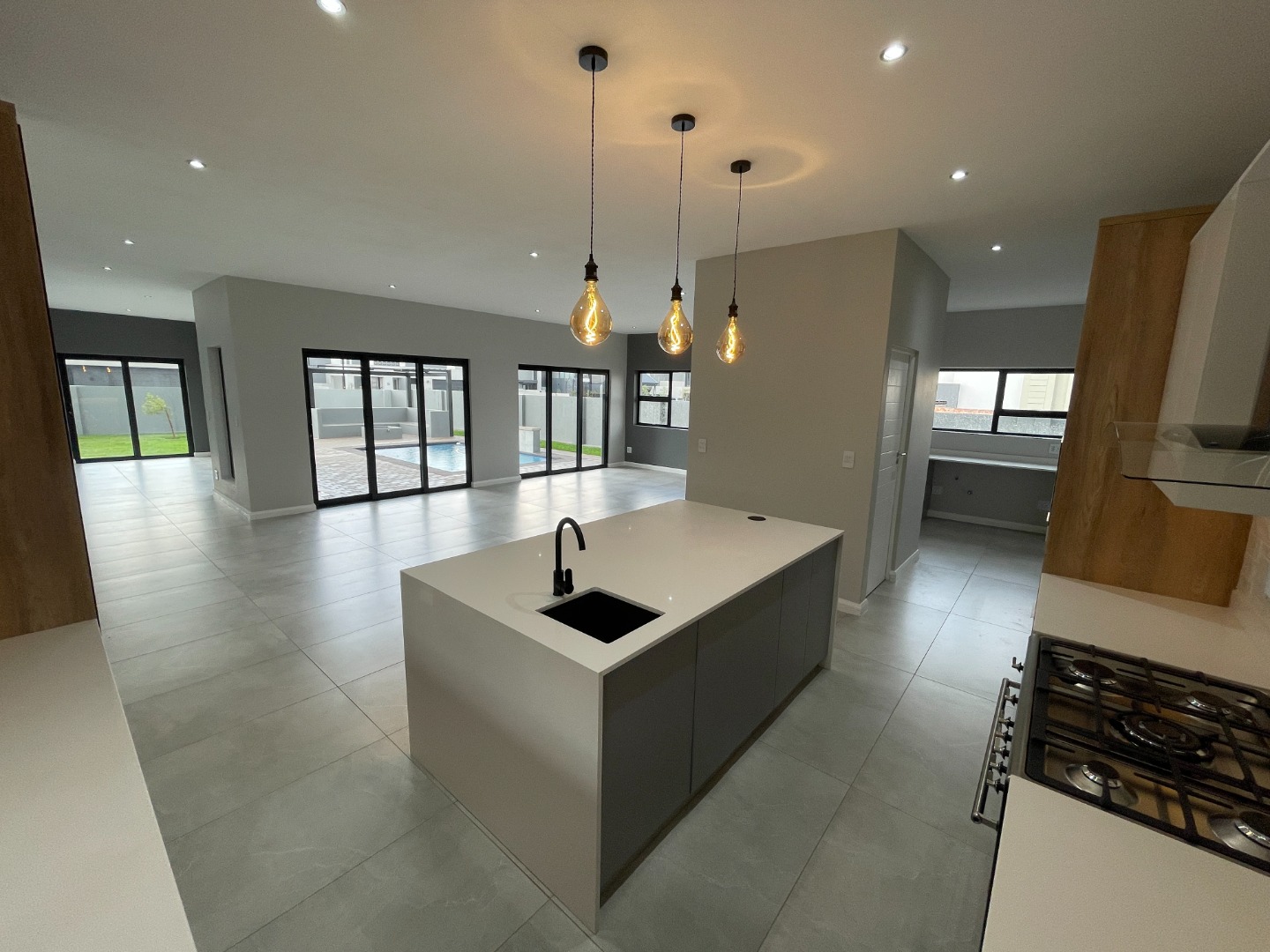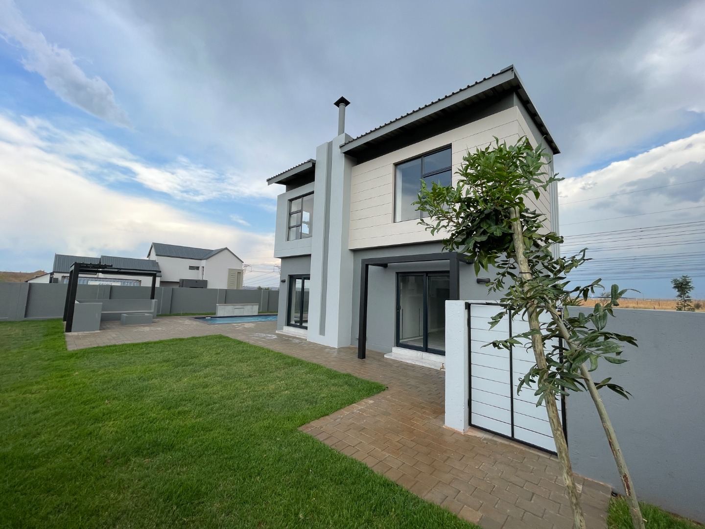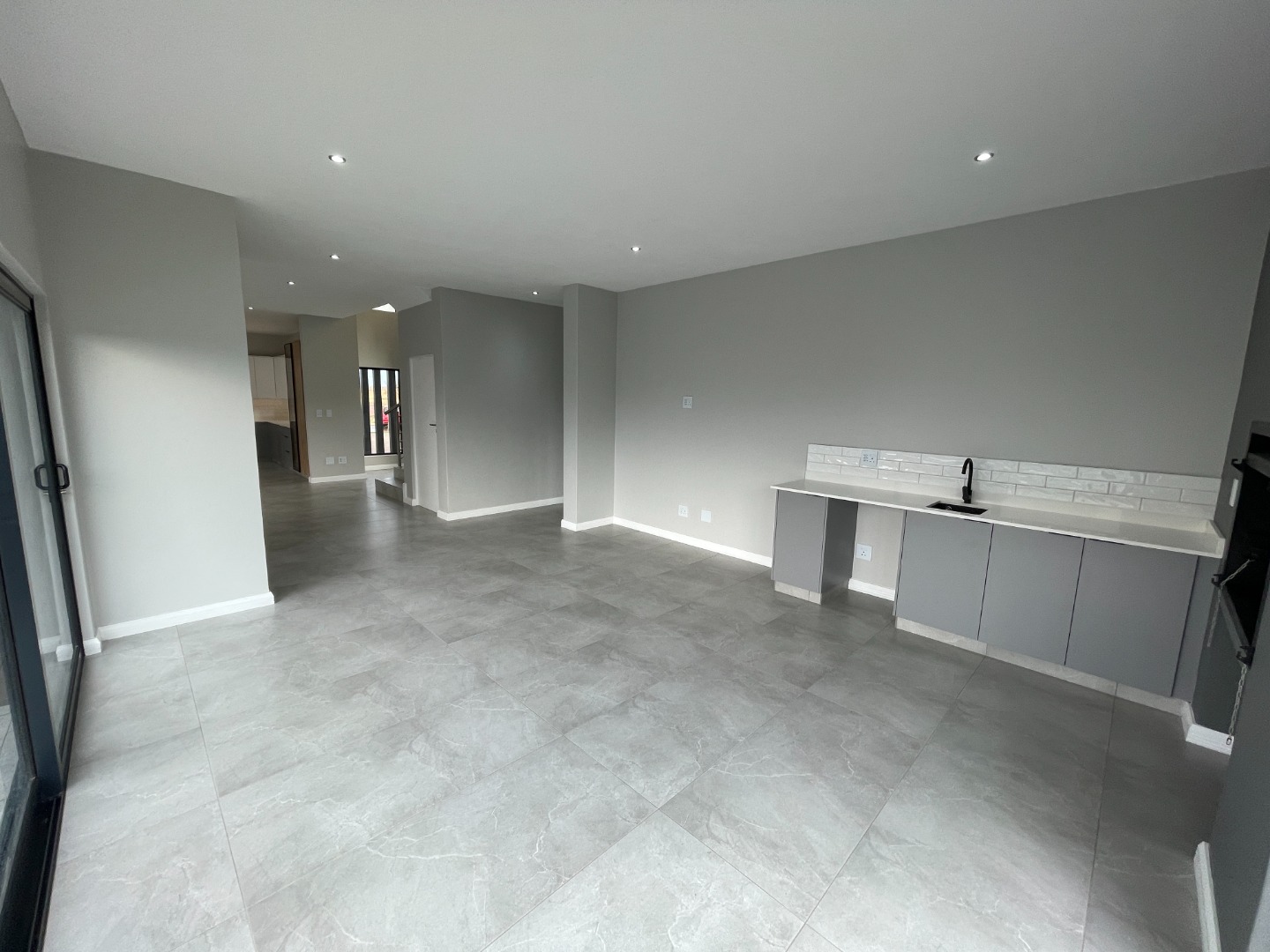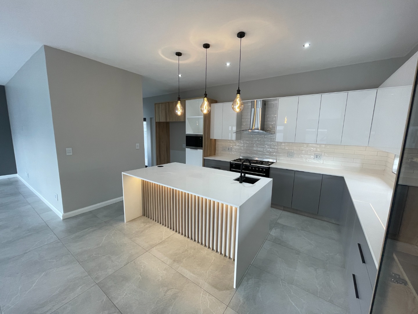 Step inside this newly completed 4-bedroom architectural showpiece and experience where modern design meets timeless luxury. Every inch of this home was designed to impress, from the triple tiled garages and grand double-volume entrance to the seamless open-plan layout that blurs the lines between indoor sophistication and outdoor living. The entertainer’s heart beats in the gourmet SMEG kitchen, complete with a 900mm gas hob, built-in microwave, and walk-in scullery linking directly to staff accommodation. Frameless showers, Giberit toilets, and two Samsung air-conditioners set the tone for a home that’s every bit as functional as it is flawless.