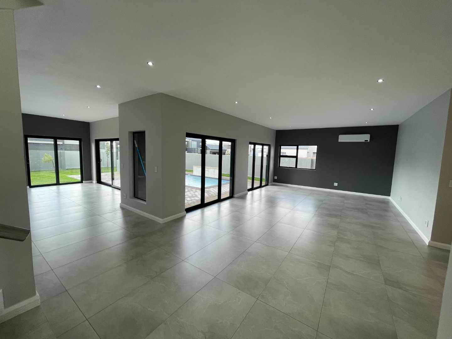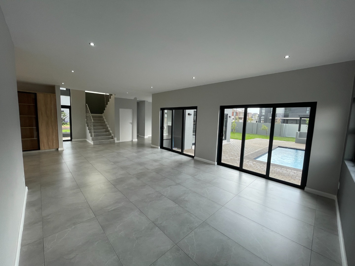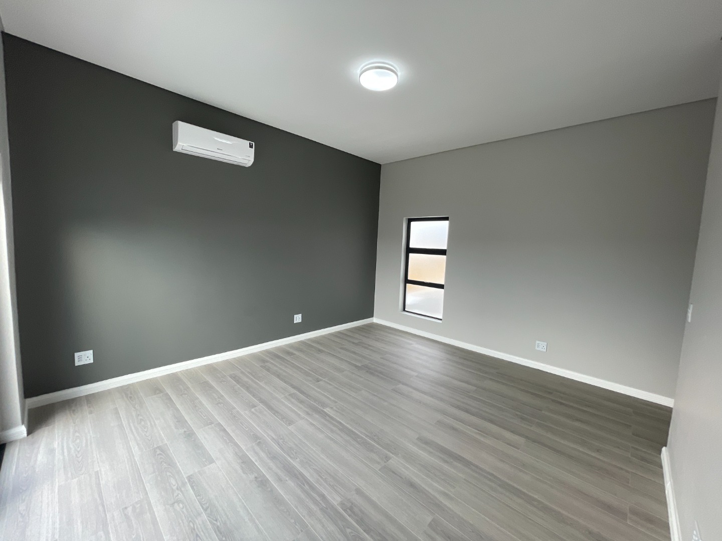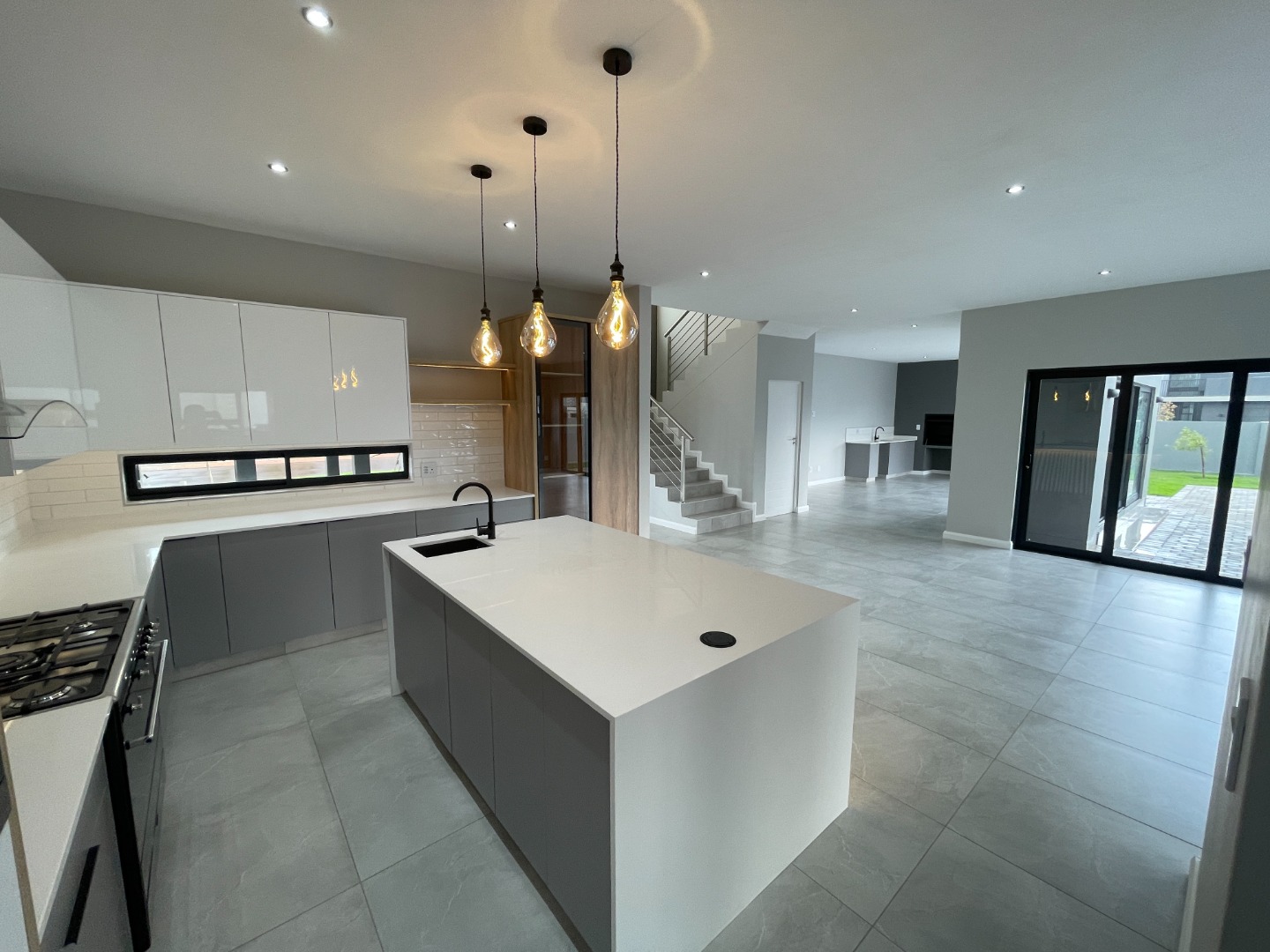 Step inside this newly completed 4-bedroom architectural showpiece and experience where modern design meets timeless luxury. Every inch of this home was designed to impress, from the triple tiled garages and grand double-volume entrance to the seamless open-plan layout that blurs the lines between indoor sophistication and outdoor living. The entertainer’s heart beats in the gourmet SMEG kitchen, complete with a 900mm gas hob, built-in microwave, and walk-in scullery linking directly to staff accommodation. Frameless showers, Giberit toilets, and two Samsung air-conditioners set the tone for a home that’s every bit as functional as it is flawless.