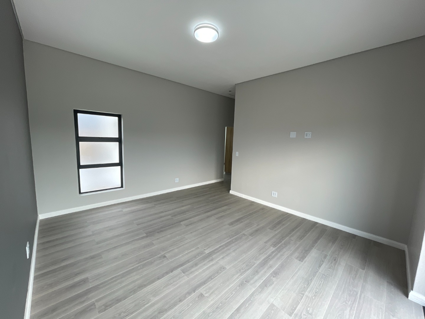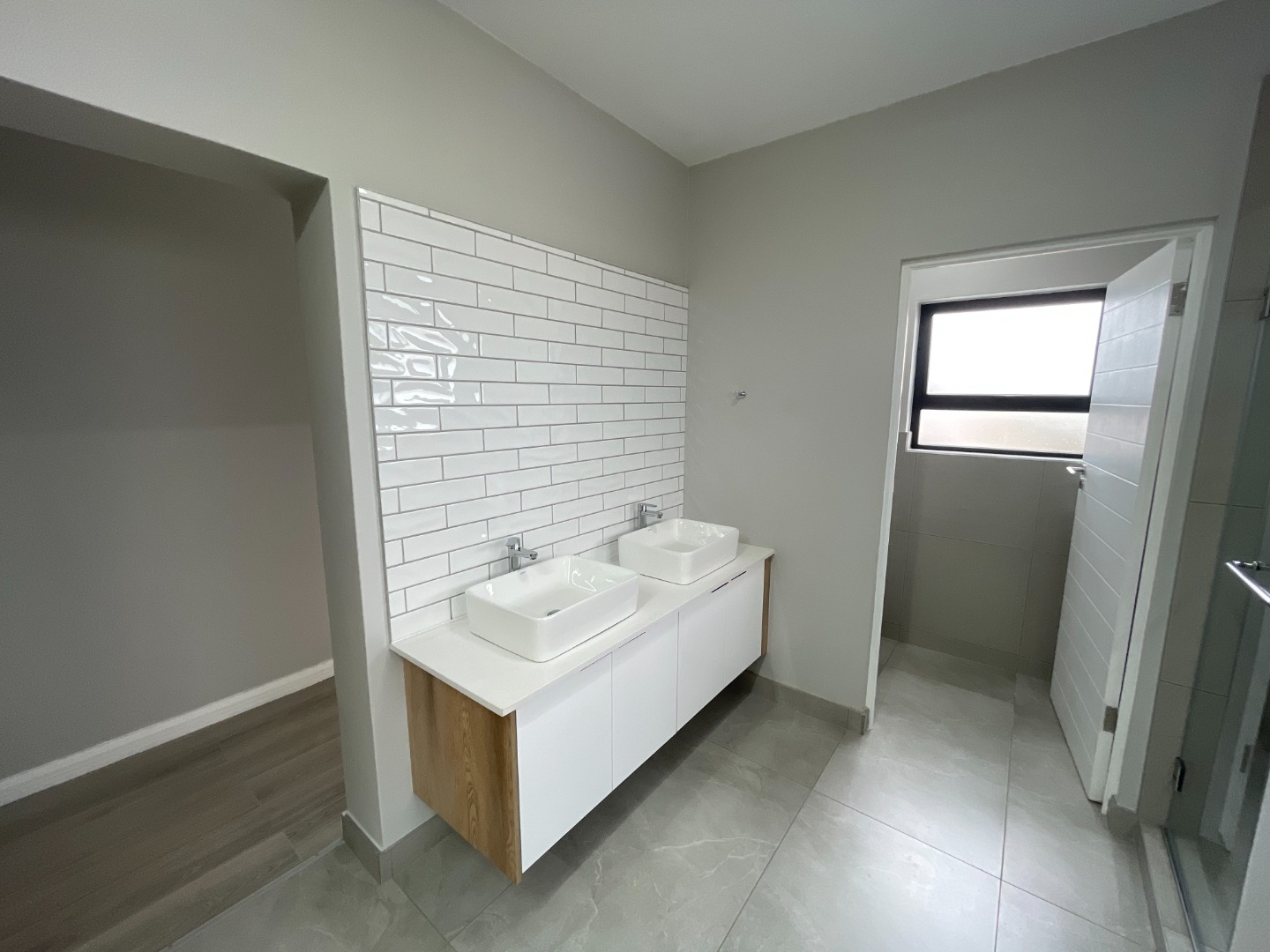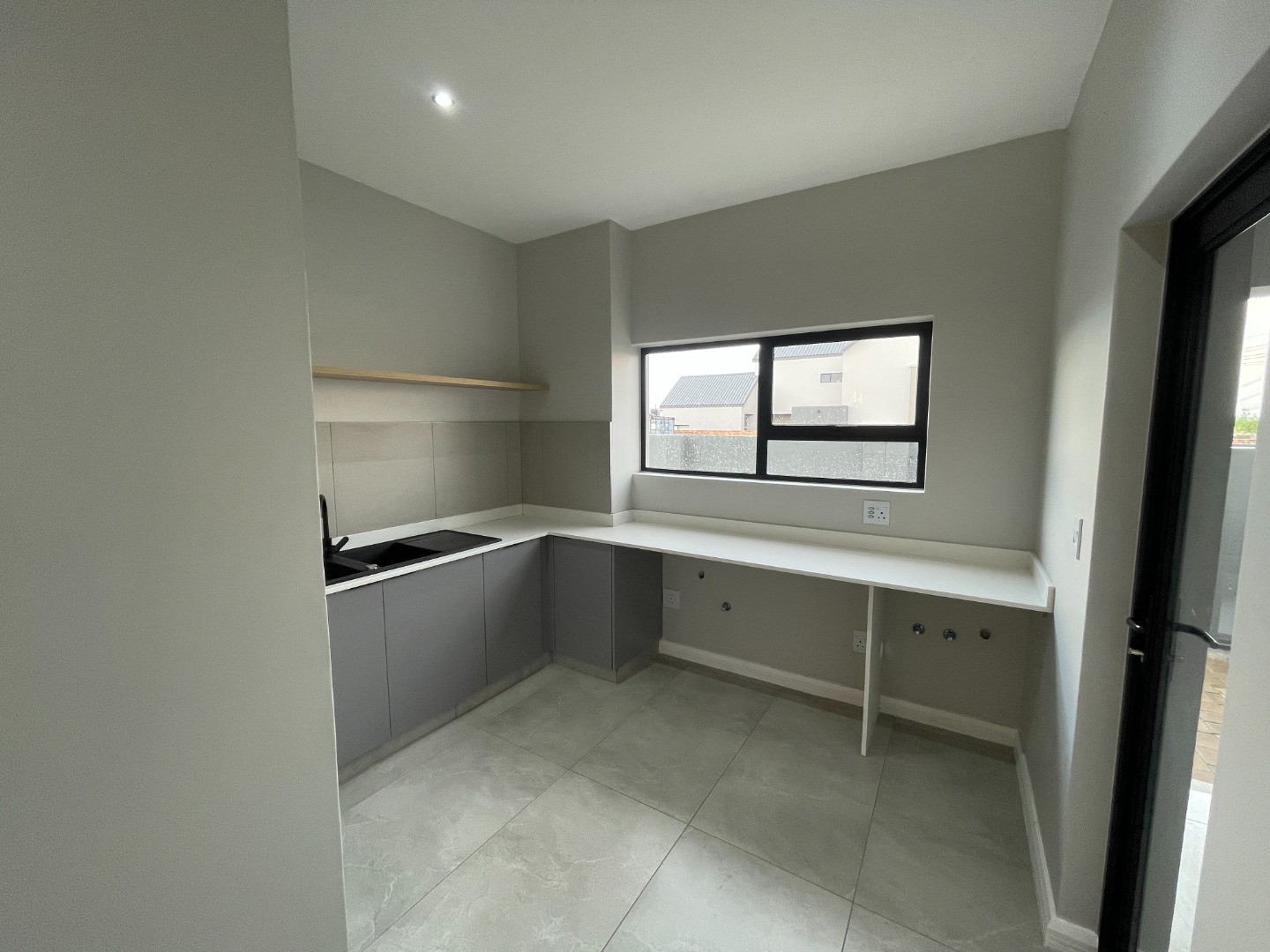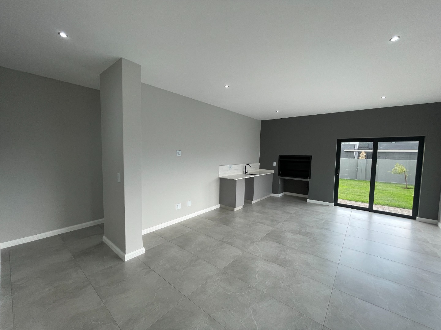 Step inside this newly completed 4-bedroom architectural showpiece and experience where modern design meets timeless luxury. Every inch of this home was designed to impress, from the triple tiled garages and grand double-volume entrance to the seamless open-plan layout that blurs the lines between indoor sophistication and outdoor living. The entertainer’s heart beats in the gourmet SMEG kitchen, complete with a 900mm gas hob, built-in microwave, and walk-in scullery linking directly to staff accommodation. Frameless showers, Giberit toilets, and two Samsung air-conditioners set the tone for a home that’s every bit as functional as it is flawless.
