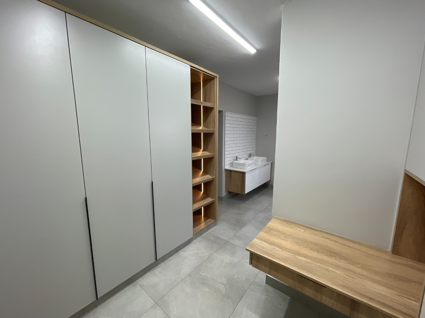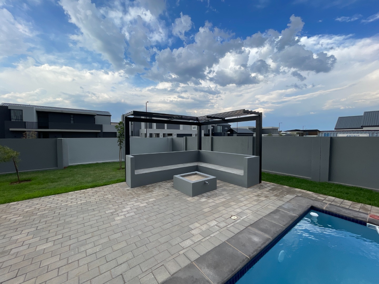 Slide open the glass doors and let your lifestyle expand outdoors to a covered patio with built-in braai, a sparkling pool, and a landscaped garden with a fully equipped Rainbird 12-station irrigation system. The BOMA and firepit with built-in seating invite relaxed evenings under the stars, while the outside shower and basin make summer days effortless. A single roller garage door is perfectly placed for trailer storage, and the spacious driveway easily welcomes your guests. Inside, clever under-stair storage and aluminum door finishes reflect attention to every detail making the home practical, refined, and built to last.
