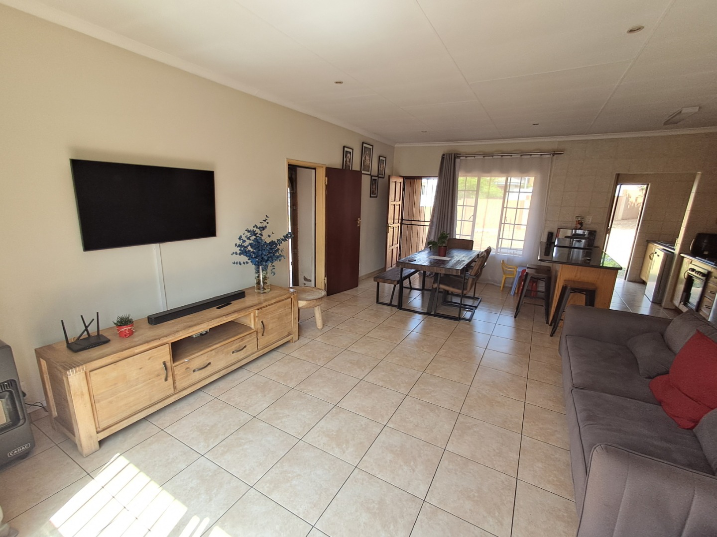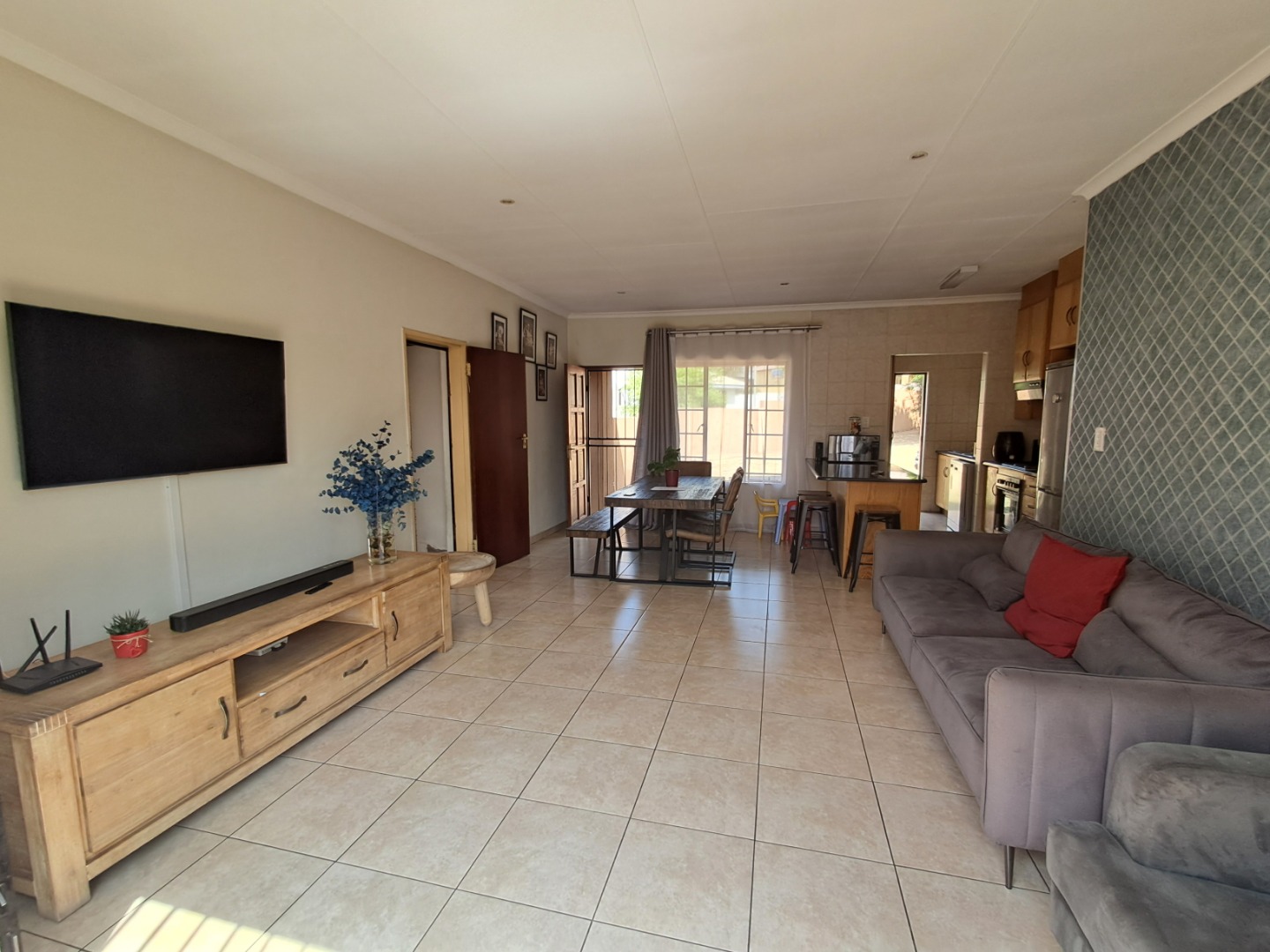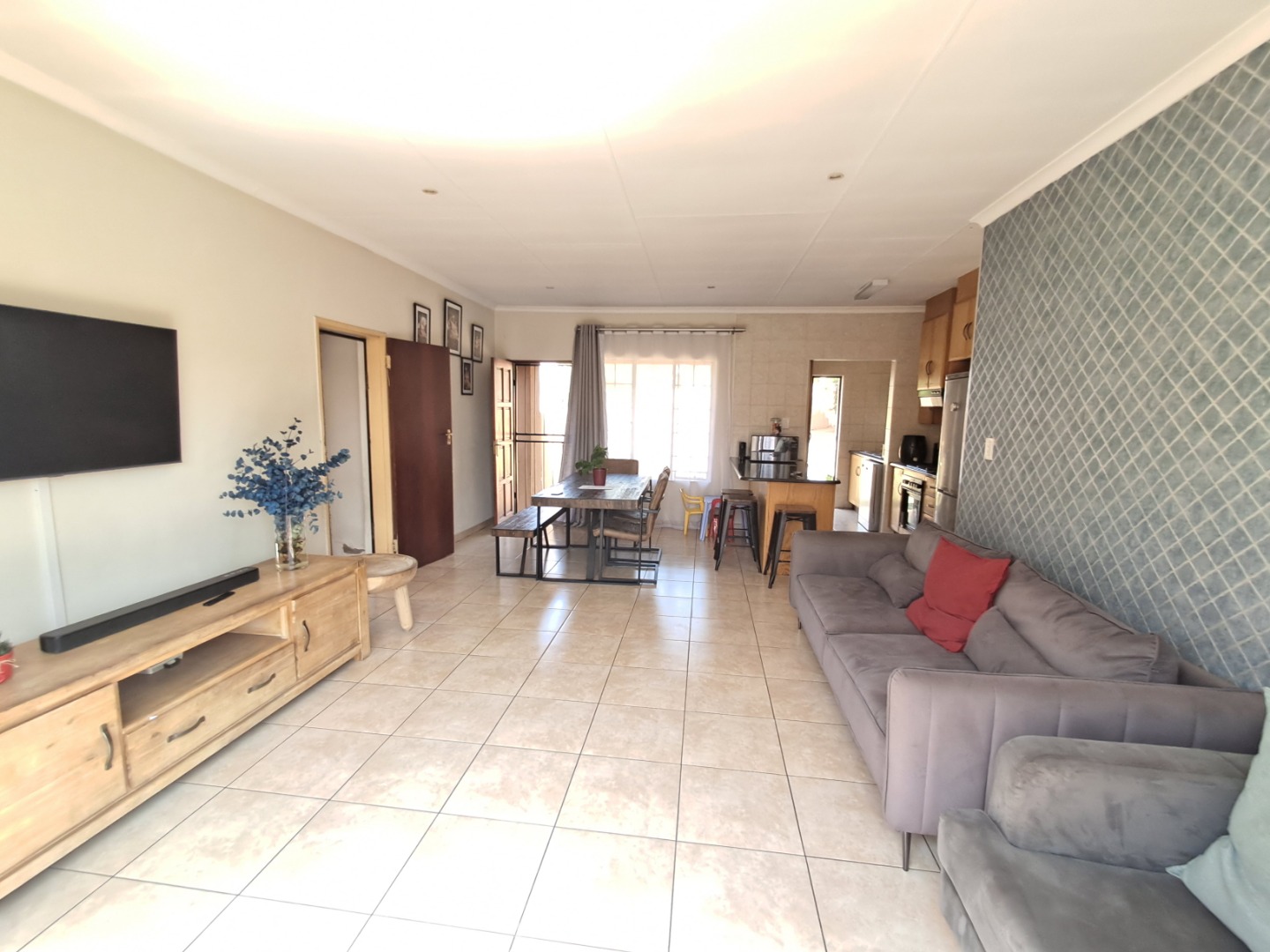 This beautiful corner family home offers comfort, style, and space on a generous erf of 1,062m² with 134m² under roof. It features 3 bedrooms and 2 bathrooms, including a master en suite, as well as open-plan living areas enhanced with underfloor heating. The modern kitchen flows seamlessly into the entertainment space with a built in braai, making it perfect for family gatherings and entertaining guests. Additional highlights include a double garage, solar system with inverter, and a big, well-maintained garden with plenty of room for children and pets.