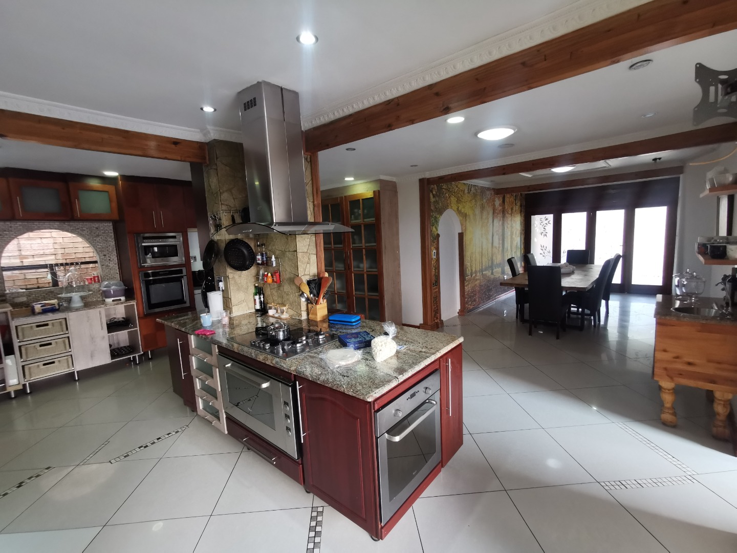 The living areas are where this home truly shines. Multiple lounges and dining spaces provide flexibility for both everyday living and hosting guests. Whether it's a formal dinner, a casual family gathering, or a quiet evening, there is a space suited for every occasion. The kitchen is centrally positioned and designed with functionality in mind, offering ample cabinetry, workspace, and room for modern appliances. It connects naturally to the dining and entertainment areas, making it the true heart of the home.