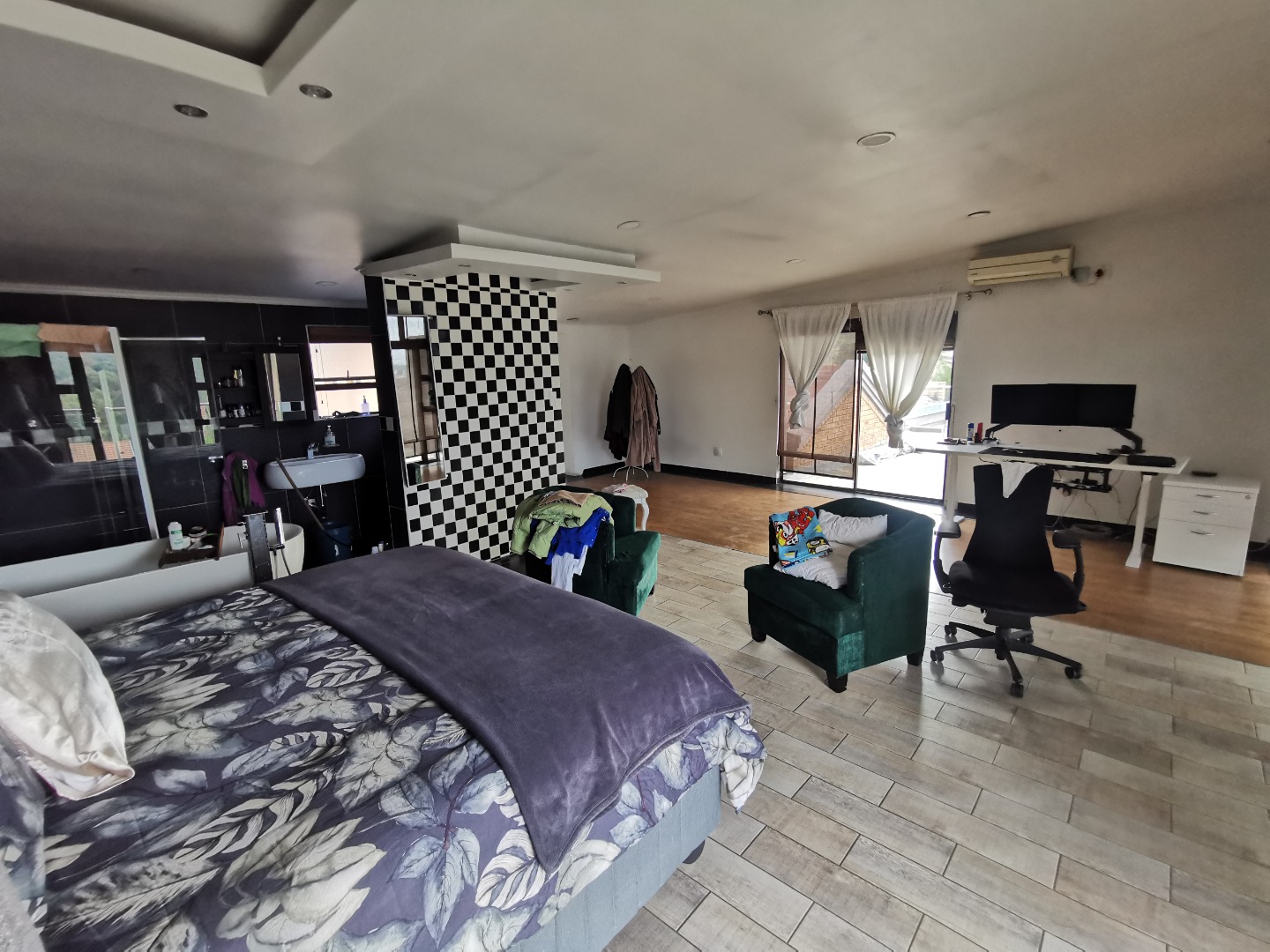 Stepping outside, the property continues to impress. A sparkling swimming pool forms the centerpiece of the outdoor entertainment area, perfect for cooling off during warm Johannesburg summers or hosting weekend gatherings. Surrounding the pool is a spacious yard, offering plenty of room for children to play, pets to roam, or future landscaping enhancements.