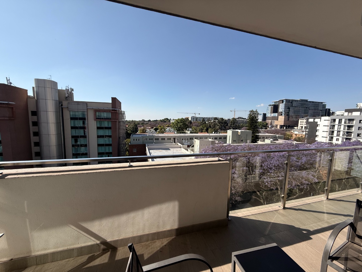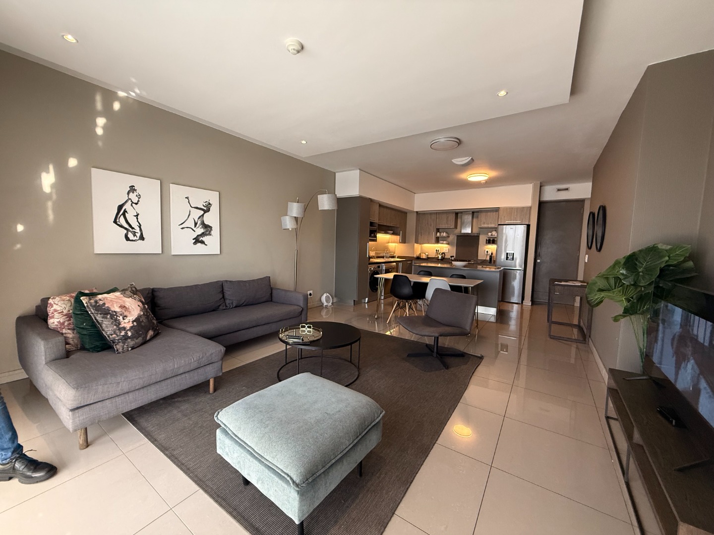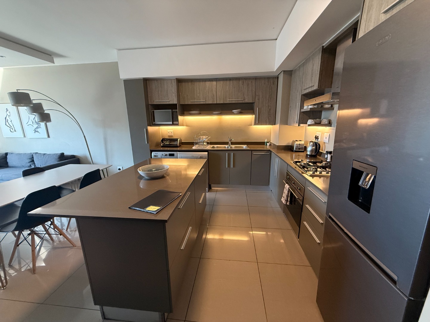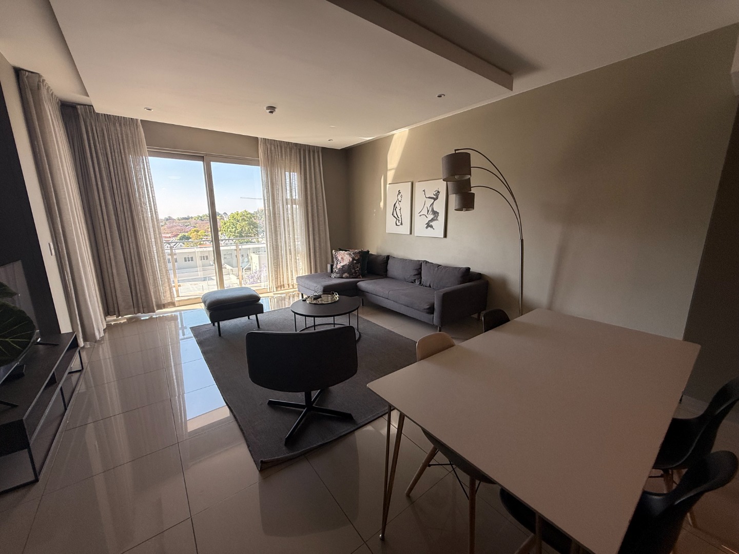 Situated on an upper floor, the apartment offers breathtaking views of the Johannesburg skyline, flooding the living spaces with natural light. The open-plan layout features a modern kitchen equipped with high-end appliances, sleek cabinetry, and elegant finishes – ideal for entertaining or relaxing in style.