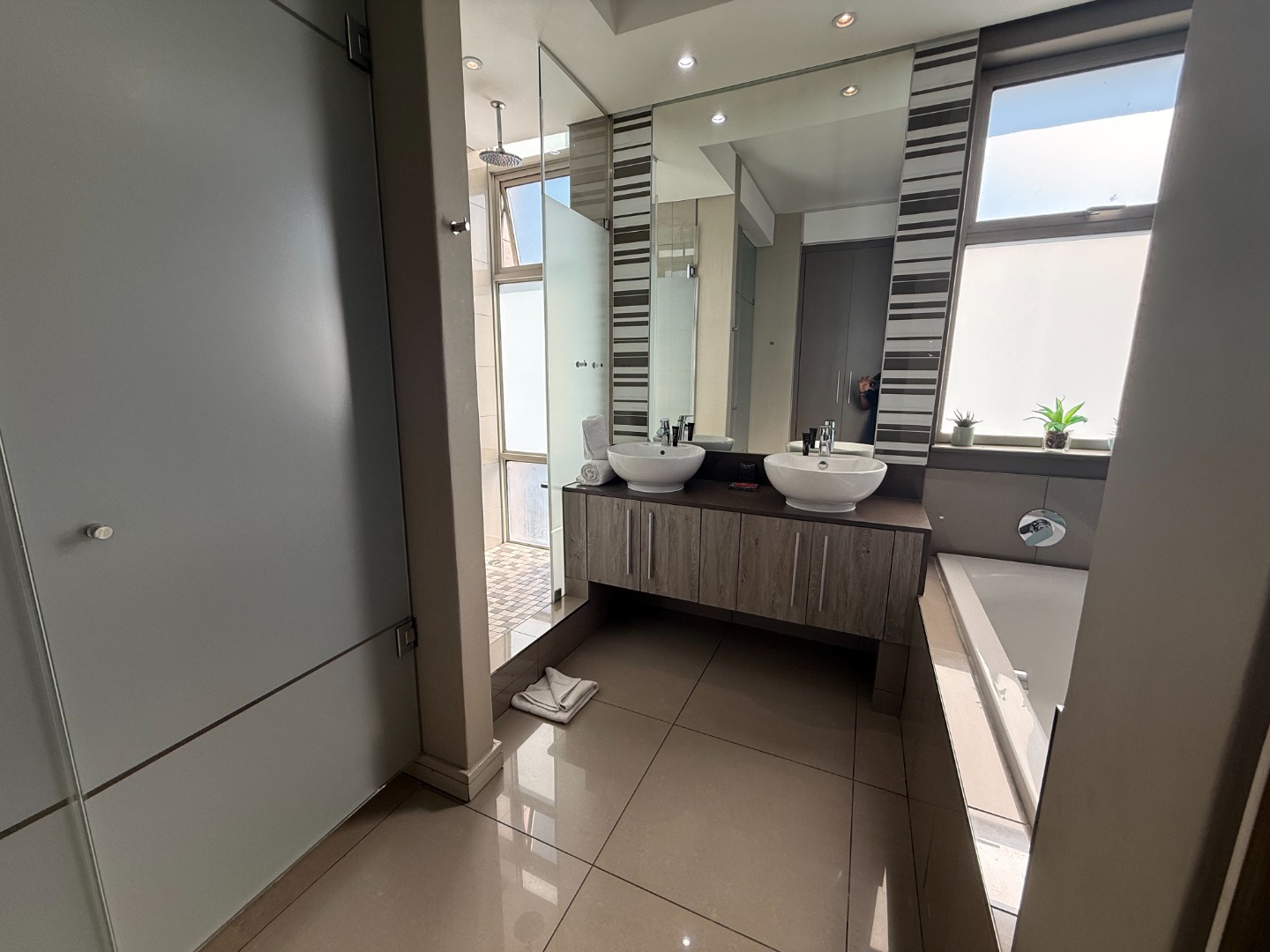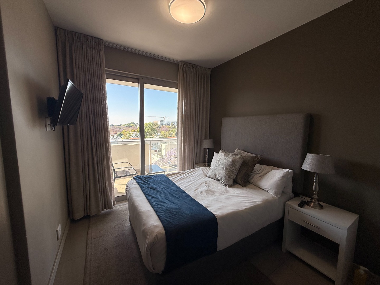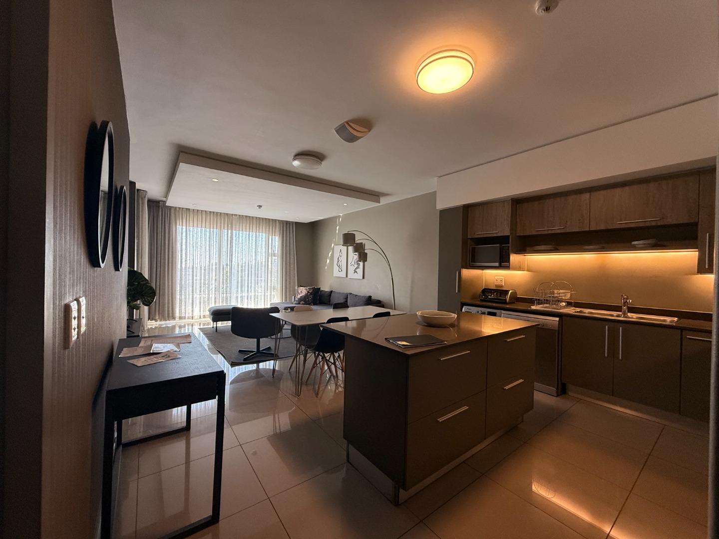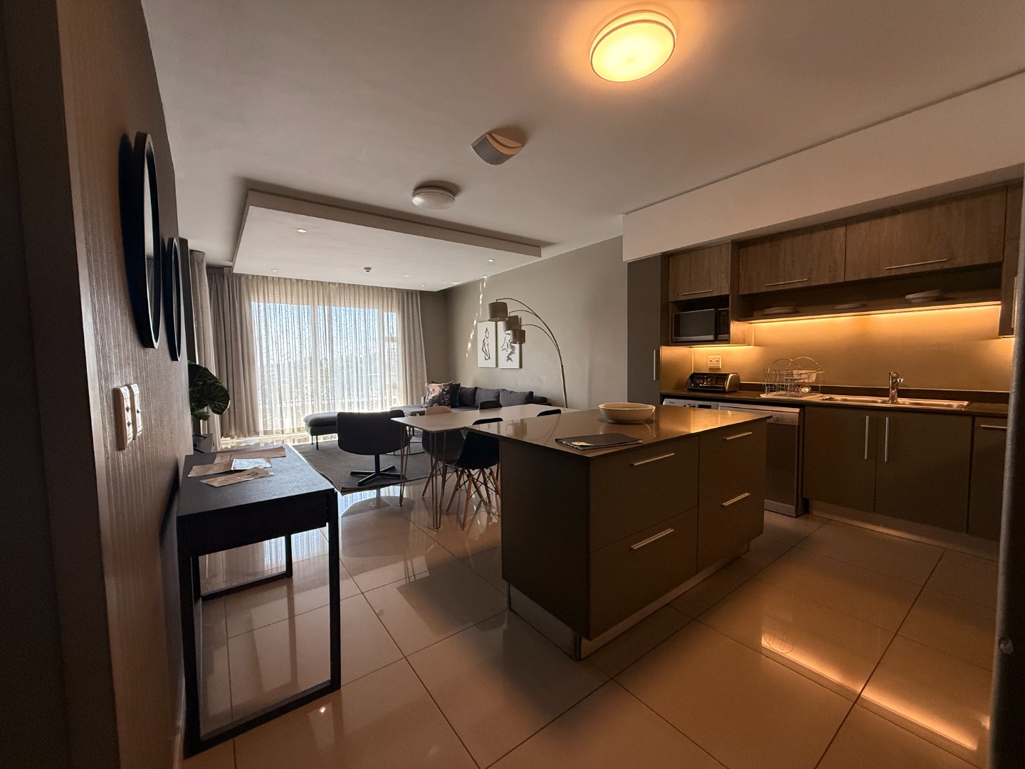 Situated on an upper floor, the apartment offers breathtaking views of the Johannesburg skyline, flooding the living spaces with natural light. The open-plan layout features a modern kitchen equipped with high-end appliances, sleek cabinetry, and elegant finishes – ideal for entertaining or relaxing in style.