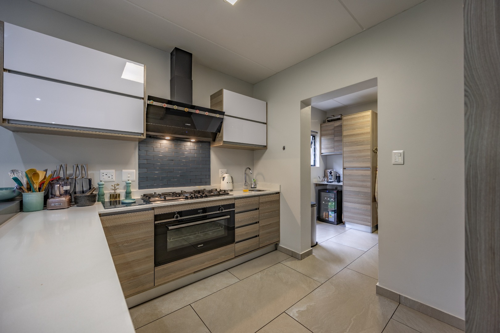 • Gourmet Kitchen: Featuring sleek quartz countertops, two-tone cabinetry, gas hob, electric oven, extractor, breakfast bar, walk-in pantry, and a separate scullery/laundry area.