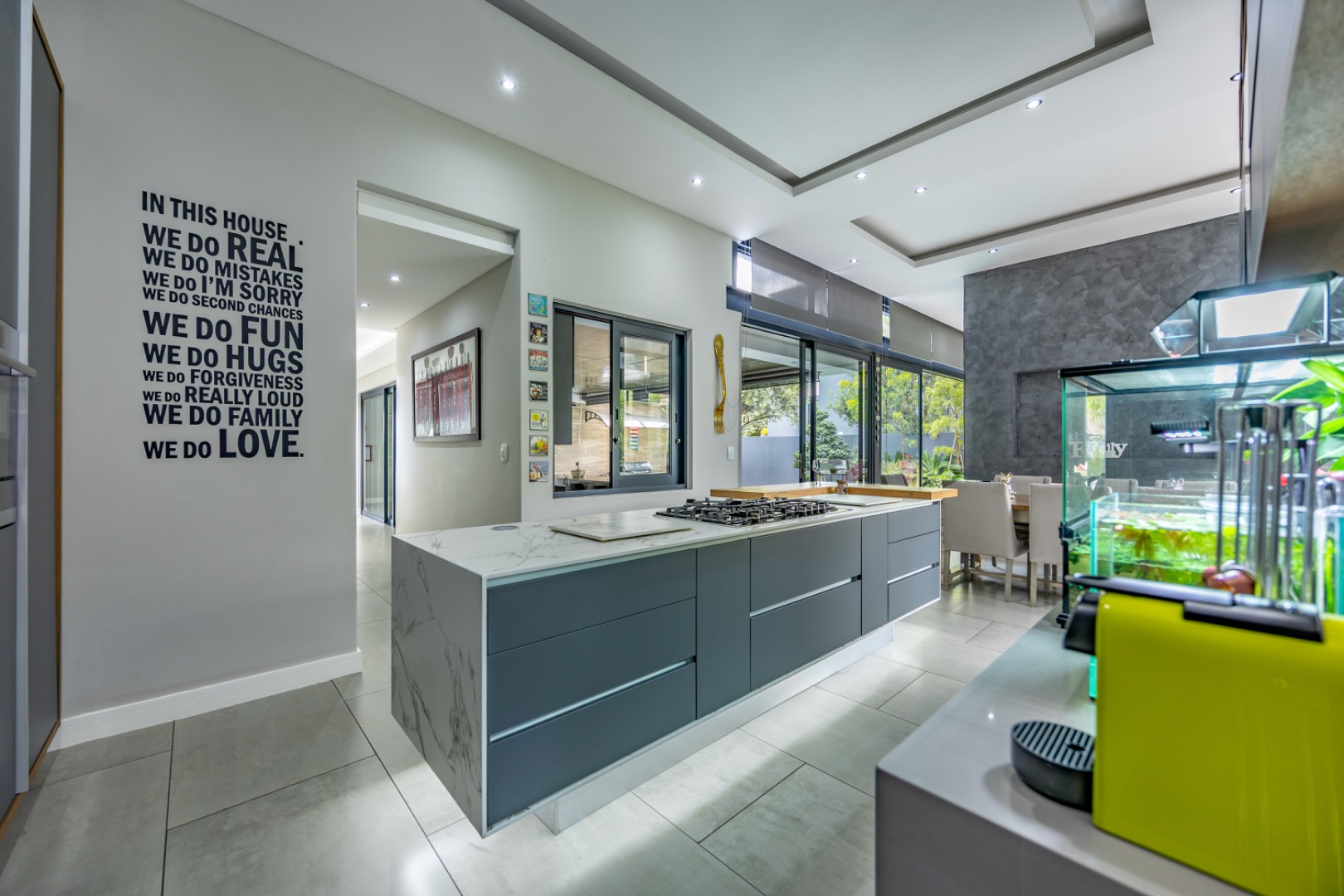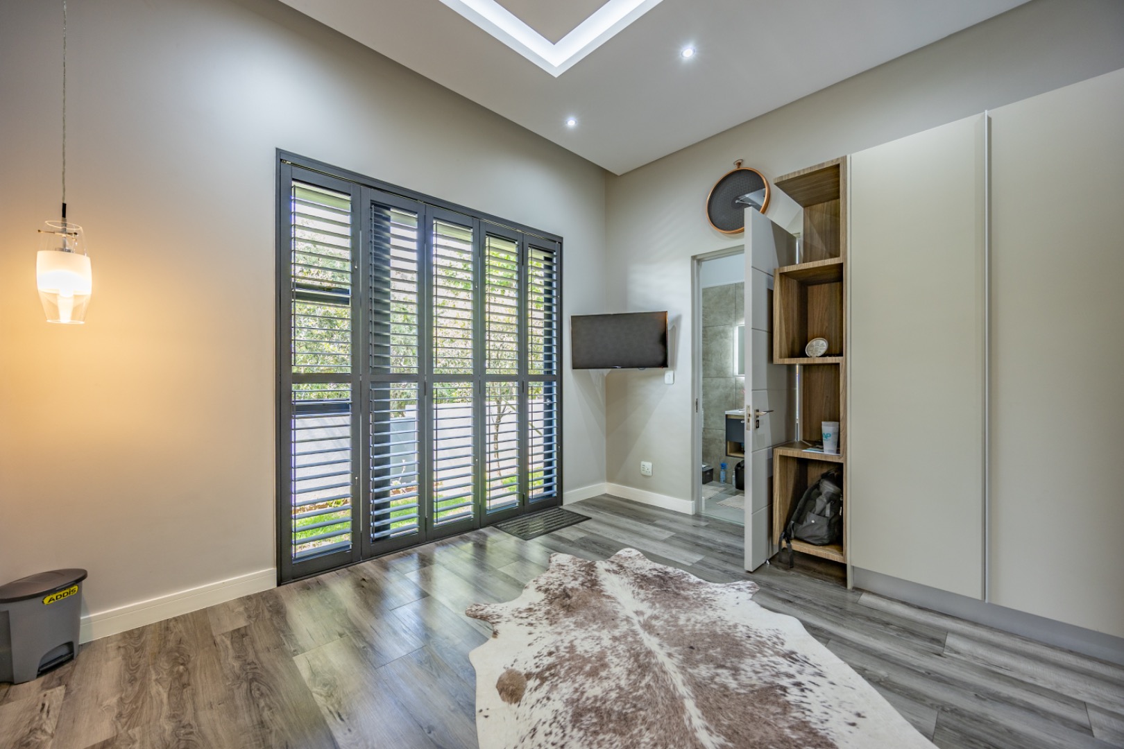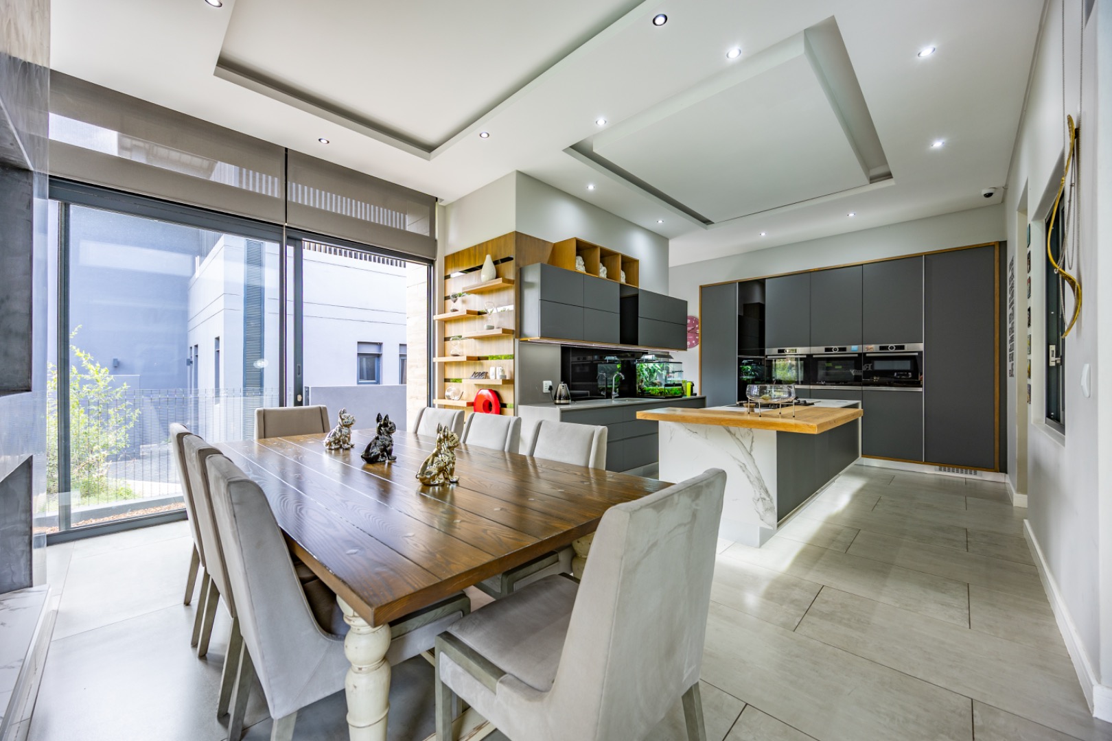 Discover an exceptional residential offering within the prestigious Steyn City, Midrand, South Africa. This meticulously designed property, spanning a generous 326.00 sqm on a 652.00 sqm erf, epitomises contemporary estate living. The residence features an expansive open-plan layout, seamlessly integrating the lounge and two distinct dining areas, all bathed in abundant natural light from extensive floor-to-ceiling windows and sliding glass doors. Modern finishes, high ceilings, recessed lighting, and air conditioning enhance the sophisticated ambiance, creating an ideal environment for both relaxation and entertaining. The heart of this home is its sleek, modern kitchen, equipped with integrated appliances, dark grey cabinetry, and elegant marble-look countertops. A prominent island with a gas hob serves as a focal point, complemented by a practical pantry and a unique built-in aquarium. The seamless flow extends to the outdoor entertainment area, featuring a private swimming pool, a well-maintained garden, a patio, and a built-in braai, perfect for al fresco dining and enjoying the scenic views. Accommodation comprises three well-appointed bedrooms and three bathrooms, including two luxurious ensuites and a convenient guest toilet, ensuring privacy and comfort for all residents. The property is offered fully furnished, providing immediate occupancy with refined style. Practical amenities include a dedicated laundry area, two garages, and four parking spaces, alongside a driveway for additional convenience. Residents benefit from the comprehensive security infrastructure of this esteemed security estate, featuring 24-hour security, CCTV surveillance, an access gate, security post, and an alarm system. Furthermore, the property boasts advanced sustainability features, including solar panels, a battery inverter, and a solar geyser, promoting energy efficiency and reduced utility costs. Fibre connectivity ensures high-speed internet access. Steyn City offers an unparalleled lifestyle, renowned as a premier golf estate, eco estate, and wildlife estate. Residents have access to world-class amenities such as a golf course and club house, fostering a vibrant country living experience. This property represents a distinguished opportunity for discerning buyers seeking luxury, security, and an enriched lifestyle. Key Features: * Modern Open-Plan Living with High Ceilings * Sleek Kitchen with Integrated Appliances and Gas Hob * Three Bedrooms, Three Bathrooms (Two Ensuites) * Private Pool, Patio, Garden, and Built-in Braai * Comprehensive 24-Hour Security Estate * Solar Panels, Battery Inverter, and Solar Geyser * Fibre Connectivity and Air Conditioning * Furnished Property with Two Garages and Four Parking Spaces * Access to Golf Course and Club House Amenities * Scenic Views within a Premier Eco and Wildlife Estate