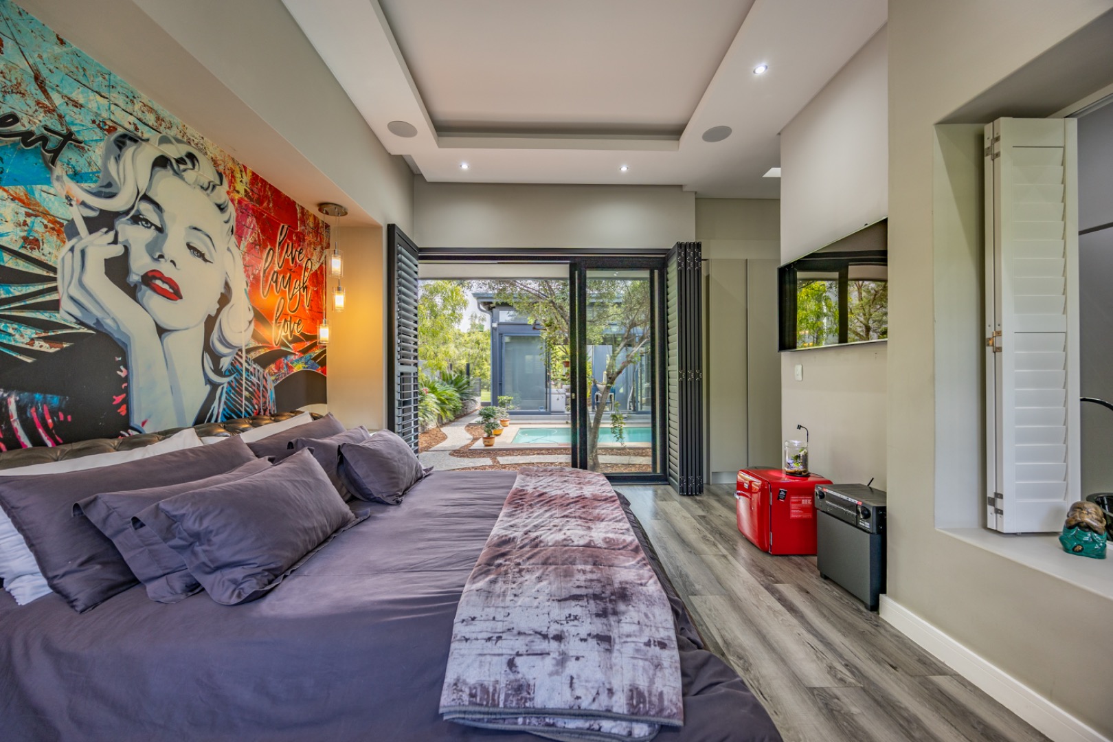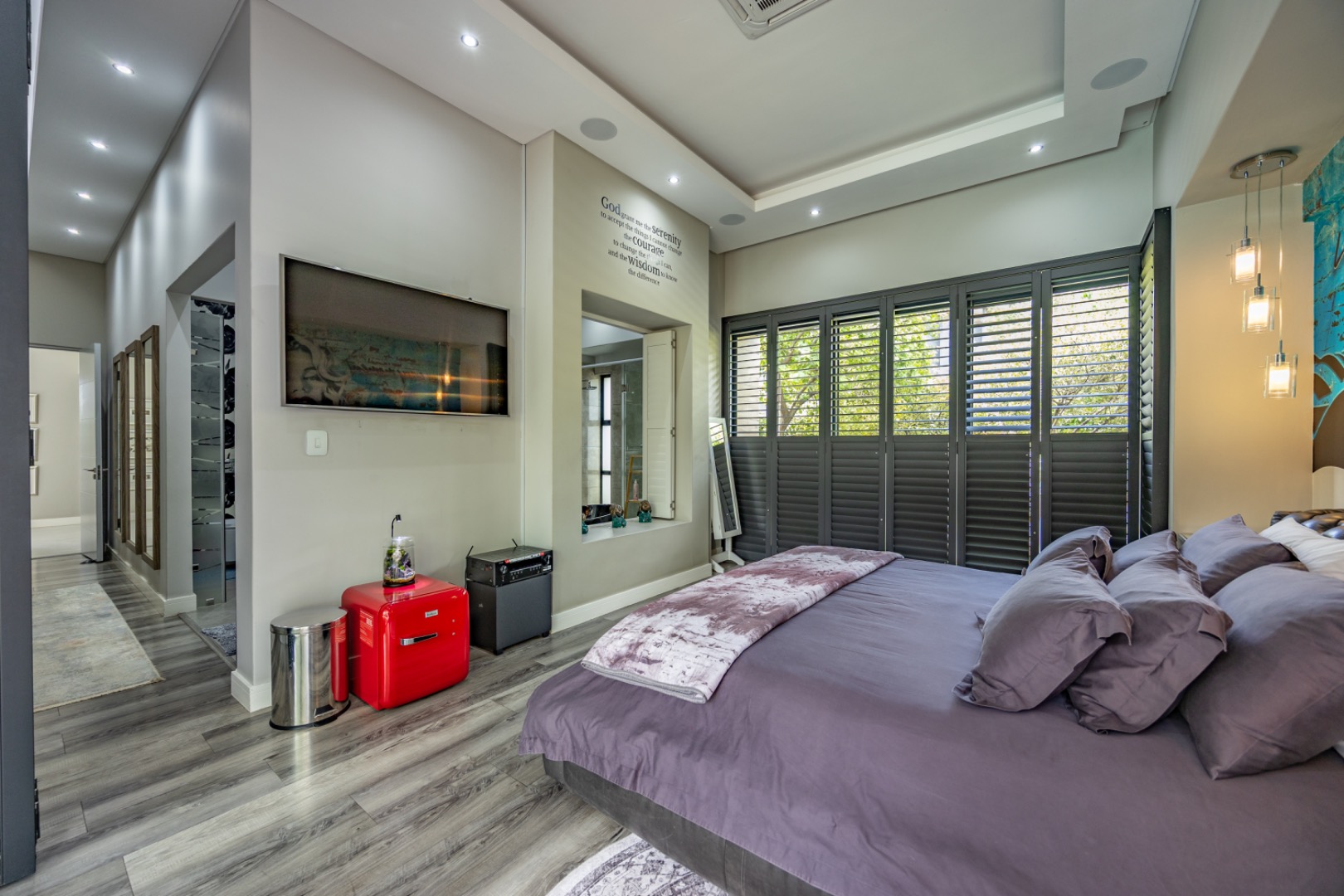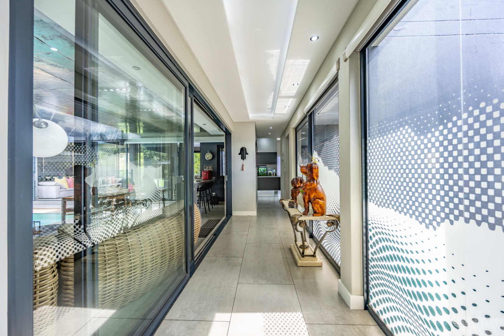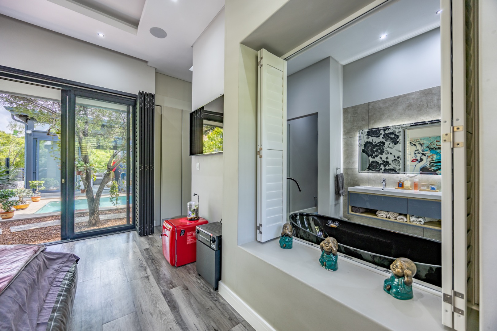 Discover an exceptional residential offering within the prestigious Steyn City, Midrand, South Africa. This meticulously designed property, spanning a generous 326.00 sqm on a 652.00 sqm erf, epitomises contemporary estate living. The residence features an expansive open-plan layout, seamlessly integrating the lounge and two distinct dining areas, all bathed in abundant natural light from extensive floor-to-ceiling windows and sliding glass doors. Modern finishes, high ceilings, recessed lighting, and air conditioning enhance the sophisticated ambiance, creating an ideal environment for both relaxation and entertaining. The heart of this home is its sleek, modern kitchen, equipped with integrated appliances, dark grey cabinetry, and elegant marble-look countertops. A prominent island with a gas hob serves as a focal point, complemented by a practical pantry and a unique built-in aquarium. The seamless flow extends to the outdoor entertainment area, featuring a private swimming pool, a well-maintained garden, a patio, and a built-in braai, perfect for al fresco dining and enjoying the scenic views. Accommodation comprises three well-appointed bedrooms and three bathrooms, including two luxurious ensuites and a convenient guest toilet, ensuring privacy and comfort for all residents. The property is offered fully furnished, providing immediate occupancy with refined style. Practical amenities include a dedicated laundry area, two garages, and four parking spaces, alongside a driveway for additional convenience. Residents benefit from the comprehensive security infrastructure of this esteemed security estate, featuring 24-hour security, CCTV surveillance, an access gate, security post, and an alarm system. Furthermore, the property boasts advanced sustainability features, including solar panels, a battery inverter, and a solar geyser, promoting energy efficiency and reduced utility costs. Fibre connectivity ensures high-speed internet access. Steyn City offers an unparalleled lifestyle, renowned as a premier golf estate, eco estate, and wildlife estate. Residents have access to world-class amenities such as a golf course and club house, fostering a vibrant country living experience. This property represents a distinguished opportunity for discerning buyers seeking luxury, security, and an enriched lifestyle. Key Features: * Modern Open-Plan Living with High Ceilings * Sleek Kitchen with Integrated Appliances and Gas Hob * Three Bedrooms, Three Bathrooms (Two Ensuites) * Private Pool, Patio, Garden, and Built-in Braai * Comprehensive 24-Hour Security Estate * Solar Panels, Battery Inverter, and Solar Geyser * Fibre Connectivity and Air Conditioning * Furnished Property with Two Garages and Four Parking Spaces * Access to Golf Course and Club House Amenities * Scenic Views within a Premier Eco and Wildlife Estate