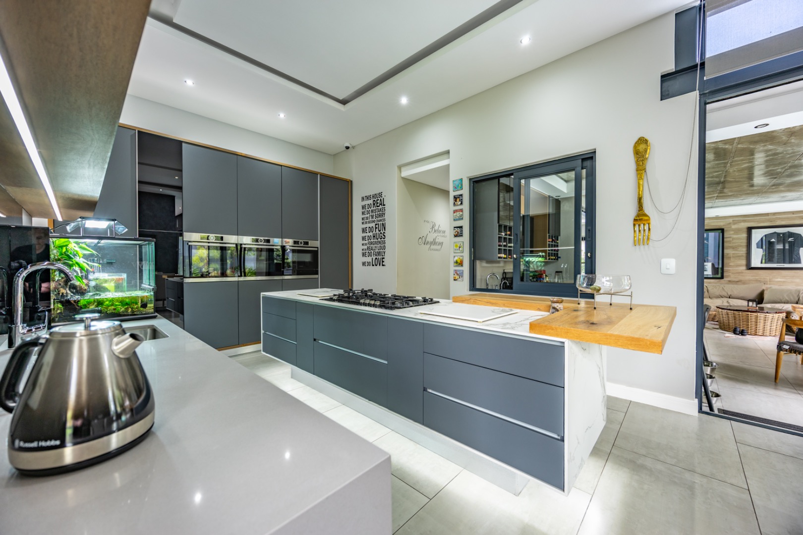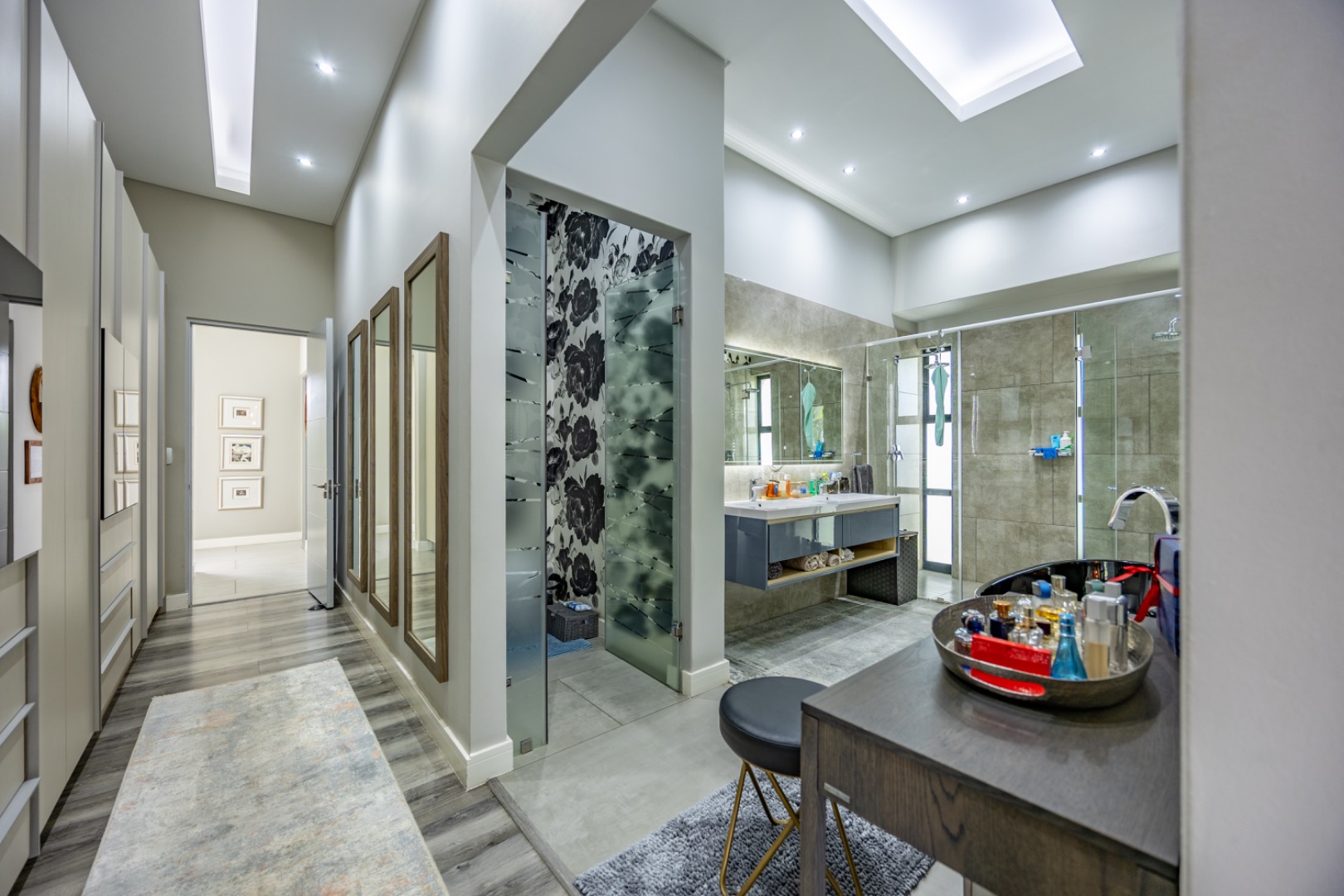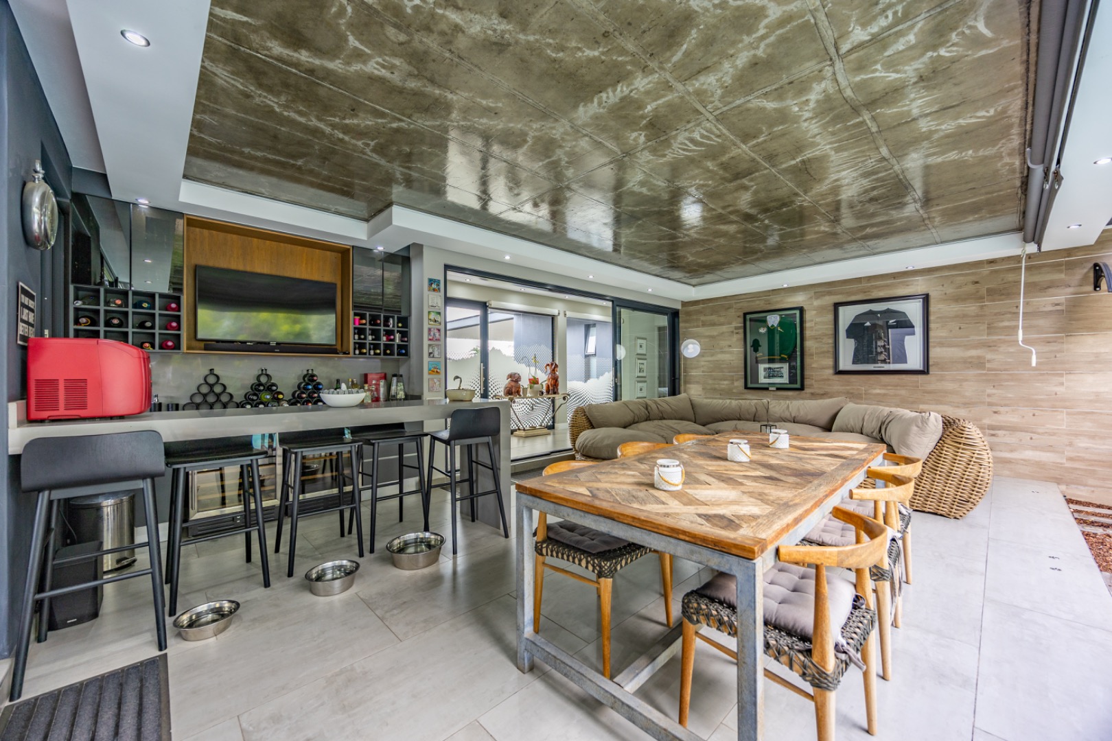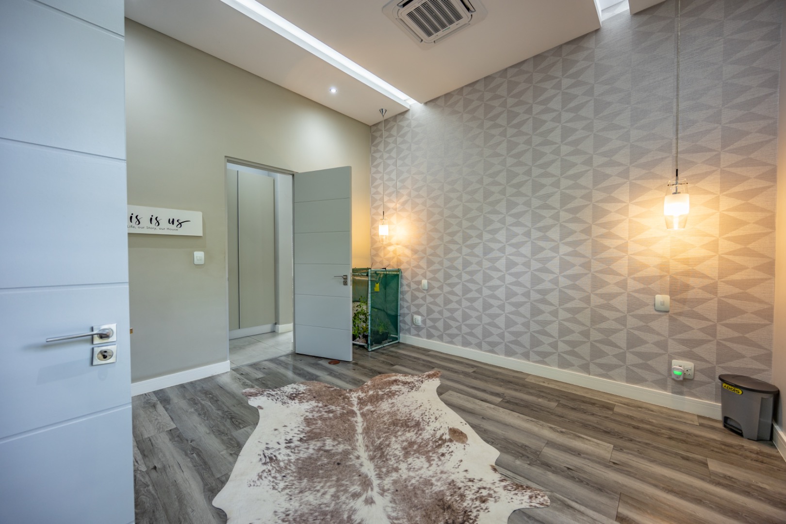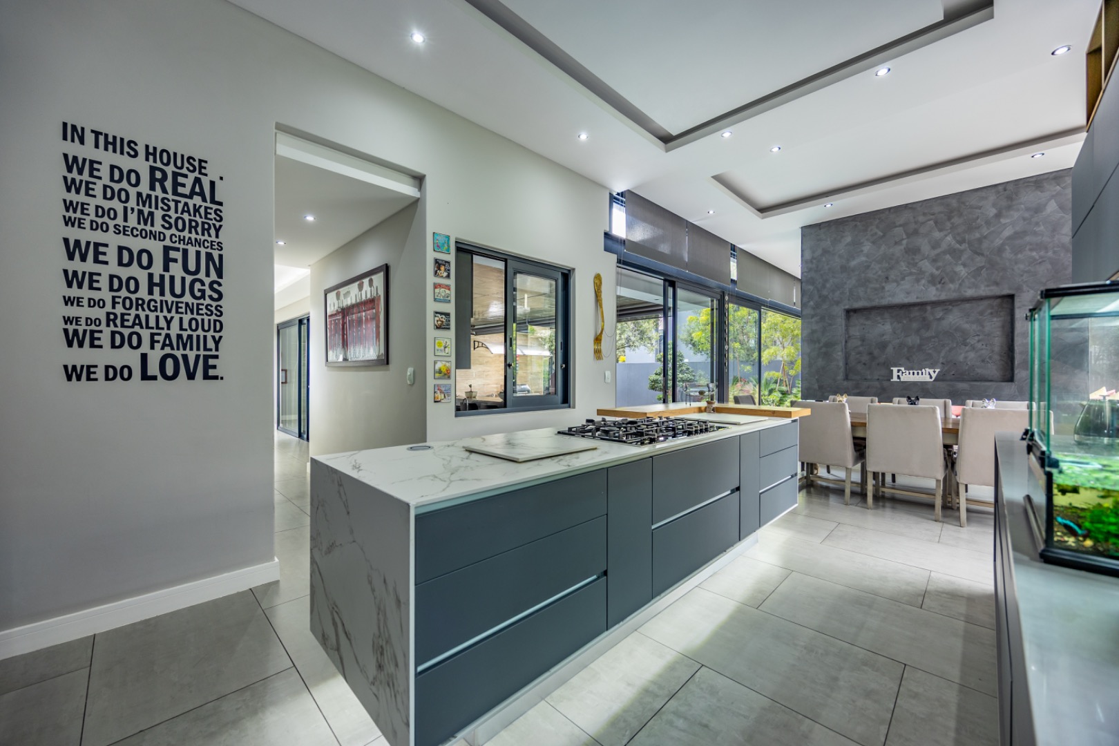 Discover an exceptional residential offering within the prestigious Steyn City, Midrand, South Africa. This meticulously designed property, spanning a generous 326.00 sqm on a 652.00 sqm erf, epitomises contemporary estate living. The residence features an expansive open-plan layout, seamlessly integrating the lounge and two distinct dining areas, all bathed in abundant natural light from extensive floor-to-ceiling windows and sliding glass doors. Modern finishes, high ceilings, recessed lighting, and air conditioning enhance the sophisticated ambiance, creating an ideal environment for both relaxation and entertaining. The heart of this home is its sleek, modern kitchen, equipped with integrated appliances, dark grey cabinetry, and elegant marble-look countertops. A prominent island with a gas hob serves as a focal point, complemented by a practical pantry and a unique built-in aquarium. The seamless flow extends to the outdoor entertainment area, featuring a private swimming pool, a well-maintained garden, a patio, and a built-in braai, perfect for al fresco dining and enjoying the scenic views. Accommodation comprises three well-appointed bedrooms and three bathrooms, including two luxurious ensuites and a convenient guest toilet, ensuring privacy and comfort for all residents. The property is offered fully furnished, providing immediate occupancy with refined style. Practical amenities include a dedicated laundry area, two garages, and four parking spaces, alongside a driveway for additional convenience. Residents benefit from the comprehensive security infrastructure of this esteemed security estate, featuring 24-hour security, CCTV surveillance, an access gate, security post, and an alarm system. Furthermore, the property boasts advanced sustainability features, including solar panels, a battery inverter, and a solar geyser, promoting energy efficiency and reduced utility costs. Fibre connectivity ensures high-speed internet access. Steyn City offers an unparalleled lifestyle, renowned as a premier golf estate, eco estate, and wildlife estate. Residents have access to world-class amenities such as a golf course and club house, fostering a vibrant country living experience. This property represents a distinguished opportunity for discerning buyers seeking luxury, security, and an enriched lifestyle. Key Features: * Modern Open-Plan Living with High Ceilings * Sleek Kitchen with Integrated Appliances and Gas Hob * Three Bedrooms, Three Bathrooms (Two Ensuites) * Private Pool, Patio, Garden, and Built-in Braai * Comprehensive 24-Hour Security Estate * Solar Panels, Battery Inverter, and Solar Geyser * Fibre Connectivity and Air Conditioning * Furnished Property with Two Garages and Four Parking Spaces * Access to Golf Course and Club House Amenities * Scenic Views within a Premier Eco and Wildlife Estate