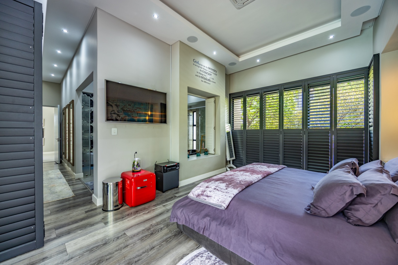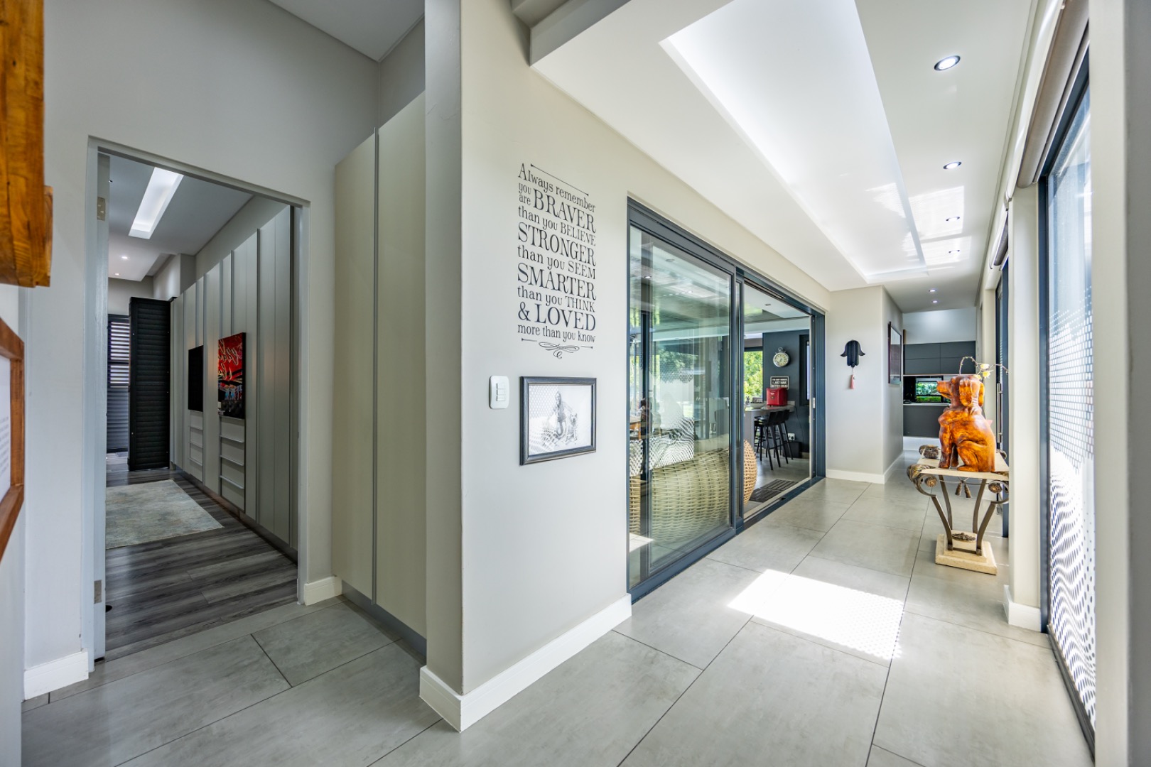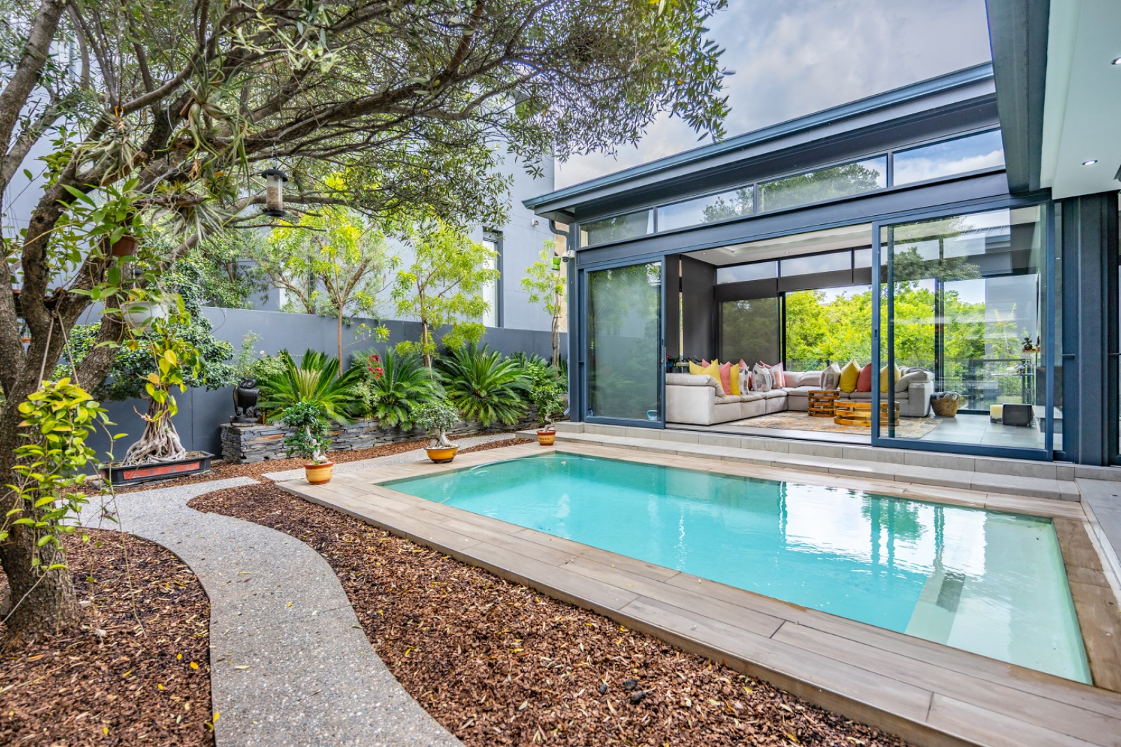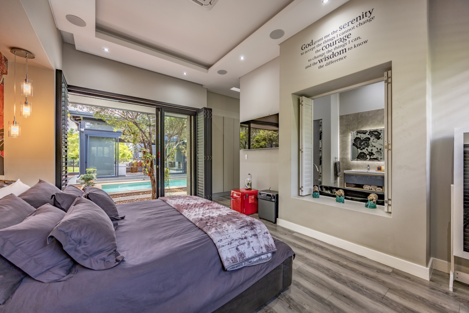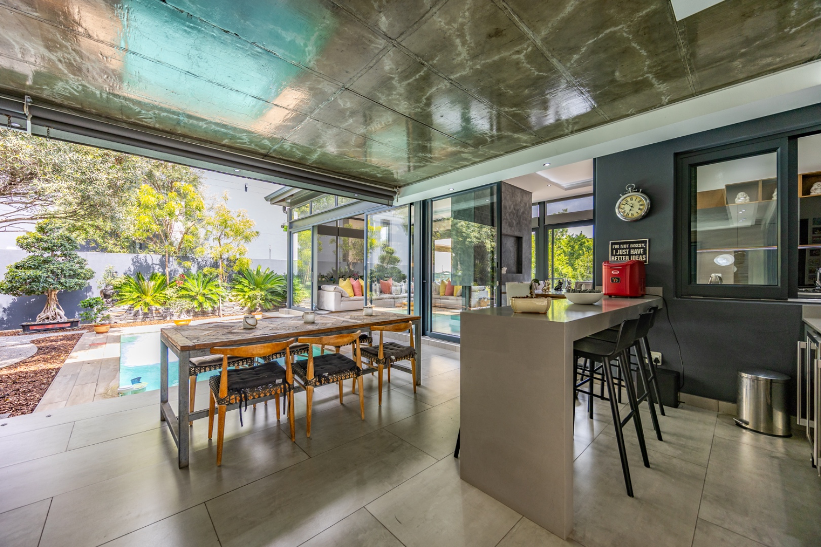 Discover an exceptional residential offering within the prestigious Steyn City, Midrand, South Africa. This meticulously designed property, spanning a generous 326.00 sqm on a 652.00 sqm erf, epitomises contemporary estate living. The residence features an expansive open-plan layout, seamlessly integrating the lounge and two distinct dining areas, all bathed in abundant natural light from extensive floor-to-ceiling windows and sliding glass doors. Modern finishes, high ceilings, recessed lighting, and air conditioning enhance the sophisticated ambiance, creating an ideal environment for both relaxation and entertaining. The heart of this home is its sleek, modern kitchen, equipped with integrated appliances, dark grey cabinetry, and elegant marble-look countertops. A prominent island with a gas hob serves as a focal point, complemented by a practical pantry and a unique built-in aquarium. The seamless flow extends to the outdoor entertainment area, featuring a private swimming pool, a well-maintained garden, a patio, and a built-in braai, perfect for al fresco dining and enjoying the scenic views. Accommodation comprises three well-appointed bedrooms and three bathrooms, including two luxurious ensuites and a convenient guest toilet, ensuring privacy and comfort for all residents. The property is offered fully furnished, providing immediate occupancy with refined style. Practical amenities include a dedicated laundry area, two garages, and four parking spaces, alongside a driveway for additional convenience. Residents benefit from the comprehensive security infrastructure of this esteemed security estate, featuring 24-hour security, CCTV surveillance, an access gate, security post, and an alarm system. Furthermore, the property boasts advanced sustainability features, including solar panels, a battery inverter, and a solar geyser, promoting energy efficiency and reduced utility costs. Fibre connectivity ensures high-speed internet access. Steyn City offers an unparalleled lifestyle, renowned as a premier golf estate, eco estate, and wildlife estate. Residents have access to world-class amenities such as a golf course and club house, fostering a vibrant country living experience. This property represents a distinguished opportunity for discerning buyers seeking luxury, security, and an enriched lifestyle. Key Features: * Modern Open-Plan Living with High Ceilings * Sleek Kitchen with Integrated Appliances and Gas Hob * Three Bedrooms, Three Bathrooms (Two Ensuites) * Private Pool, Patio, Garden, and Built-in Braai * Comprehensive 24-Hour Security Estate * Solar Panels, Battery Inverter, and Solar Geyser * Fibre Connectivity and Air Conditioning * Furnished Property with Two Garages and Four Parking Spaces * Access to Golf Course and Club House Amenities * Scenic Views within a Premier Eco and Wildlife Estate