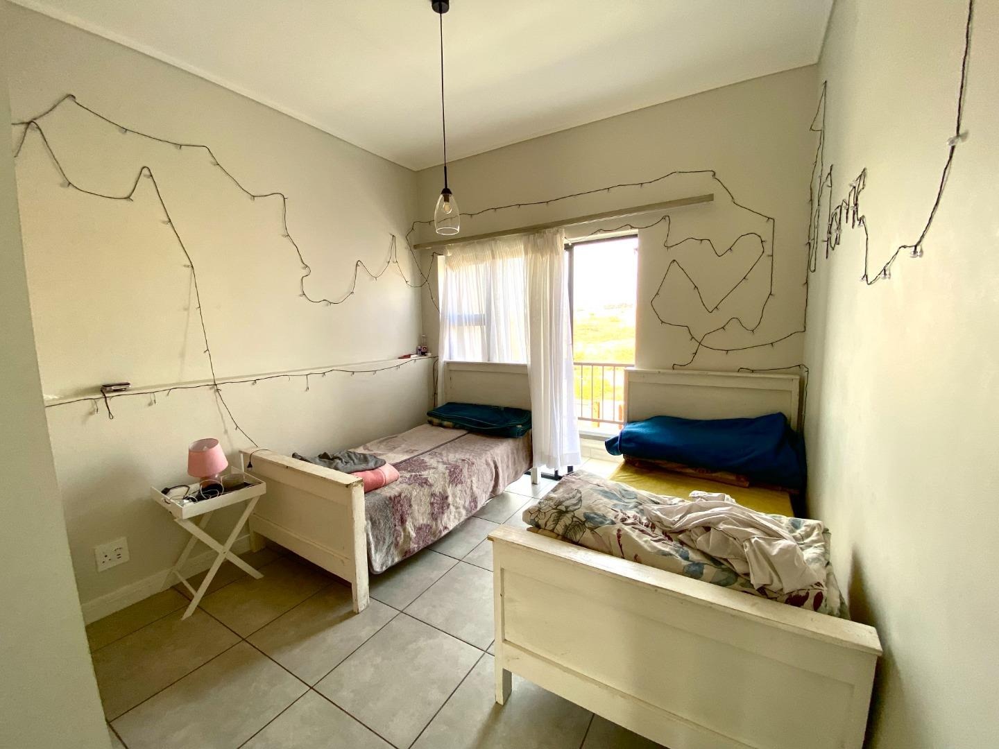 The two bedrooms are thoughtfully designed for comfort and versatility. The master suite boasts a queen-size bed with a ornate purple bedspread, built-in wooden wardrobes for generous storage, and direct access to a private balcony where you can sip your morning coffee while soaking in panoramic estate views. The second bedroom is ideal for children or guests, fitted with twin beds, whimsical string lights draped along the walls for a playful touch, and its own window offering plenty of daylight. Both rooms connect to the outdoors, enhancing that airy, top-floor feel.