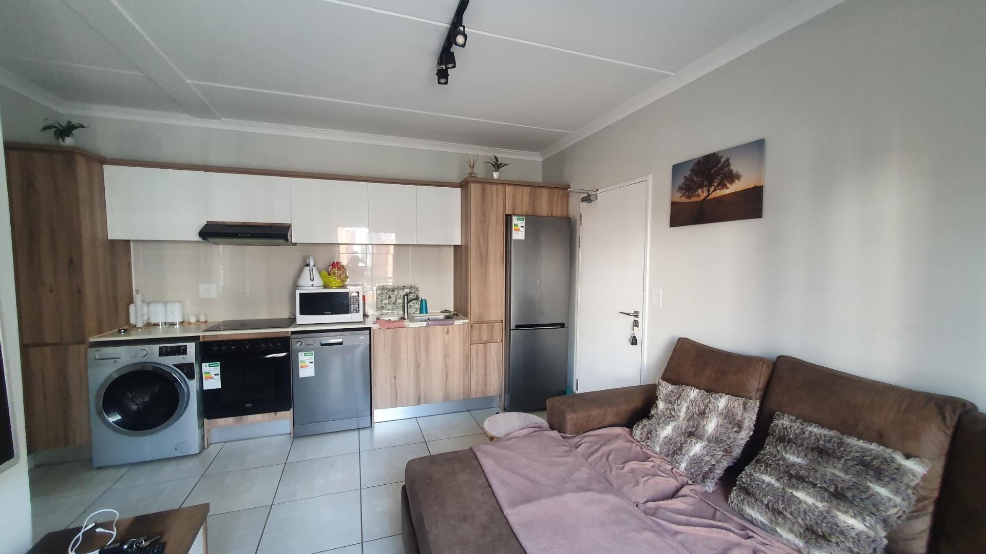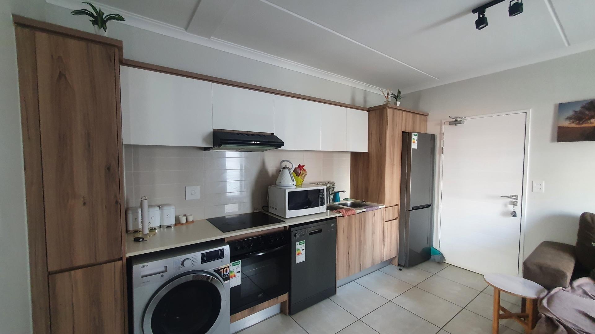 This modern one-bedroom apartment at Blyde offers a spacious and contemporary living space, ideal for individuals or couples. The unit features an open-plan kitchen and living area with tiled flooring and large windows that allow plenty of natural light. The kitchen comes fully equipped with essential appliances, including a refrigerator, oven, dishwasher, microwave, and washing machine, providing convenience for everyday use. The bathroom is well-appointed with a shower, toilet, and vanity, offering a clean and functional space.