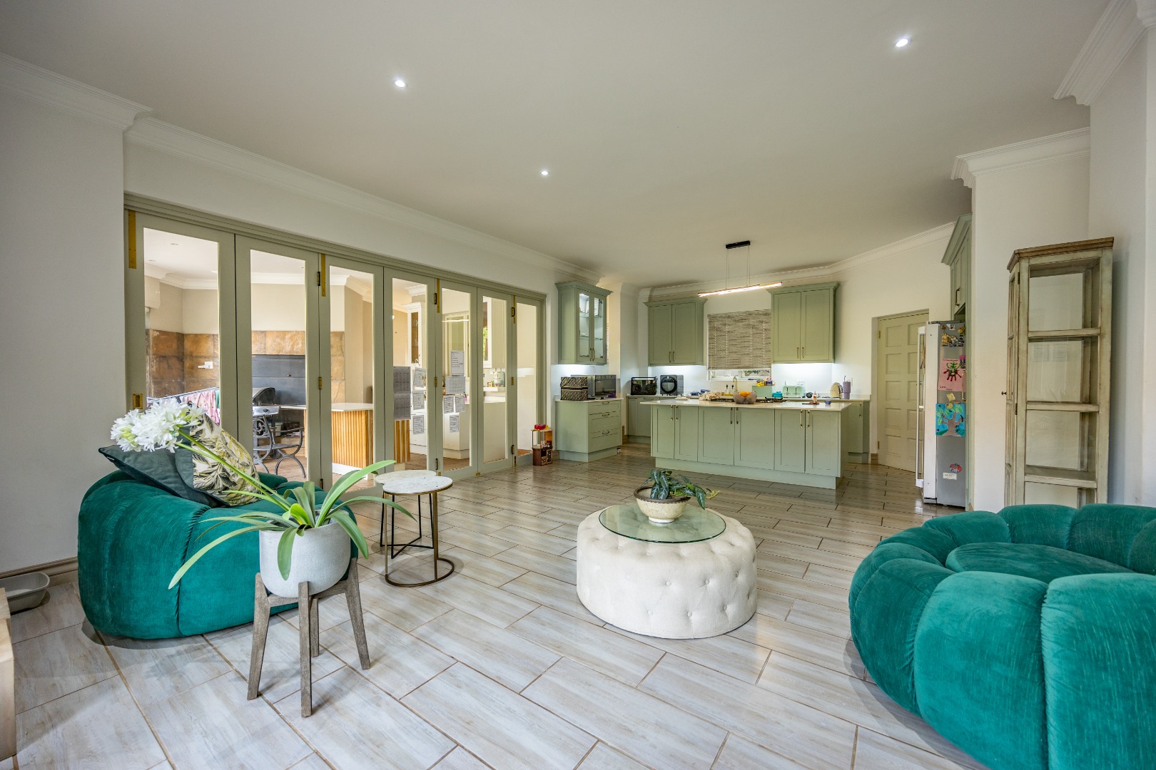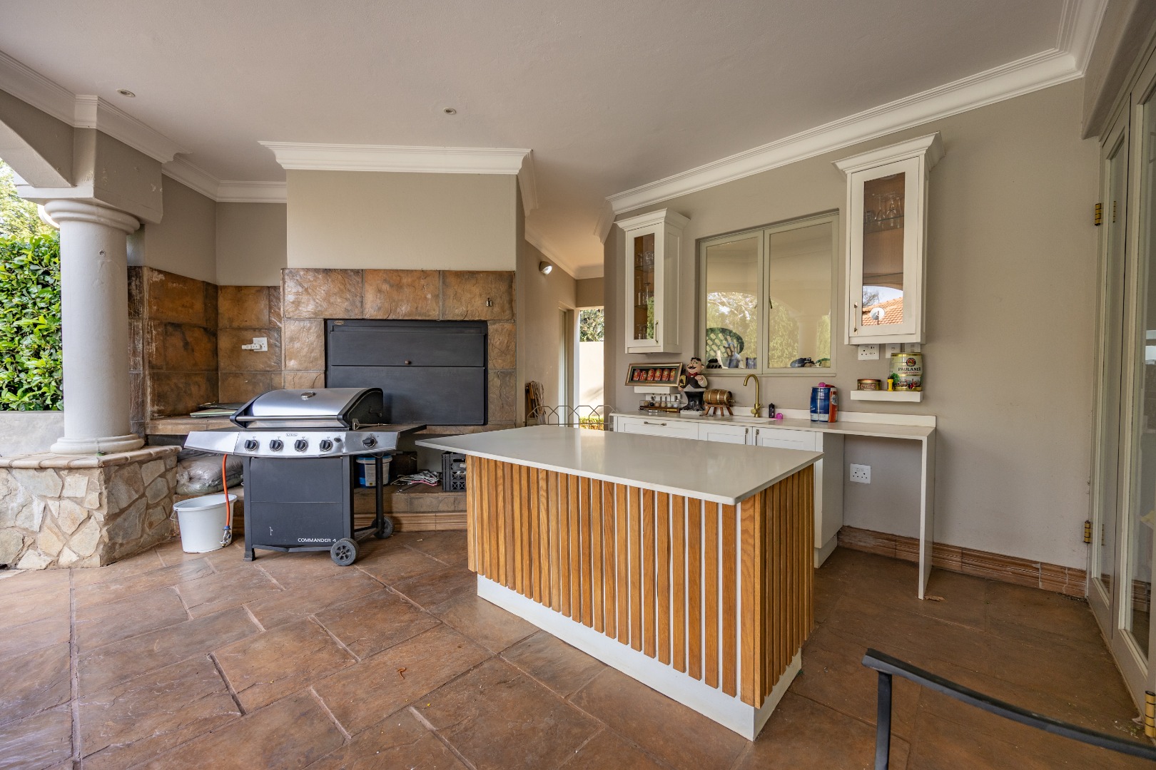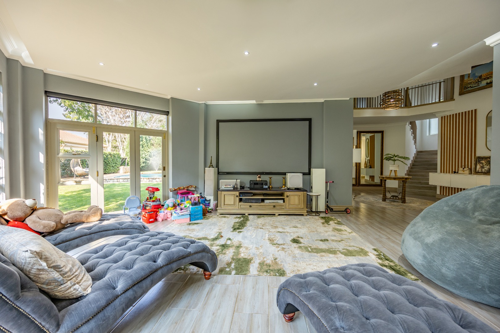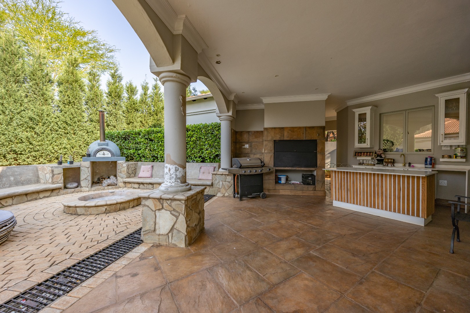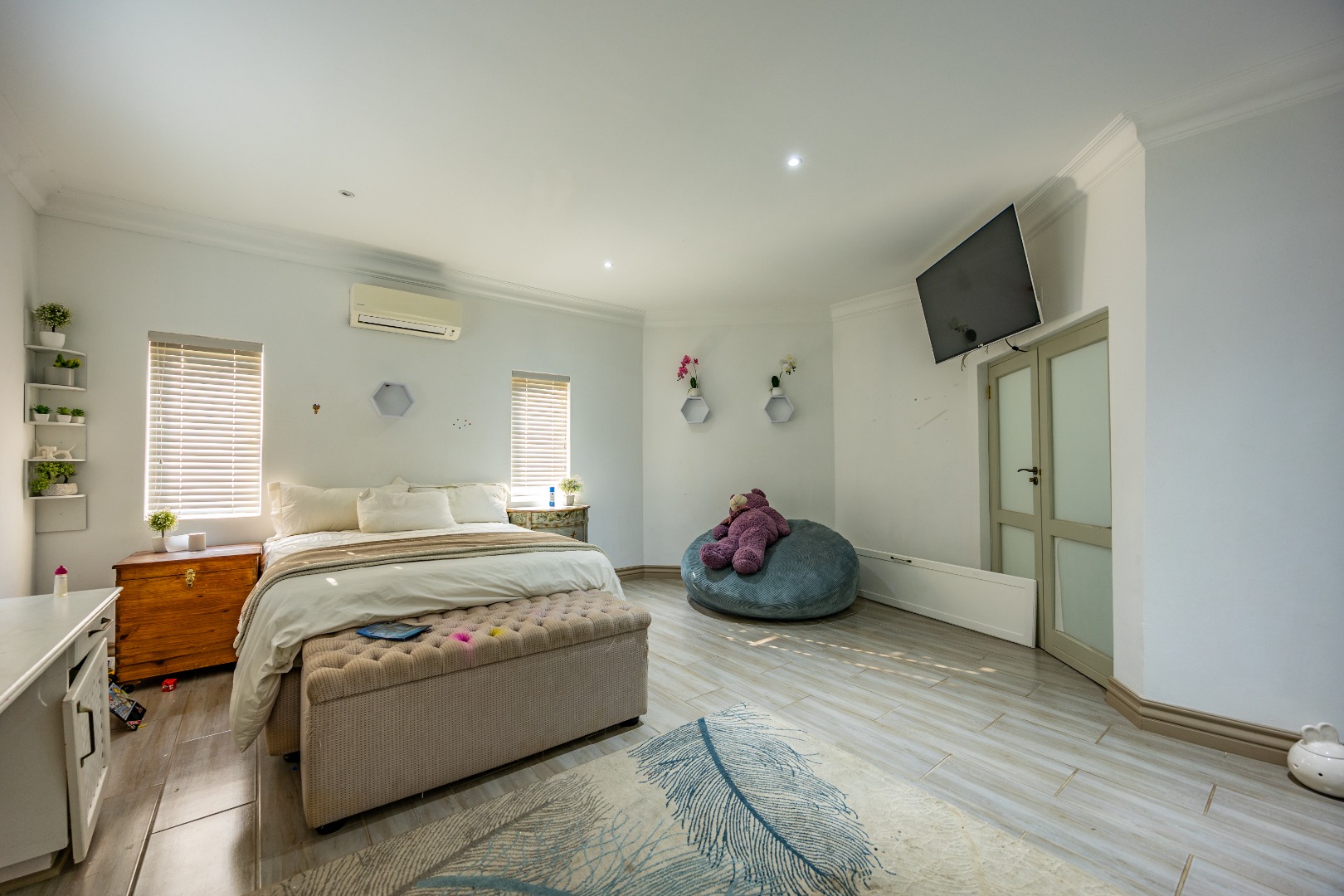 At the heart of the home lies the stylish kitchen, boasting a gas stove, pantry, and scullery with ample storage and workspace to inspire any culinary enthusiast. Upstairs, three spacious bedrooms each enjoy their own bathrooms, while a cosy pyjama lounge with a fireplace sets the scene for relaxed evenings. The luxurious master suite offers a full en-suite bathroom, generous closet space, and a private balcony overlooking the lush garden, accompanied by an adjoining dressing room to create his-and-hers wardrobes. Additional features such as automated garages, extra storage, and a separate entrance for trailers or additional vehicles further elevate the home’s practicality.