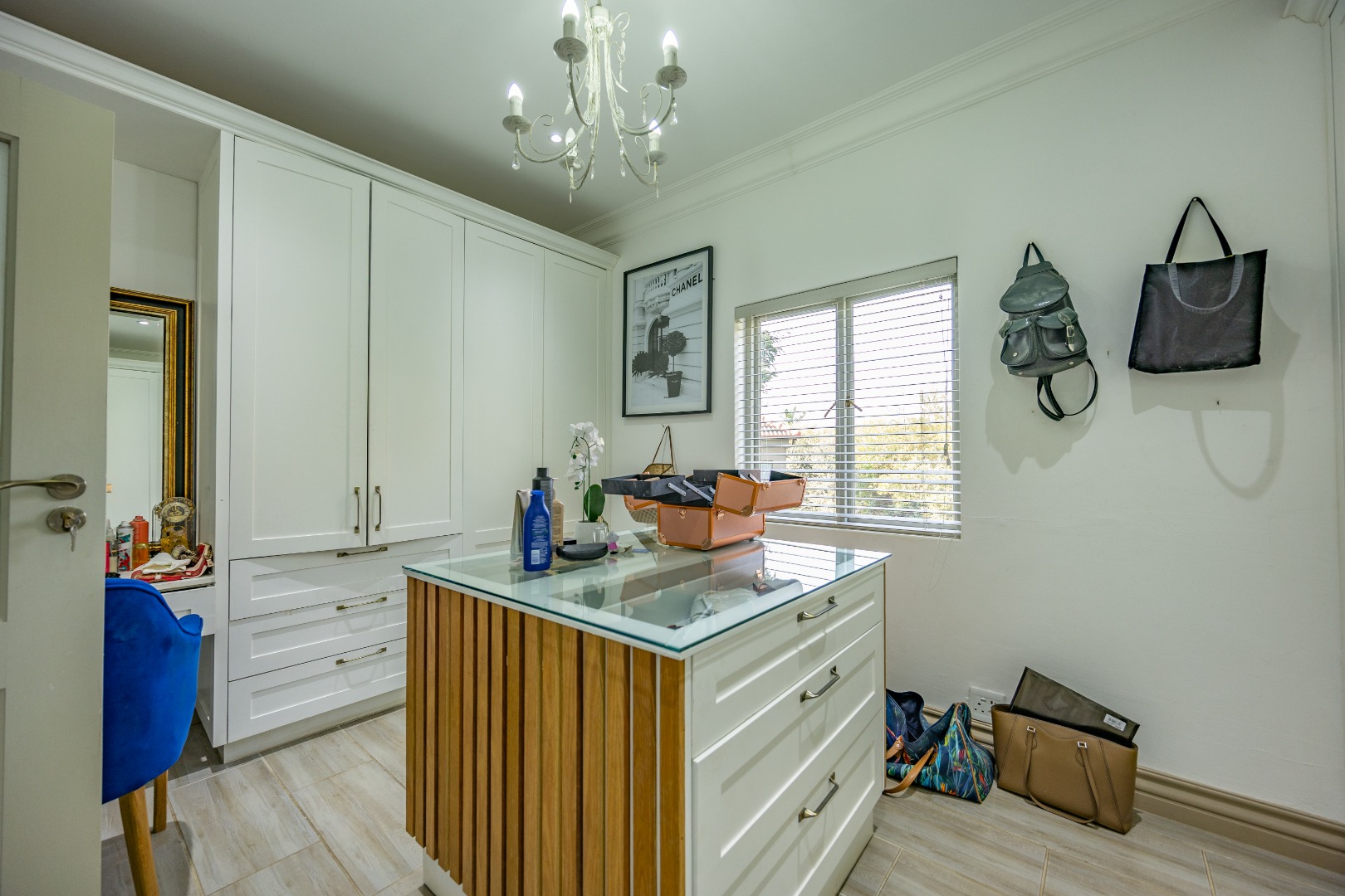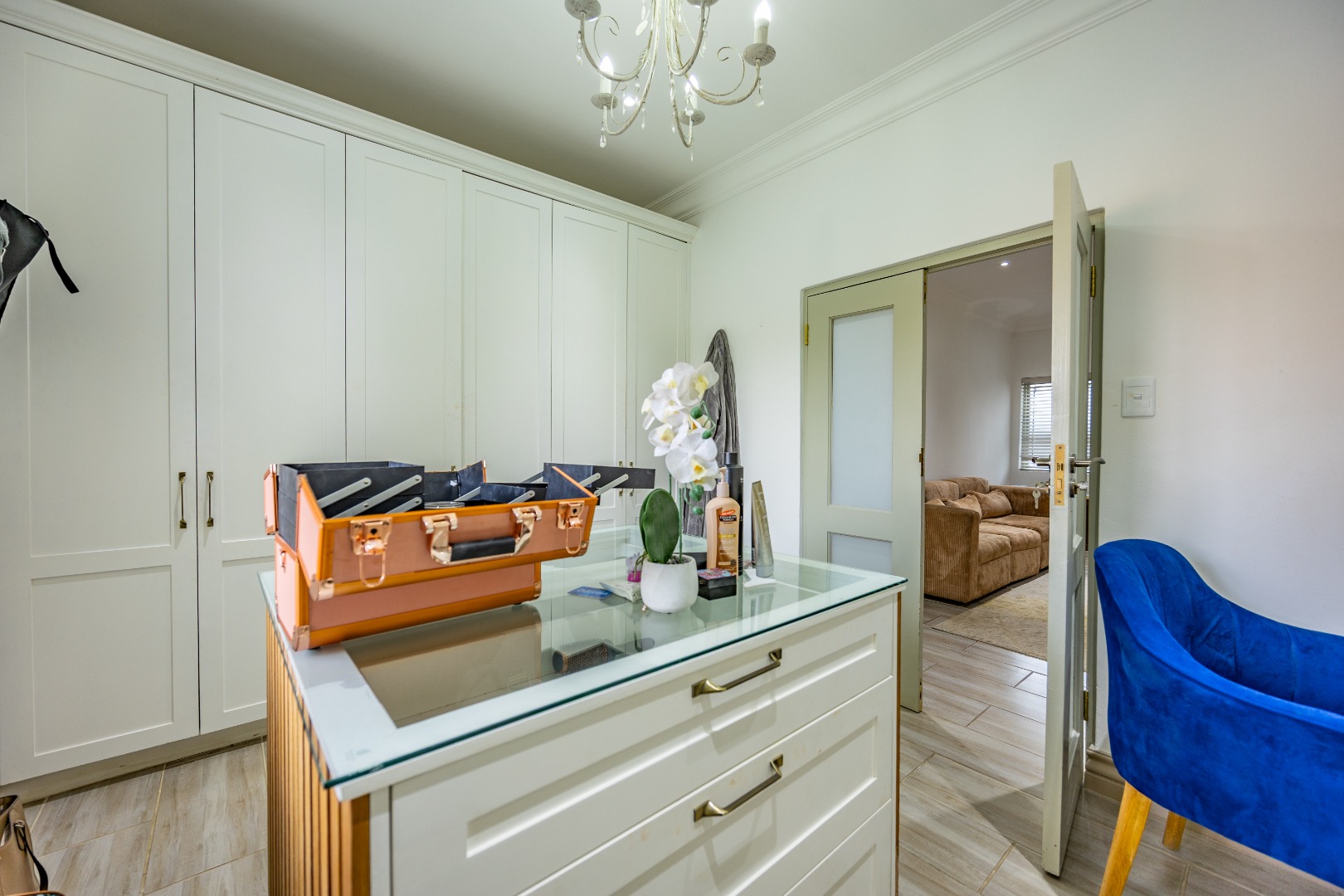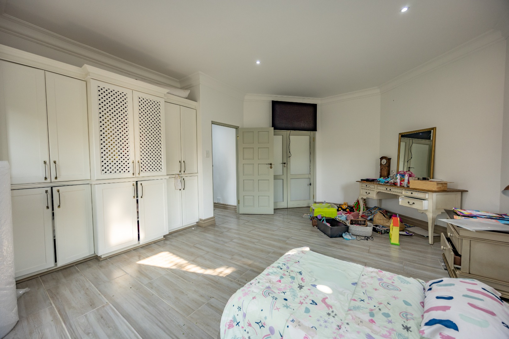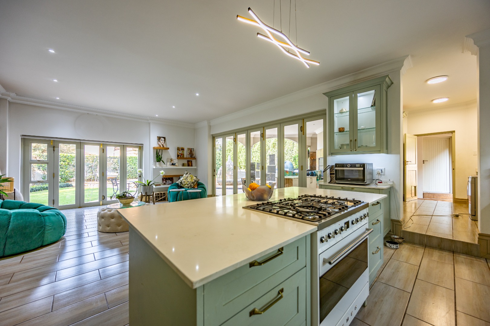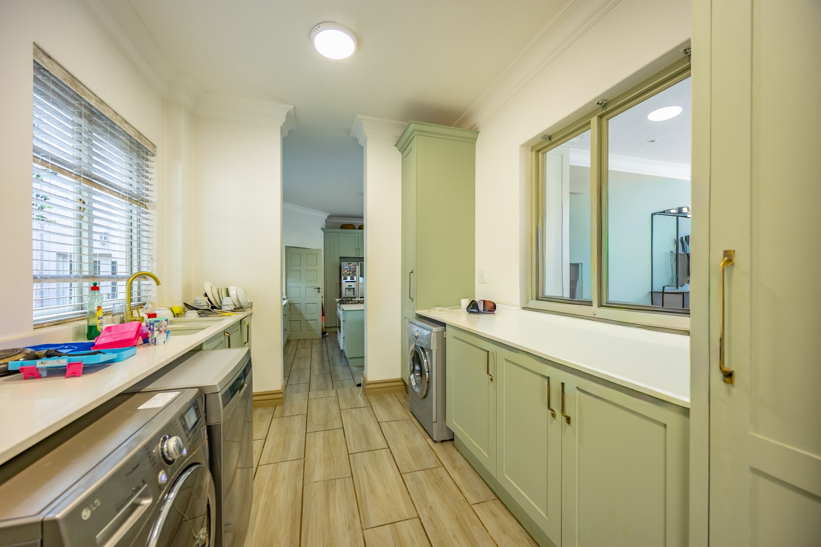 At the heart of the home lies the stylish kitchen, boasting a gas stove, pantry, and scullery with ample storage and workspace to inspire any culinary enthusiast. Upstairs, three spacious bedrooms each enjoy their own bathrooms, while a cosy pyjama lounge with a fireplace sets the scene for relaxed evenings. The luxurious master suite offers a full en-suite bathroom, generous closet space, and a private balcony overlooking the lush garden, accompanied by an adjoining dressing room to create his-and-hers wardrobes. Additional features such as automated garages, extra storage, and a separate entrance for trailers or additional vehicles further elevate the home’s practicality.