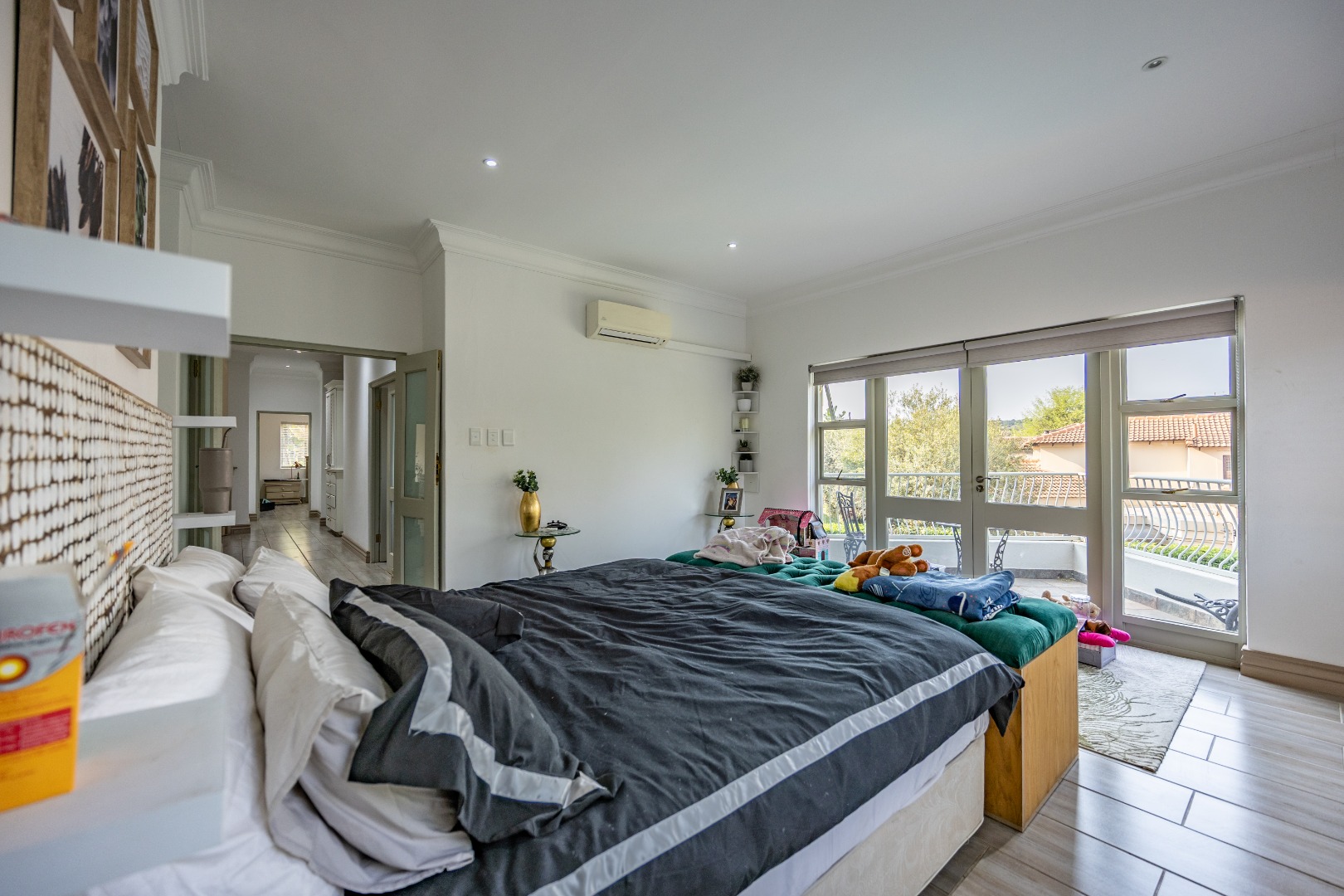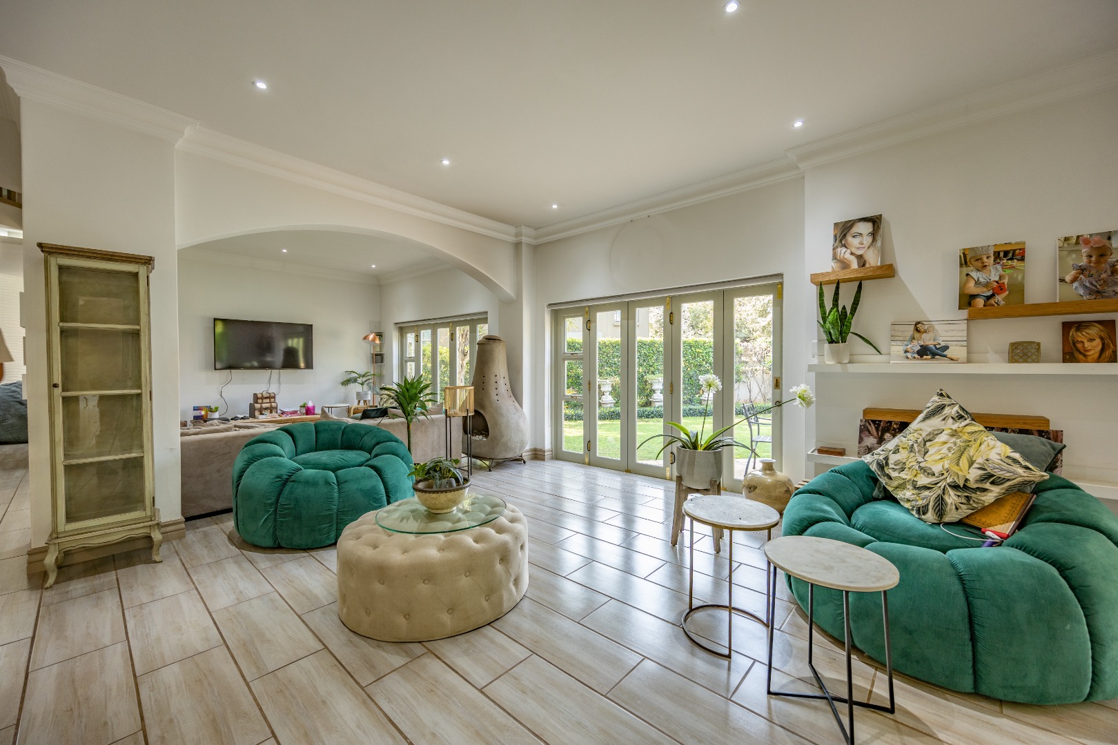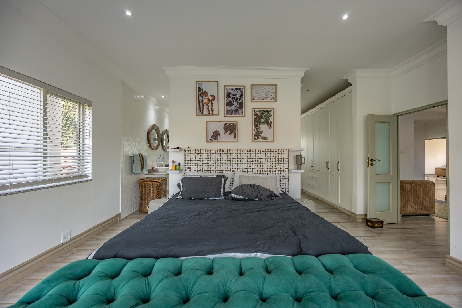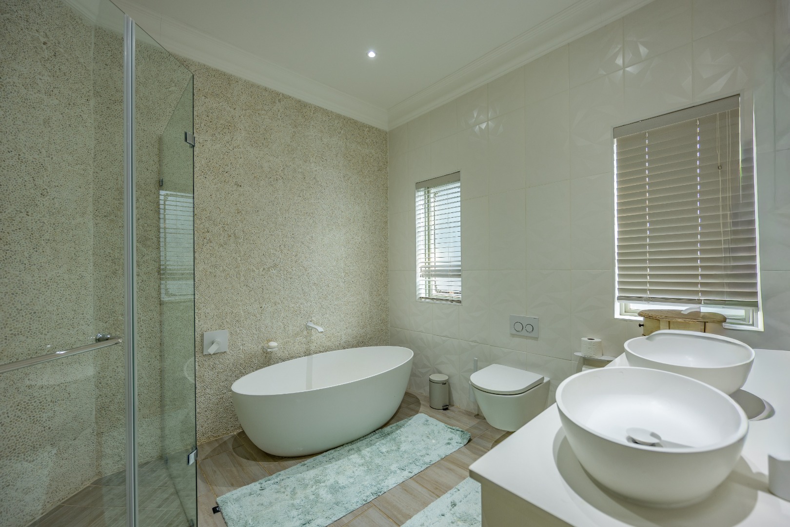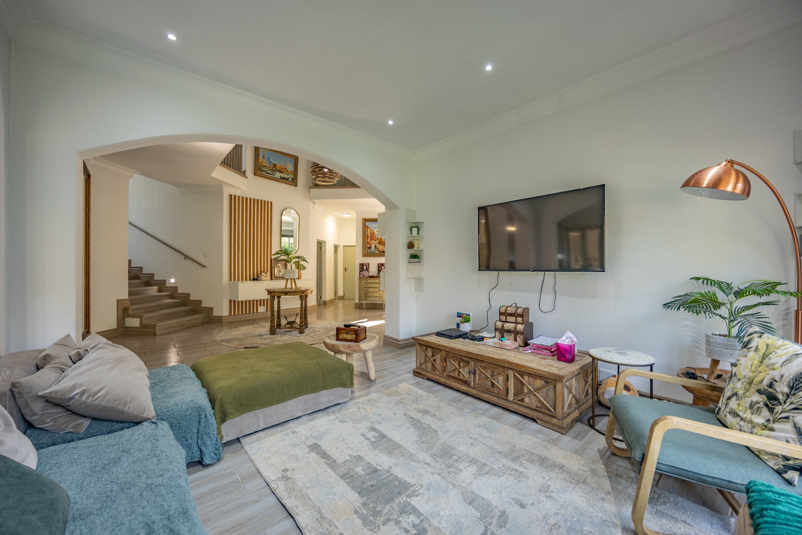 At the heart of the home lies the stylish kitchen, boasting a gas stove, pantry, and scullery with ample storage and workspace to inspire any culinary enthusiast. Upstairs, three spacious bedrooms each enjoy their own bathrooms, while a cosy pyjama lounge with a fireplace sets the scene for relaxed evenings. The luxurious master suite offers a full en-suite bathroom, generous closet space, and a private balcony overlooking the lush garden, accompanied by an adjoining dressing room to create his-and-hers wardrobes. Additional features such as automated garages, extra storage, and a separate entrance for trailers or additional vehicles further elevate the home’s practicality.