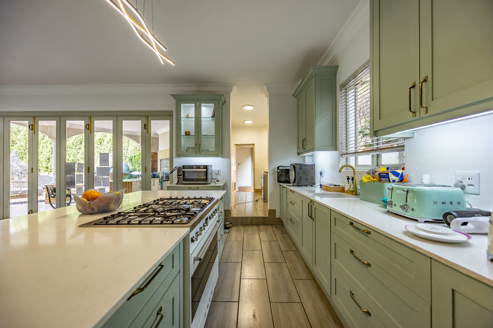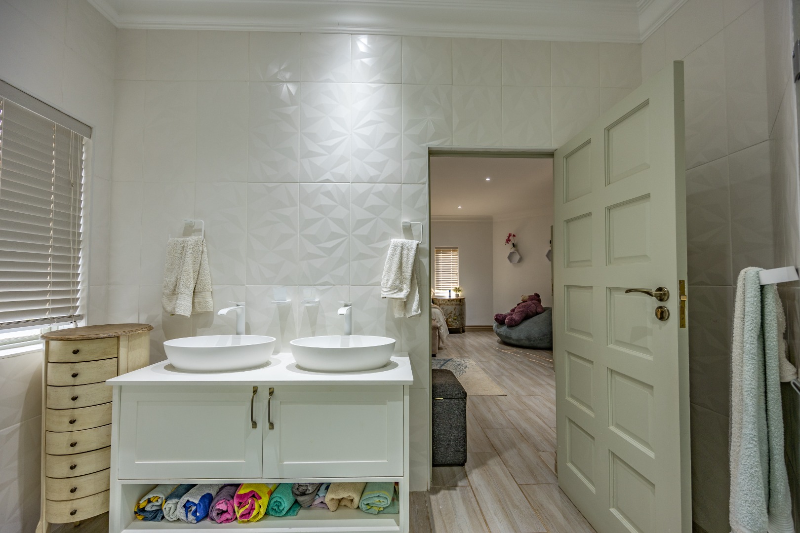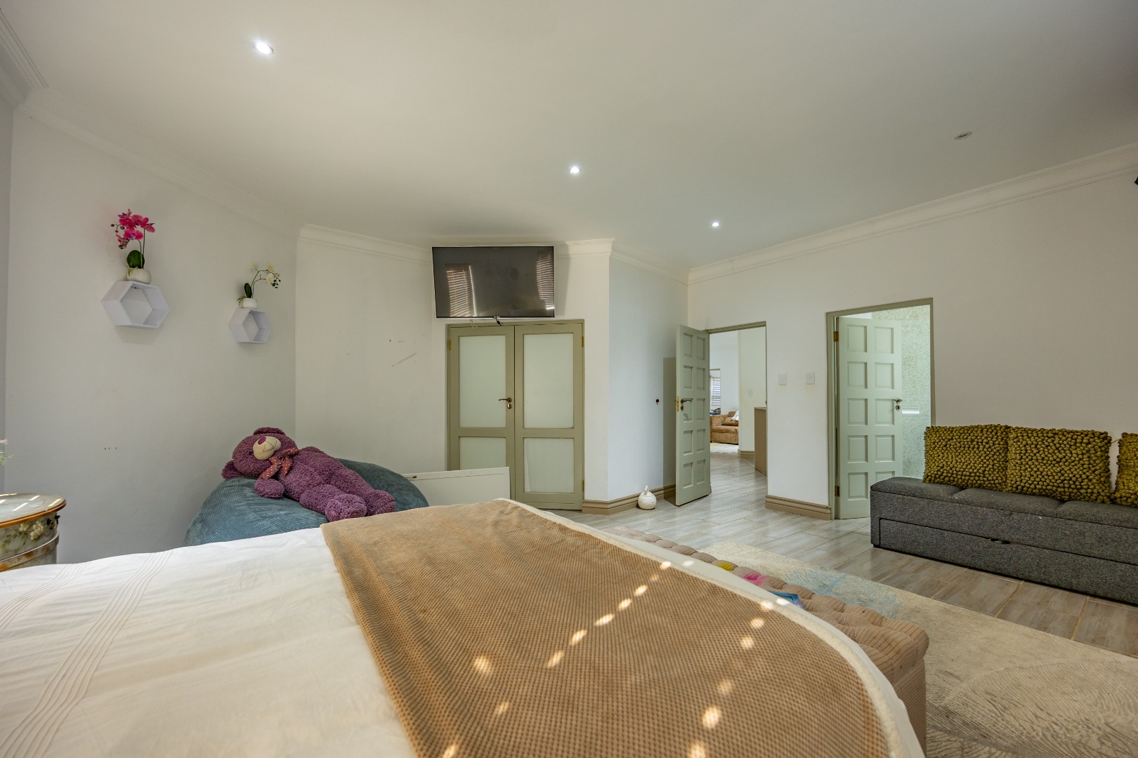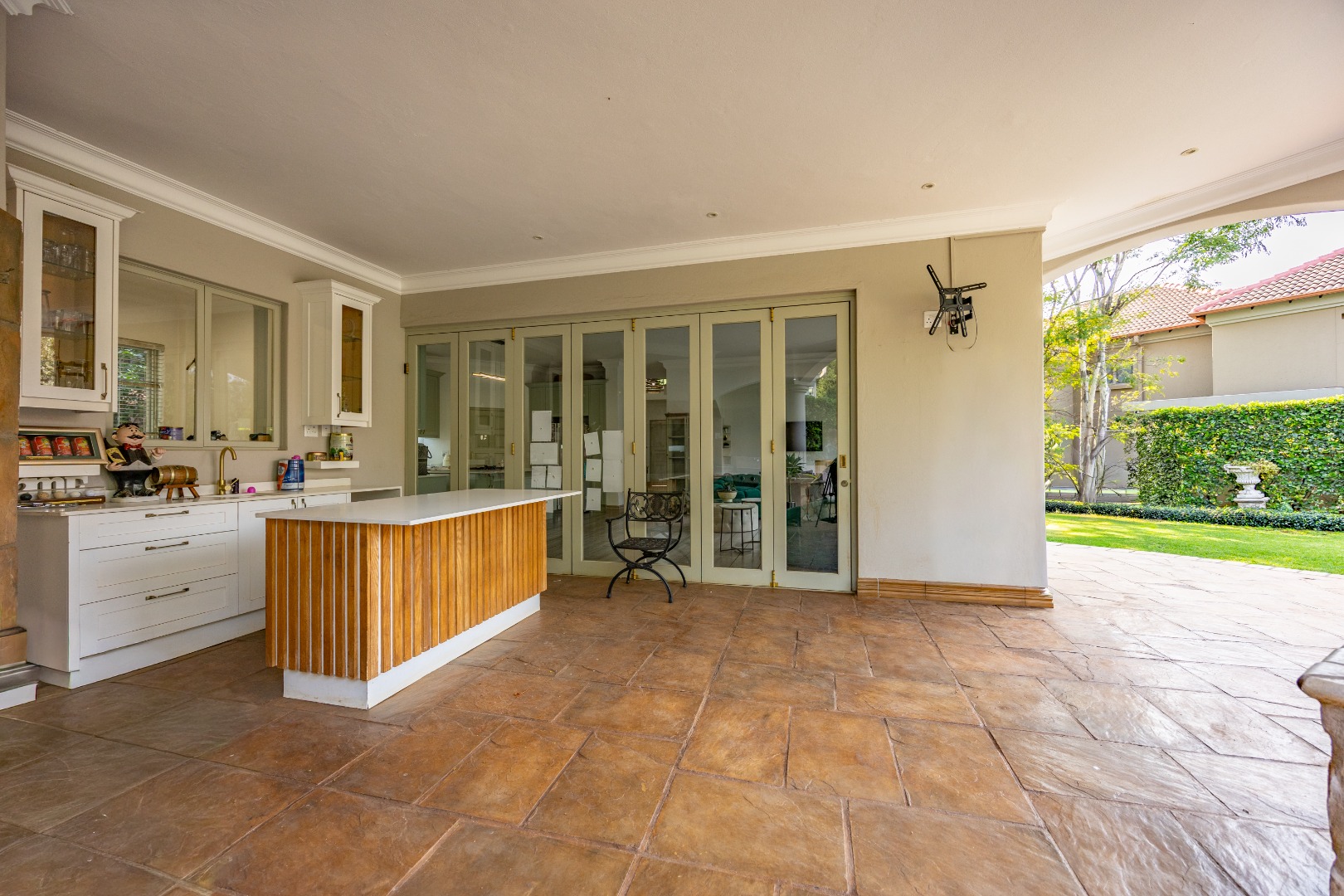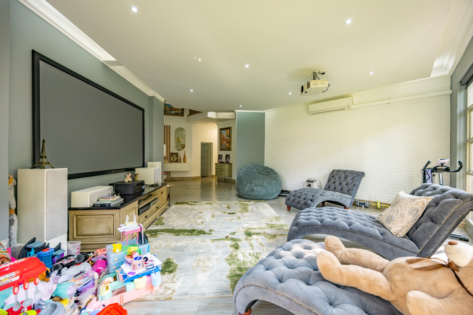 At the heart of the home lies the stylish kitchen, boasting a gas stove, pantry, and scullery with ample storage and workspace to inspire any culinary enthusiast. Upstairs, three spacious bedrooms each enjoy their own bathrooms, while a cosy pyjama lounge with a fireplace sets the scene for relaxed evenings. The luxurious master suite offers a full en-suite bathroom, generous closet space, and a private balcony overlooking the lush garden, accompanied by an adjoining dressing room to create his-and-hers wardrobes. Additional features such as automated garages, extra storage, and a separate entrance for trailers or additional vehicles further elevate the home’s practicality.