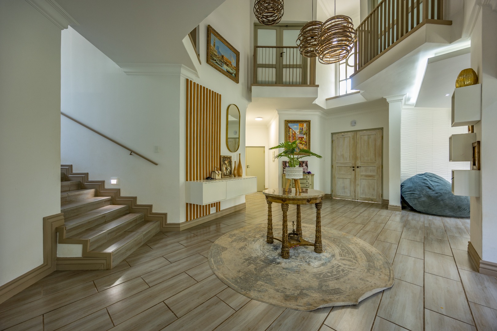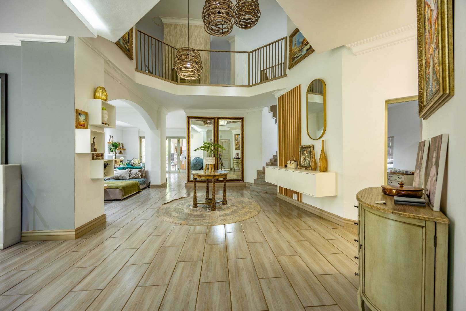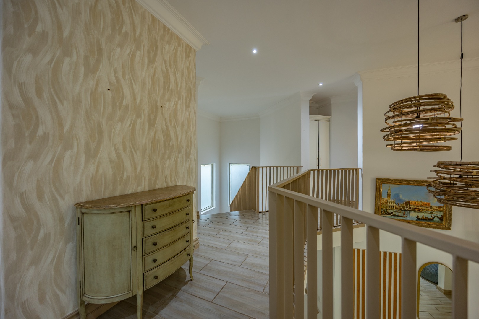 This newly renovated 4-bedroom masterpiece in the exclusive Boardwalk Manor Estate is designed for those who appreciate both modern elegance and the art of entertaining. From the moment you step inside, the grand entrance leads you into expansive living spaces that include a private cinema room, an inviting open-plan TV room, a dining area, and a gourmet kitchen. With its sleek finishes, thoughtful textures, and contemporary palette, this home radiates tranquillity while offering everything you need for easy, refined living. A versatile guest suite downstairs, complete with bathroom and private garden access, ensures comfort and convenience for visiting family and friends.