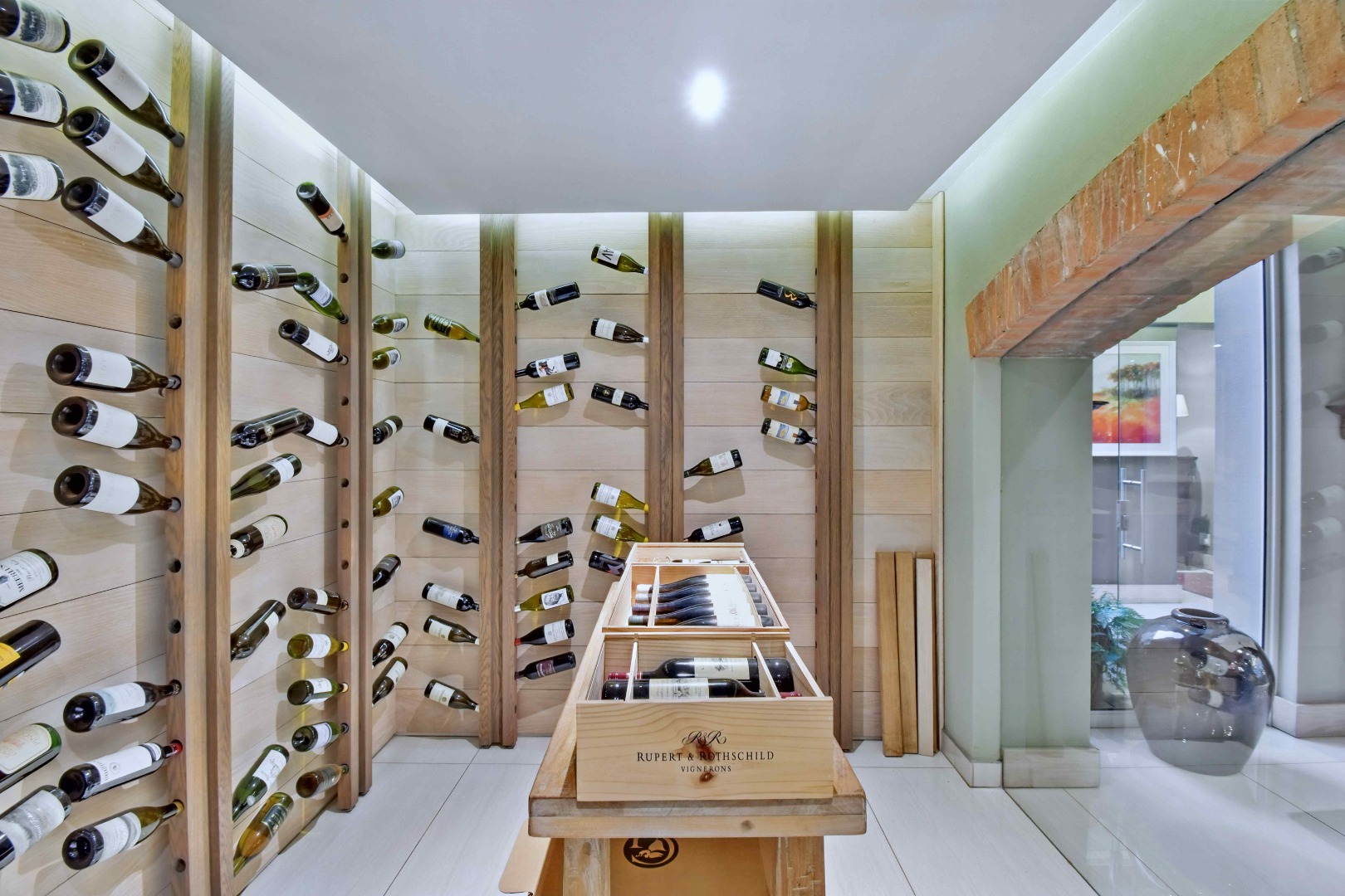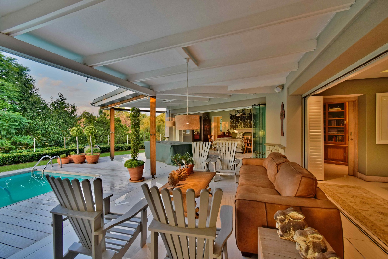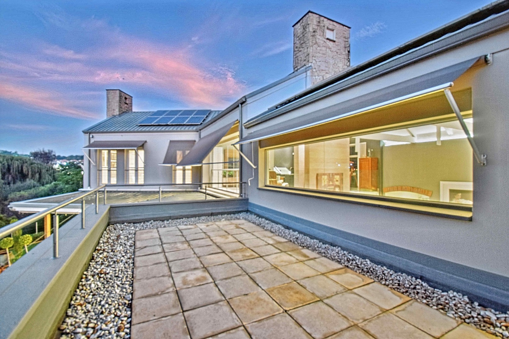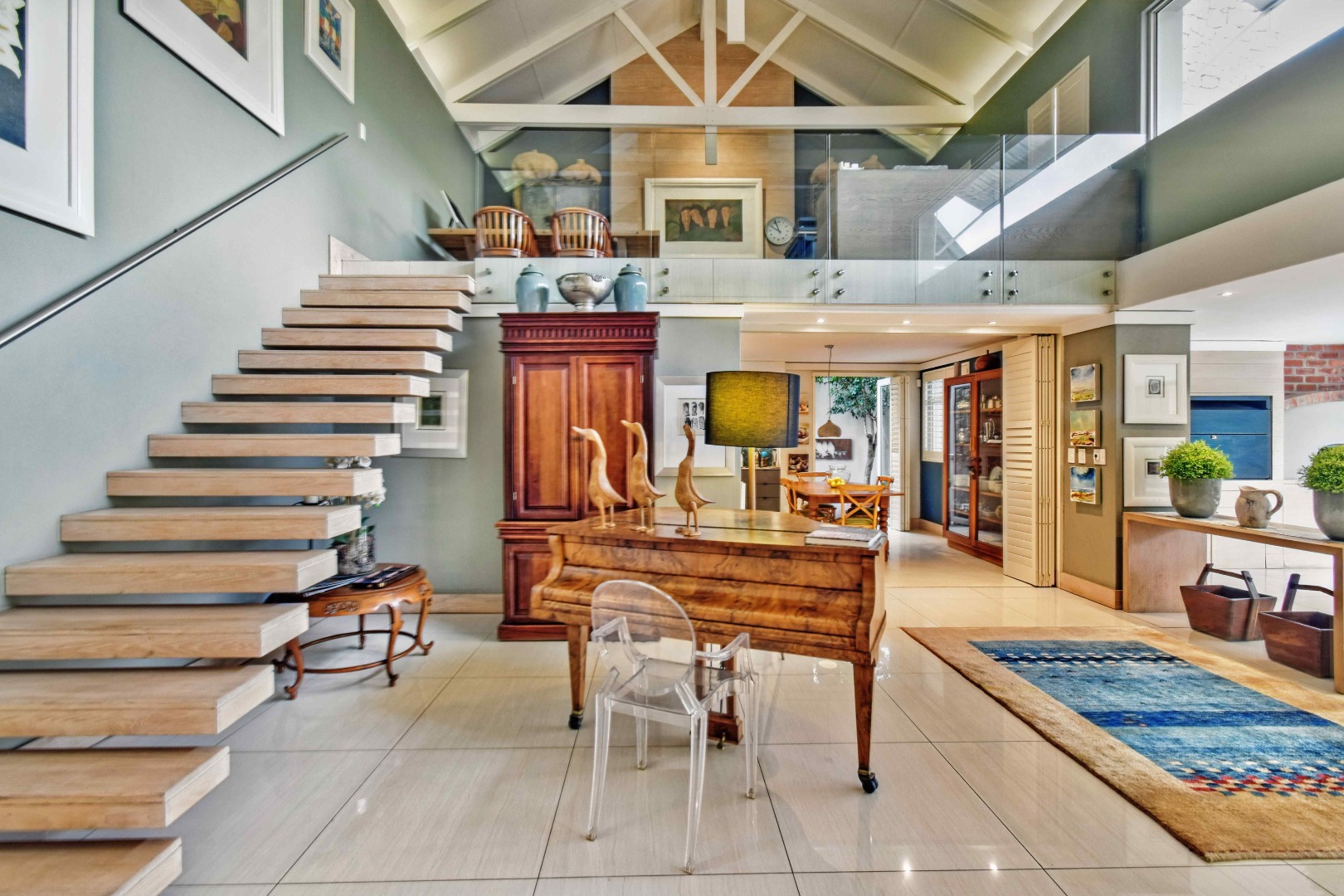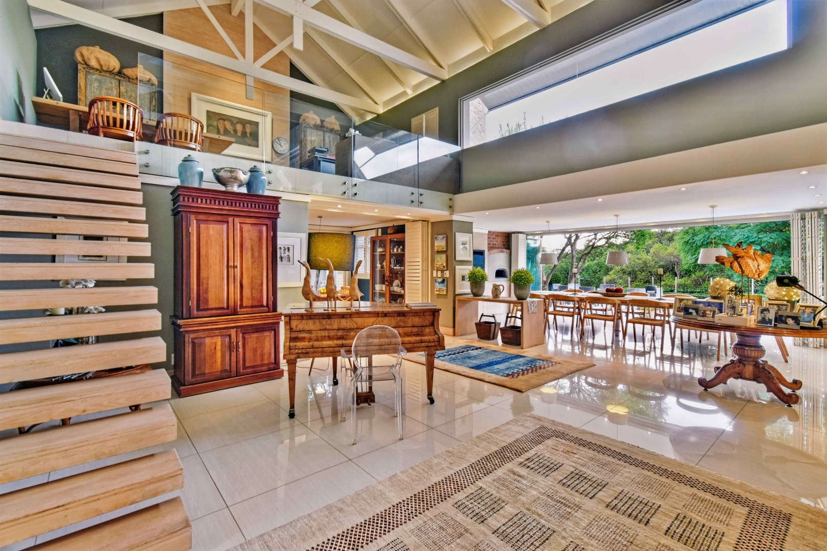 Inside, expansive open-plan living areas are filled with natural light, seamlessly connecting to the landscaped garden and entertainment spaces through frameless glass doors. A striking glass-walled wine cellar complements the dining area, while informal gatherings centre around the fire pit or built-in pizza oven. The designer kitchen blends beauty with practicality, featuring a scullery with space for three appliances, ample storage, and premium finishes. The ground-floor main suite is an opulent retreat with a walk-in closet and indulgent en suite bathroom with a steam shower. Upstairs, two pajama lounges with fireplaces and balconies create cozy family retreats, complemented by two spacious en suite bedrooms. A private flatlet with kitchenette and bathroom, a versatile study or creative studio, and well-equipped staff quarters complete the home.