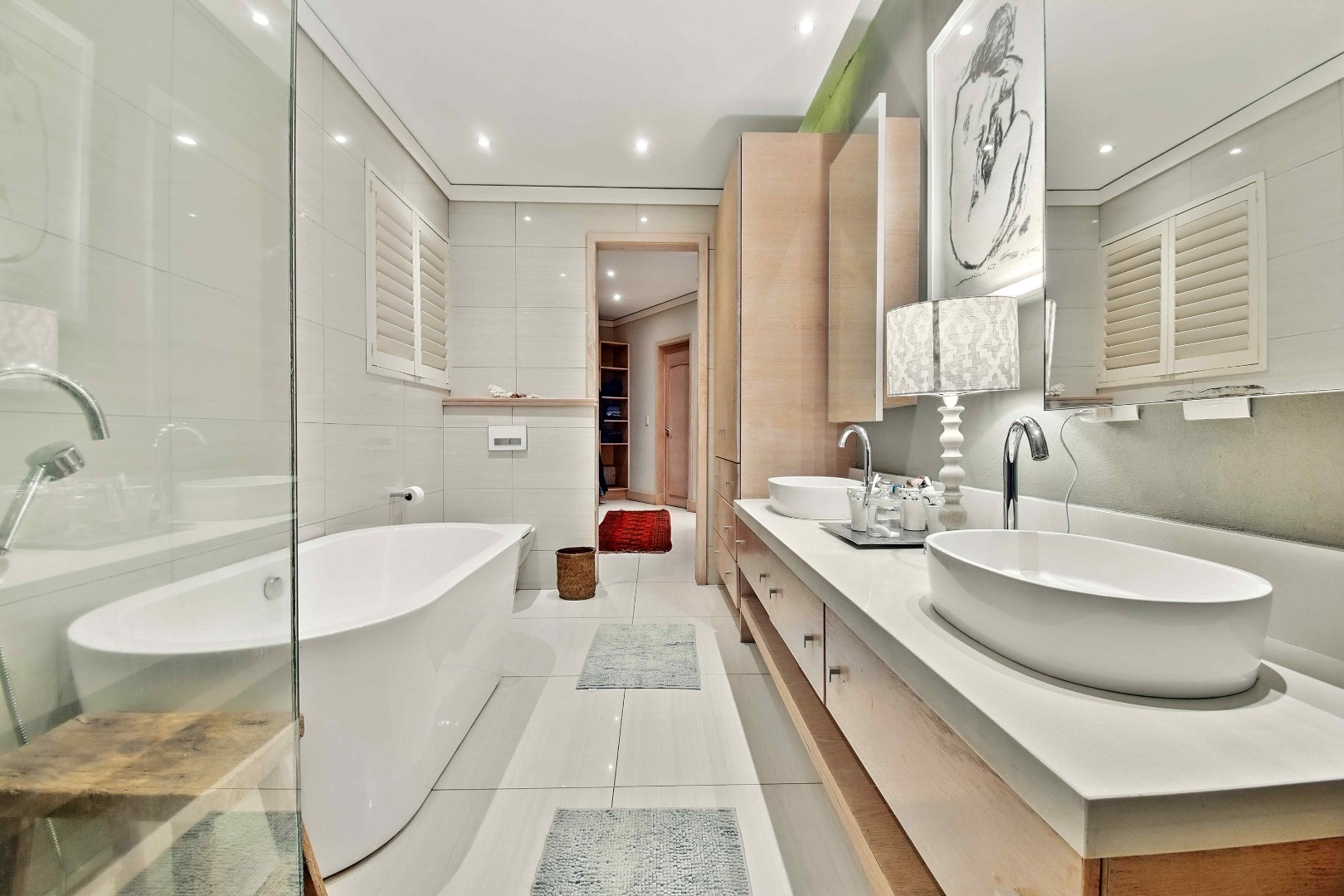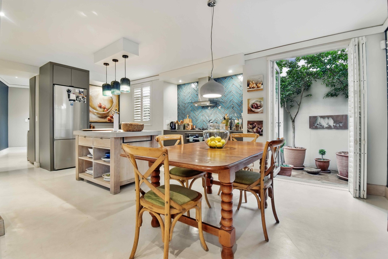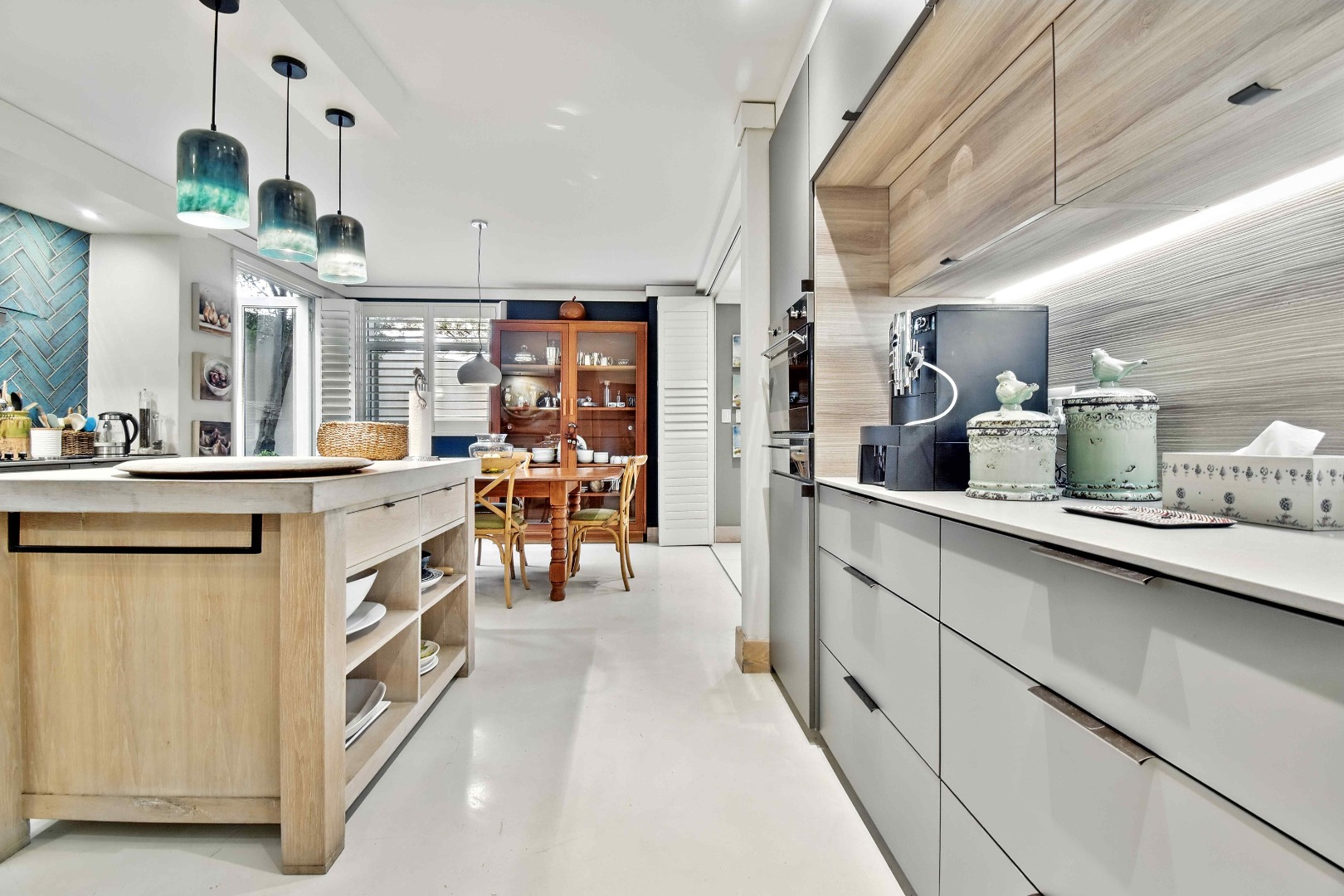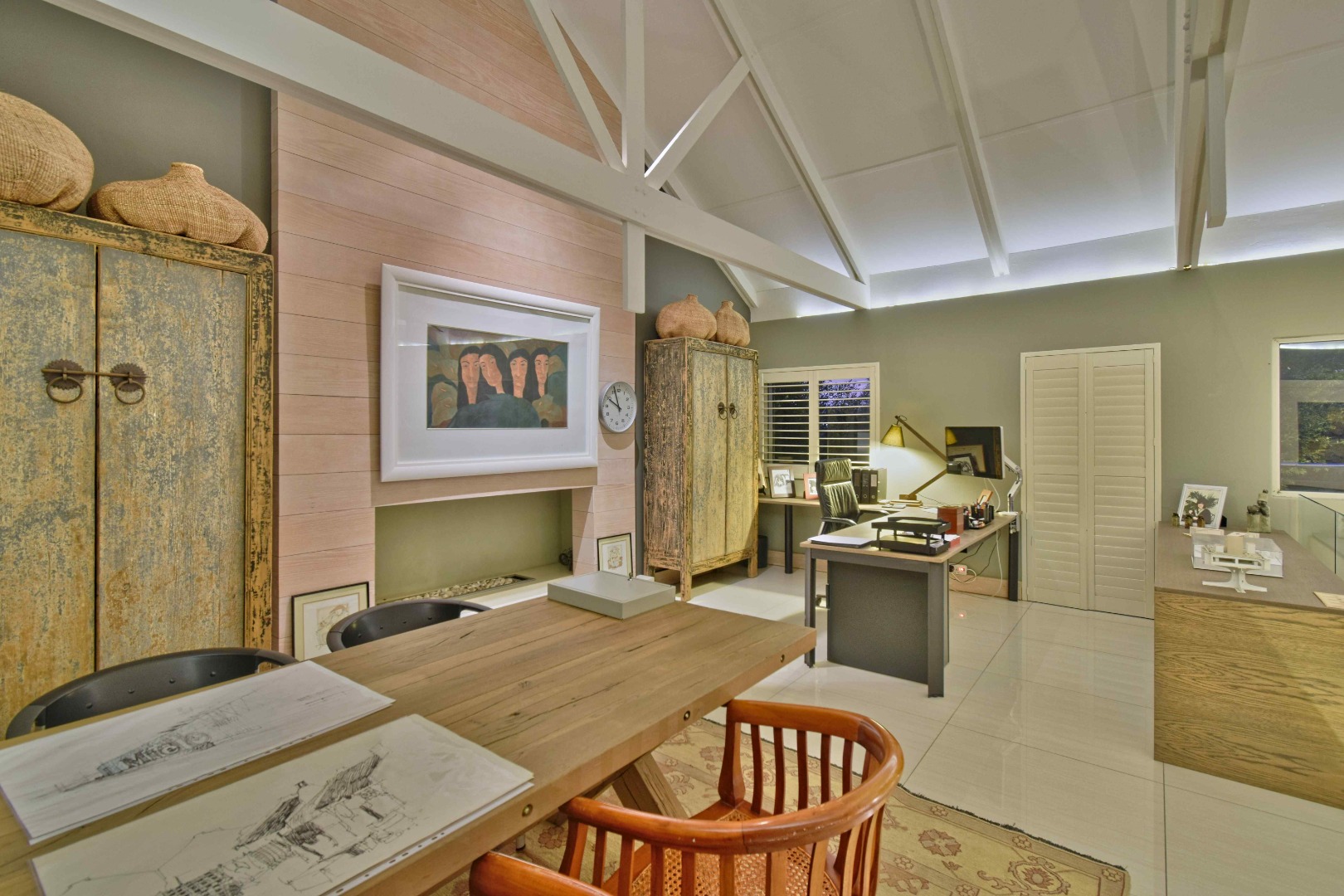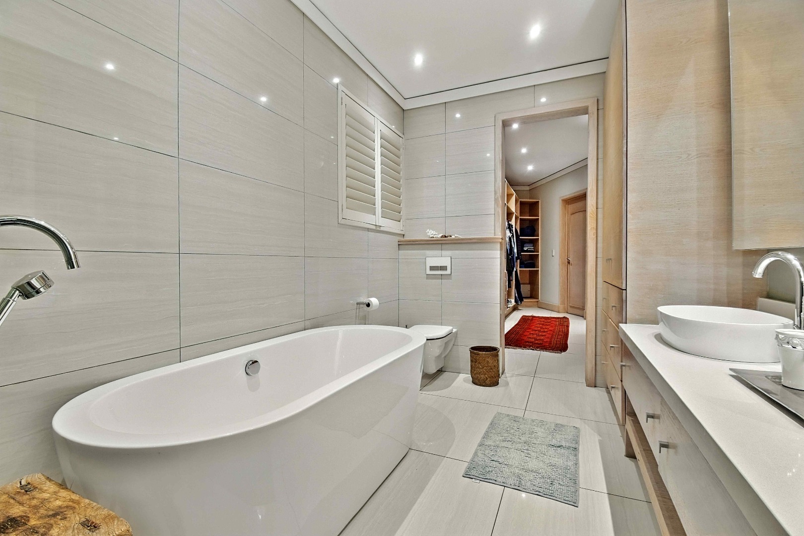 Inside, expansive open-plan living areas are filled with natural light, seamlessly connecting to the landscaped garden and entertainment spaces through frameless glass doors. A striking glass-walled wine cellar complements the dining area, while informal gatherings centre around the fire pit or built-in pizza oven. The designer kitchen blends beauty with practicality, featuring a scullery with space for three appliances, ample storage, and premium finishes. The ground-floor main suite is an opulent retreat with a walk-in closet and indulgent en suite bathroom with a steam shower. Upstairs, two pajama lounges with fireplaces and balconies create cozy family retreats, complemented by two spacious en suite bedrooms. A private flatlet with kitchenette and bathroom, a versatile study or creative studio, and well-equipped staff quarters complete the home.