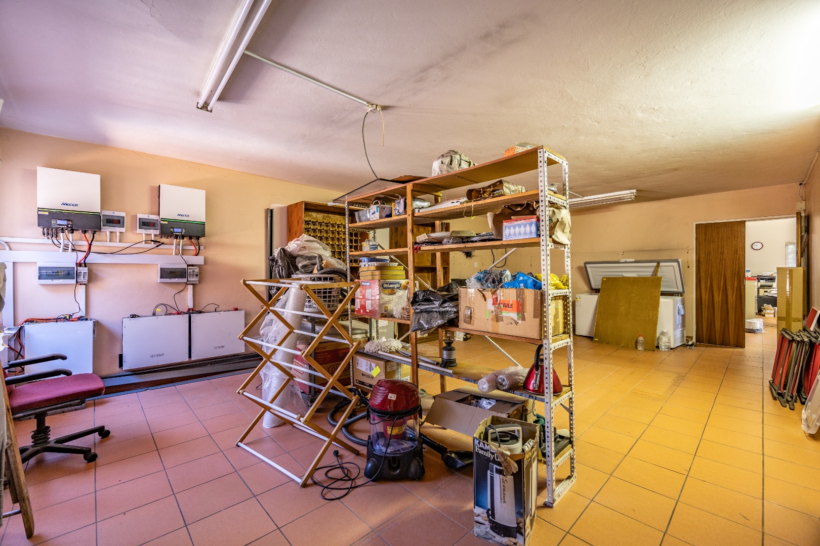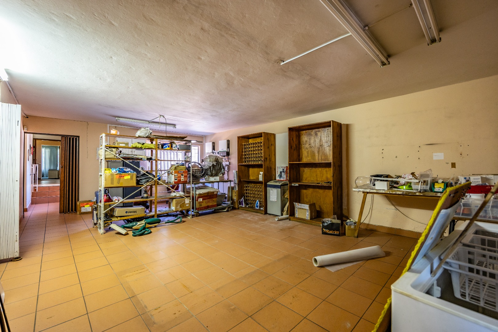 The garage leads directly into a spacious workshop or storage area, perfect for hobbies, projects, equipment storage, or additional workspace.