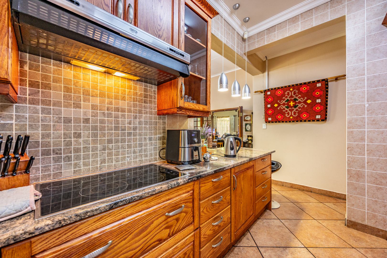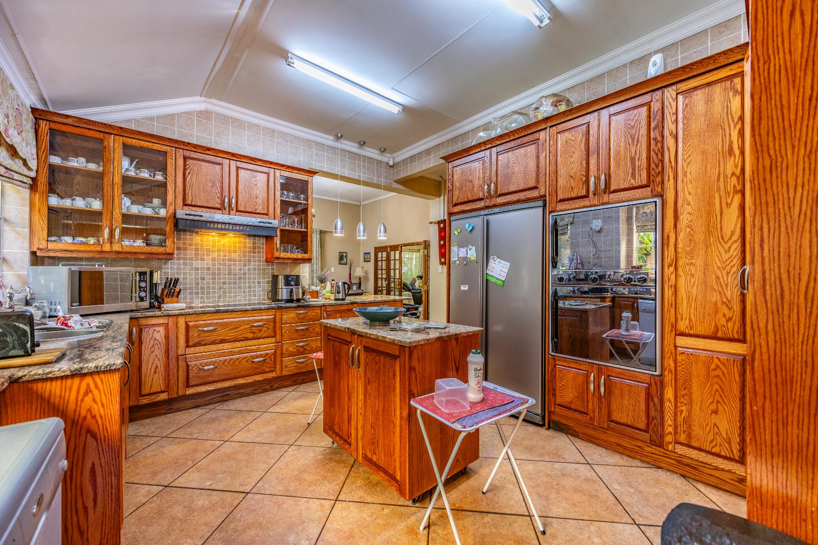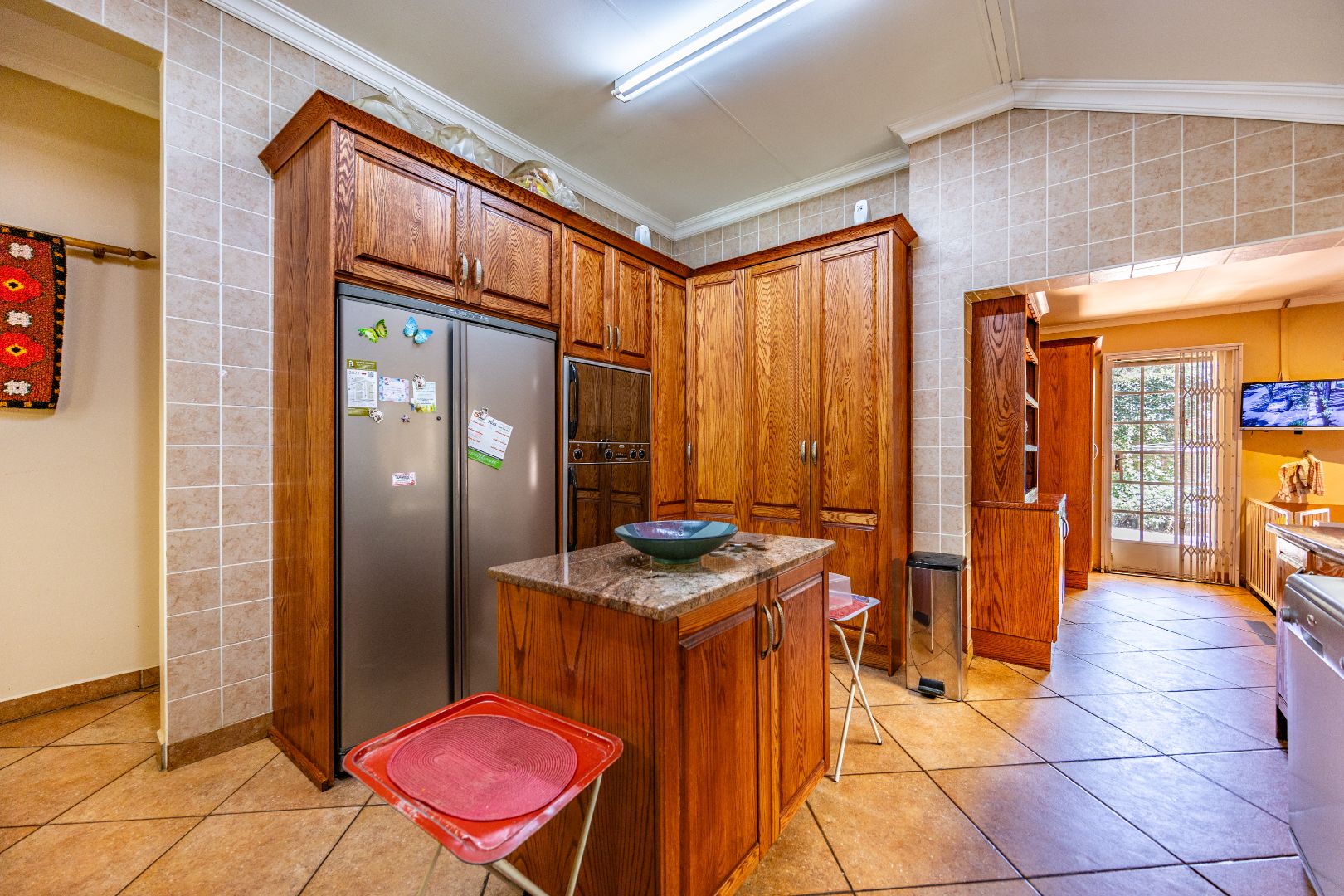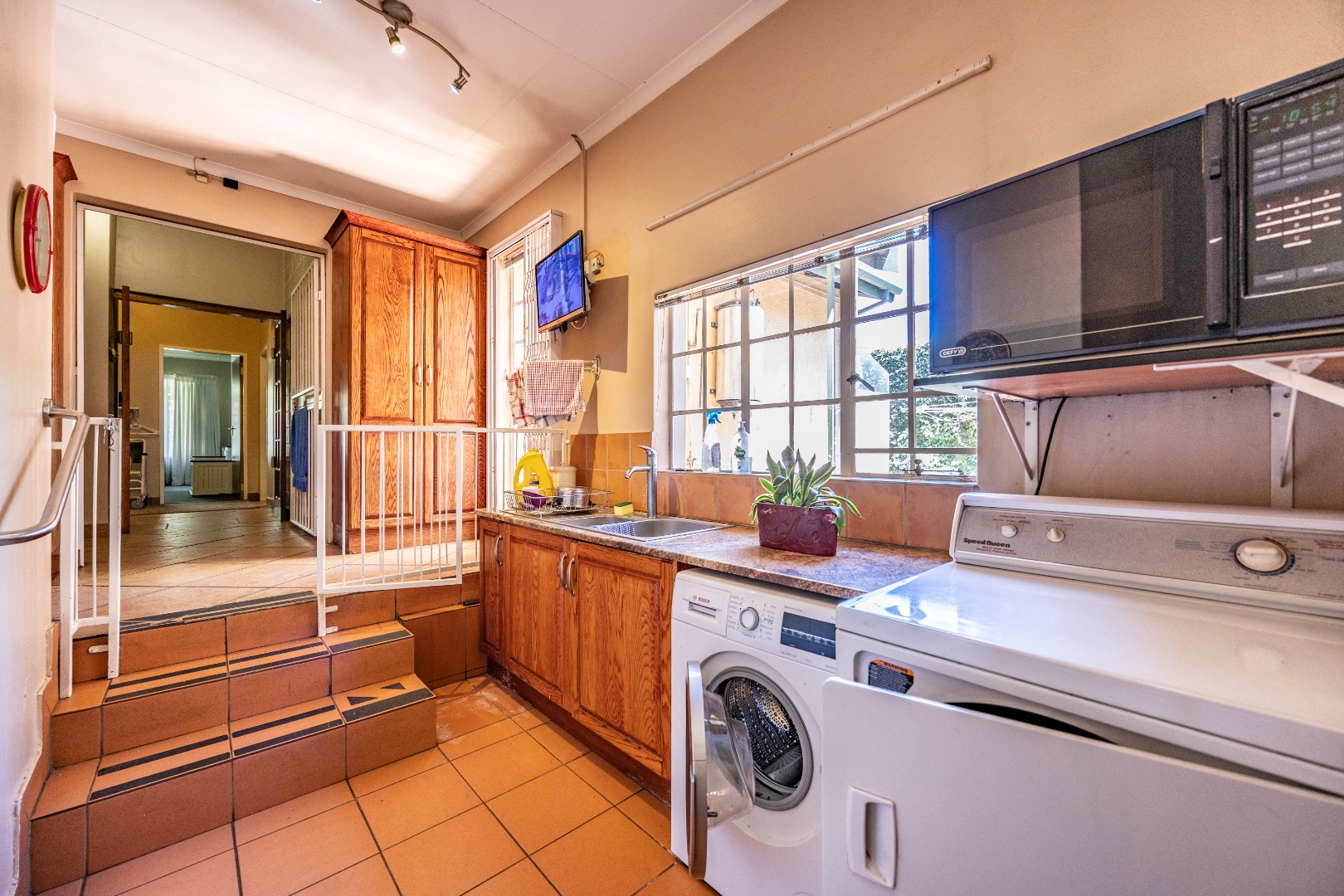 The kitchen is spacious and well-equipped, offering ample cupboard and countertop space for cooking and entertaining. A separate scullery and laundry area add extra practicality, keeping the main kitchen neat and organized while providing additional storage and workspace.