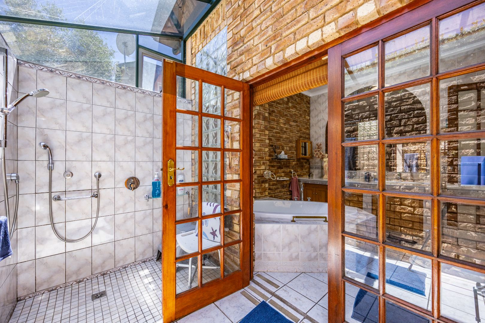 As you arrive, you are welcomed by a well-kept front garden and lush lawn, enhanced by an efficient irrigation system that keeps the outdoor spaces looking beautiful year-round. The outdoor entertainment area is designed for relaxation and hosting guests, featuring a sparkling swimming pool and a charming lapa with a built-in braai — ideal for weekend gatherings, summer afternoons, and memorable family celebrations.