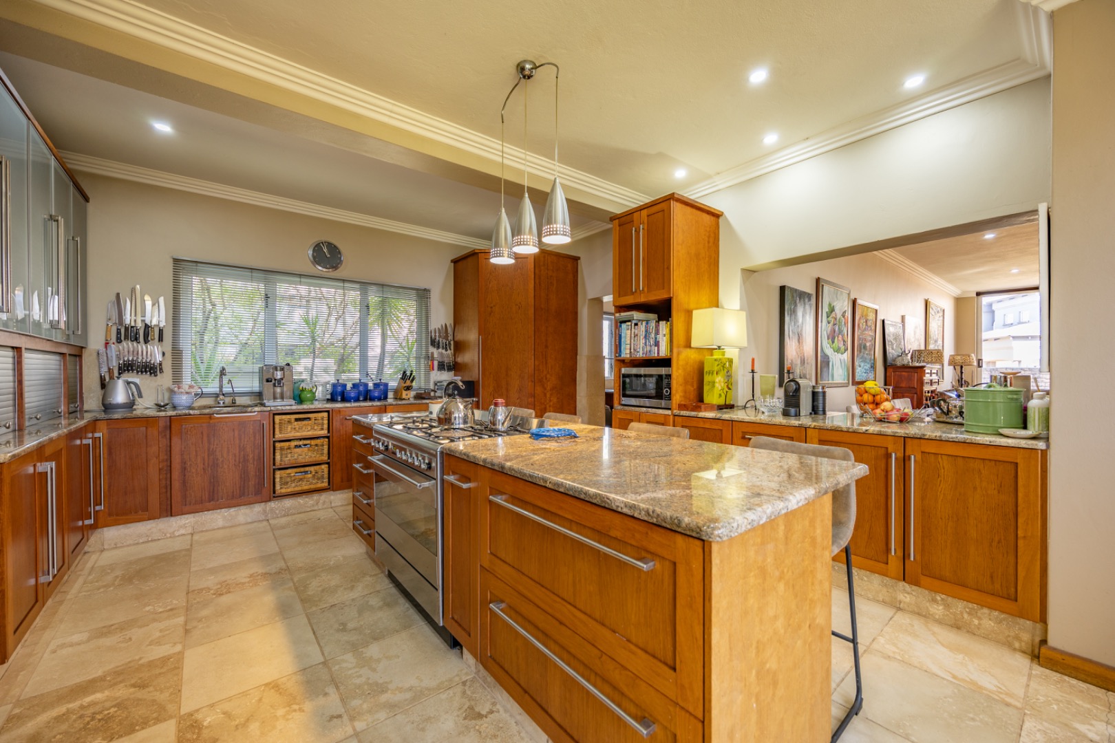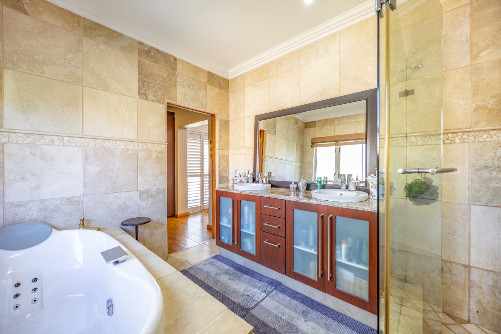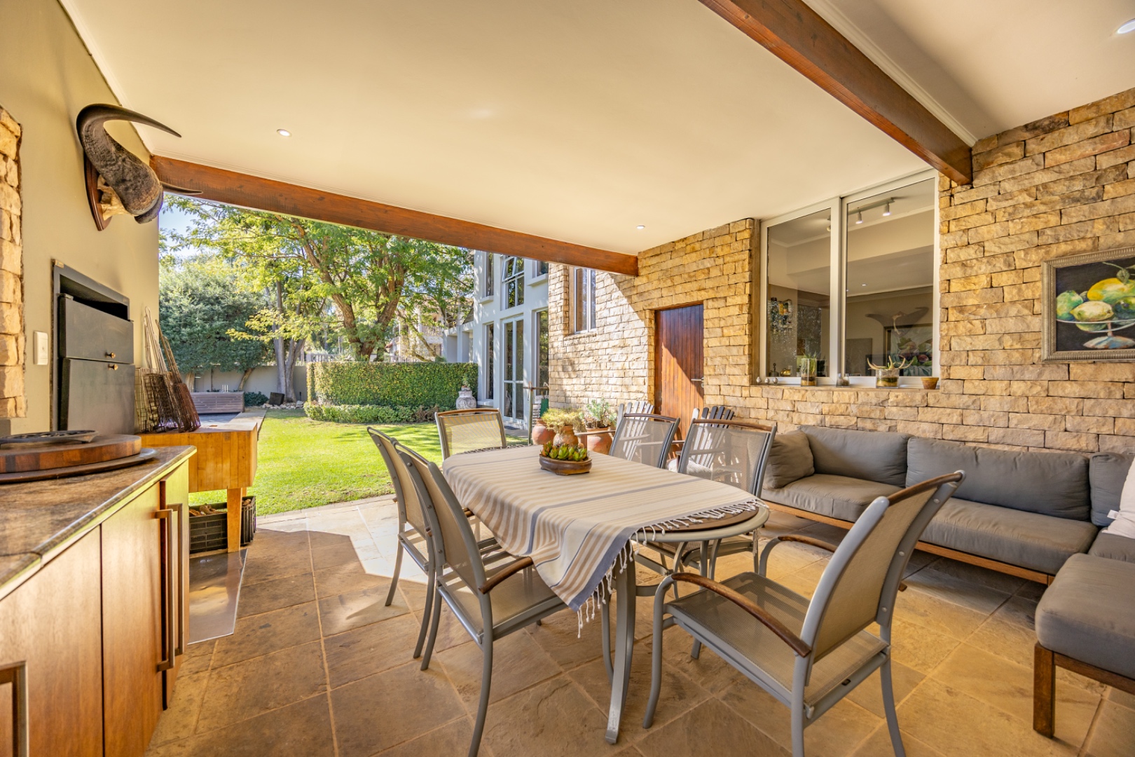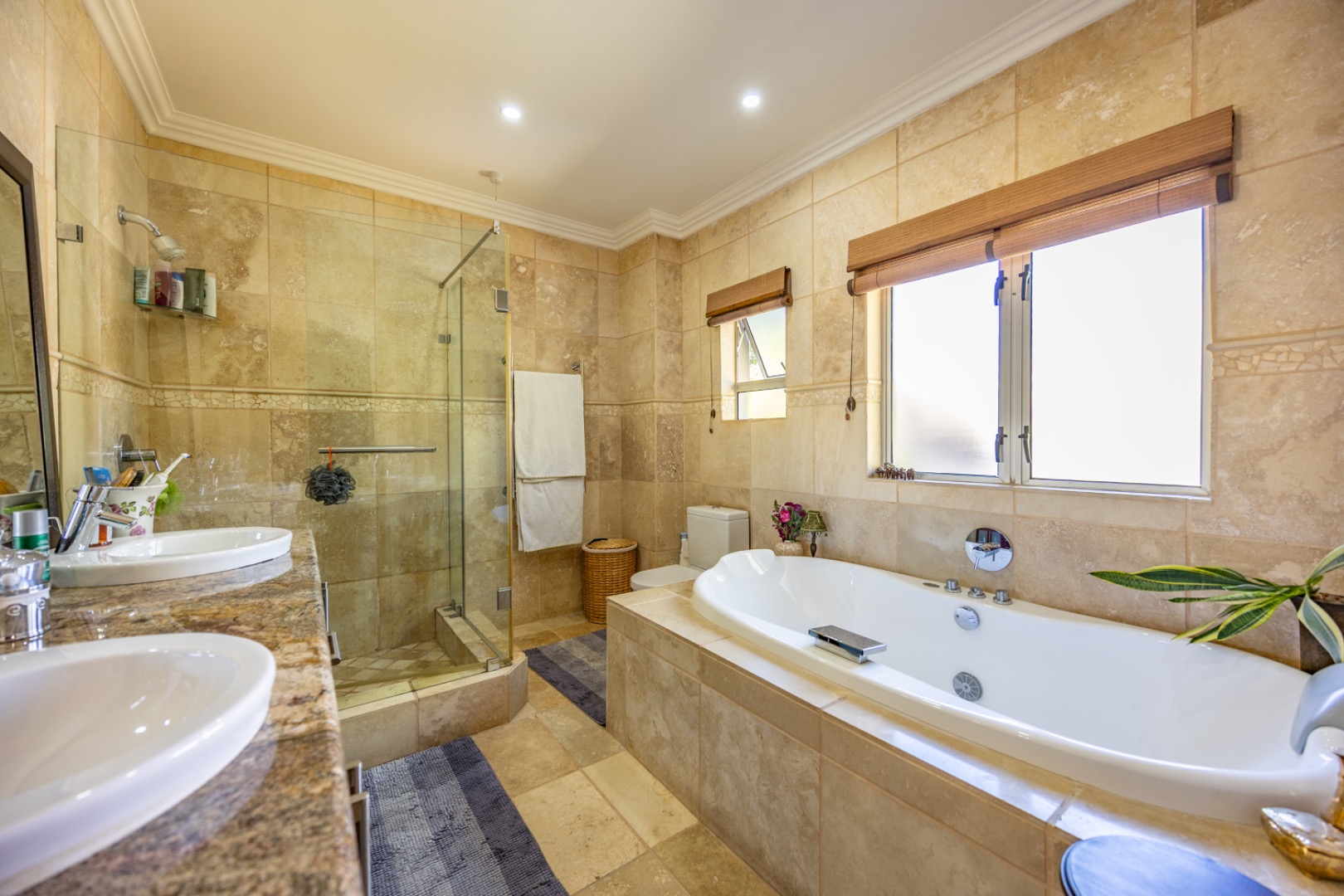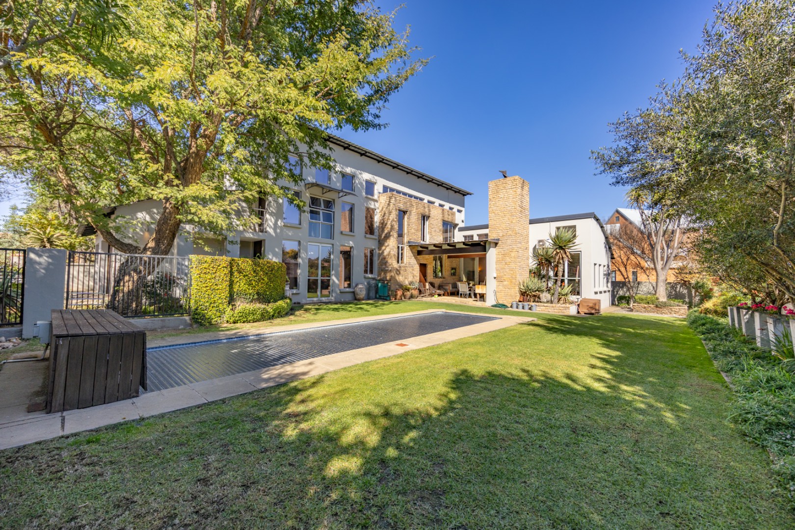 Located within a secure estate boasting four dams stocked with trout for catch-and-release fishing, this property also includes a domestic room with its own toilet and shower, two garden storage units, a wine cellar, and an additional office with a private entrance. Energy efficiency is maximized with a solar system comprising 12 panels, two inverters, and three batteries, and the home operates on a prepaid electricity system. The three garages include one with a drive-through feature for added convenience, and the landscaped garden is maintained with an automated irrigation system. All curtains and the bar fridge will remain with the property. This home represents a rare opportunity to enjoy estate living at its finest, blending thoughtful design with premium finishes and sustainable features in an idyllic setting.