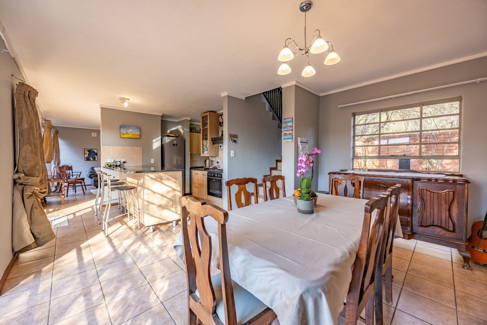 Welcome to your next home or investment opportunity in the serene and secure Nature Ridge Estate. This beautifully maintained three-bedroom duplex offers comfortable living in a sought-after part of Pretoria East. Step inside and you'll find a modern, well-fitted kitchen flowing seamlessly into the open-plan dining and living areas — an ideal layout for family living and effortless entertaining. The living space opens onto a charming patio featuring a built-in braai, overlooking a neat, established garden. Whether you're hosting guests or enjoying a quiet evening at home, this space is designed for comfort and relaxation. Upstairs, three well-sized bedrooms provide ample space for family or guests. The master bedroom includes its own en-suite bathroom, while a full second bathroom and a guest cloakroom downstairs add to the convenience. This home also offers a double lock-up garage and is situated in a quiet, access-controlled complex with 24-hour manned security, ensuring peace of mind around the clock. The estate is family-friendly and ideal for retirees seeking a secure, low-maintenance lifestyle. It’s also pet-friendly, subject to body corporate approval. Located close to excellent schools, popular shopping centers, and major arterial routes, Nature Ridge combines modern comfort with everyday convenience. An added bonus is the presence of a reliable tenant who would like to remain in the property offering immediate rental income for investors seeking a hassle-free asset.