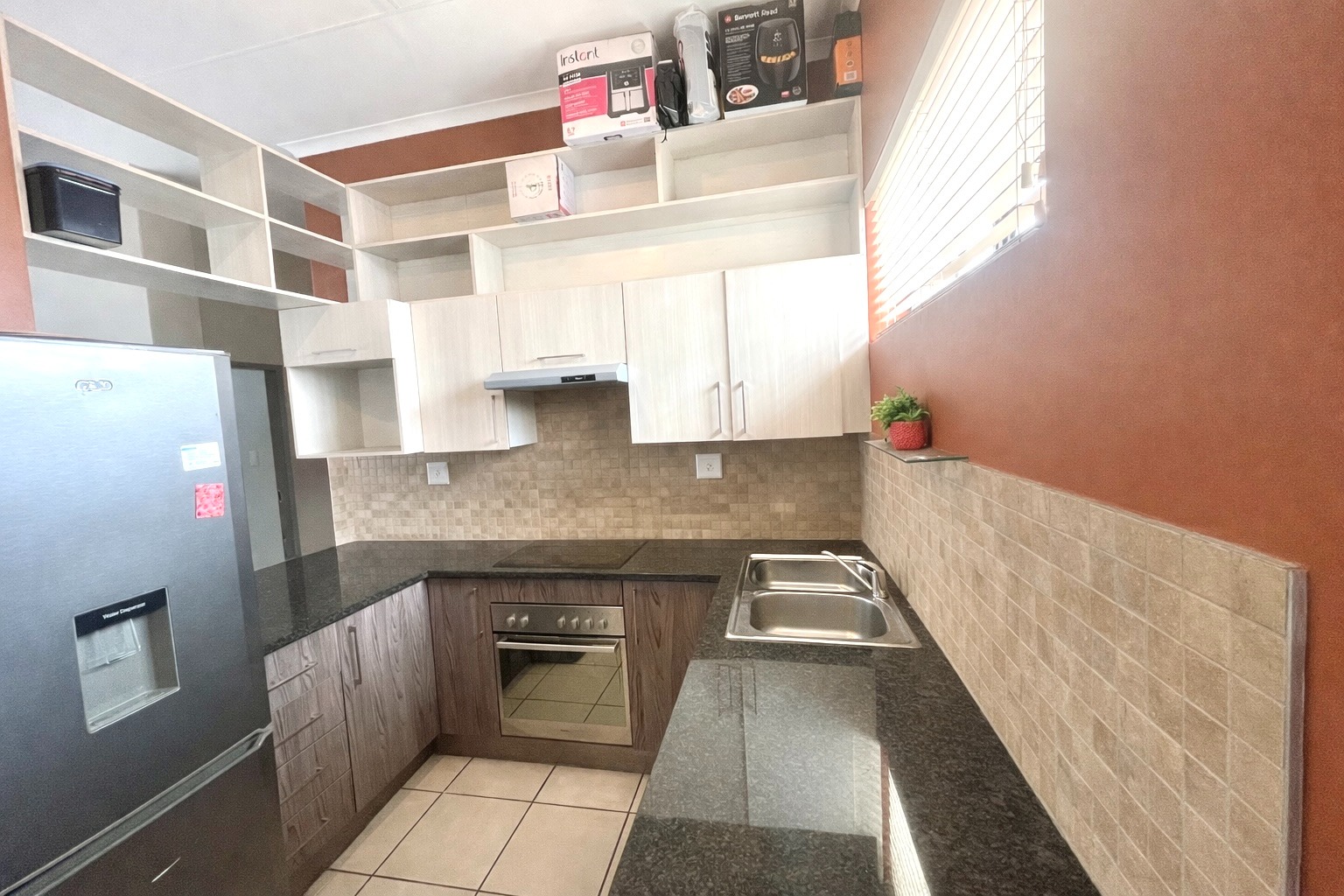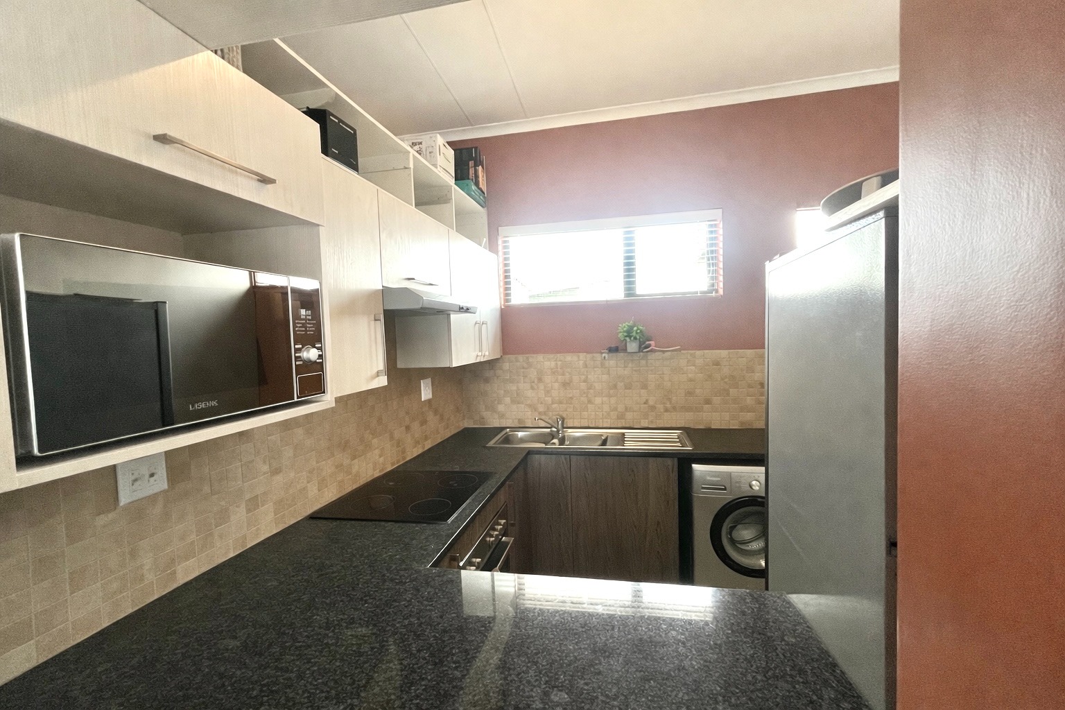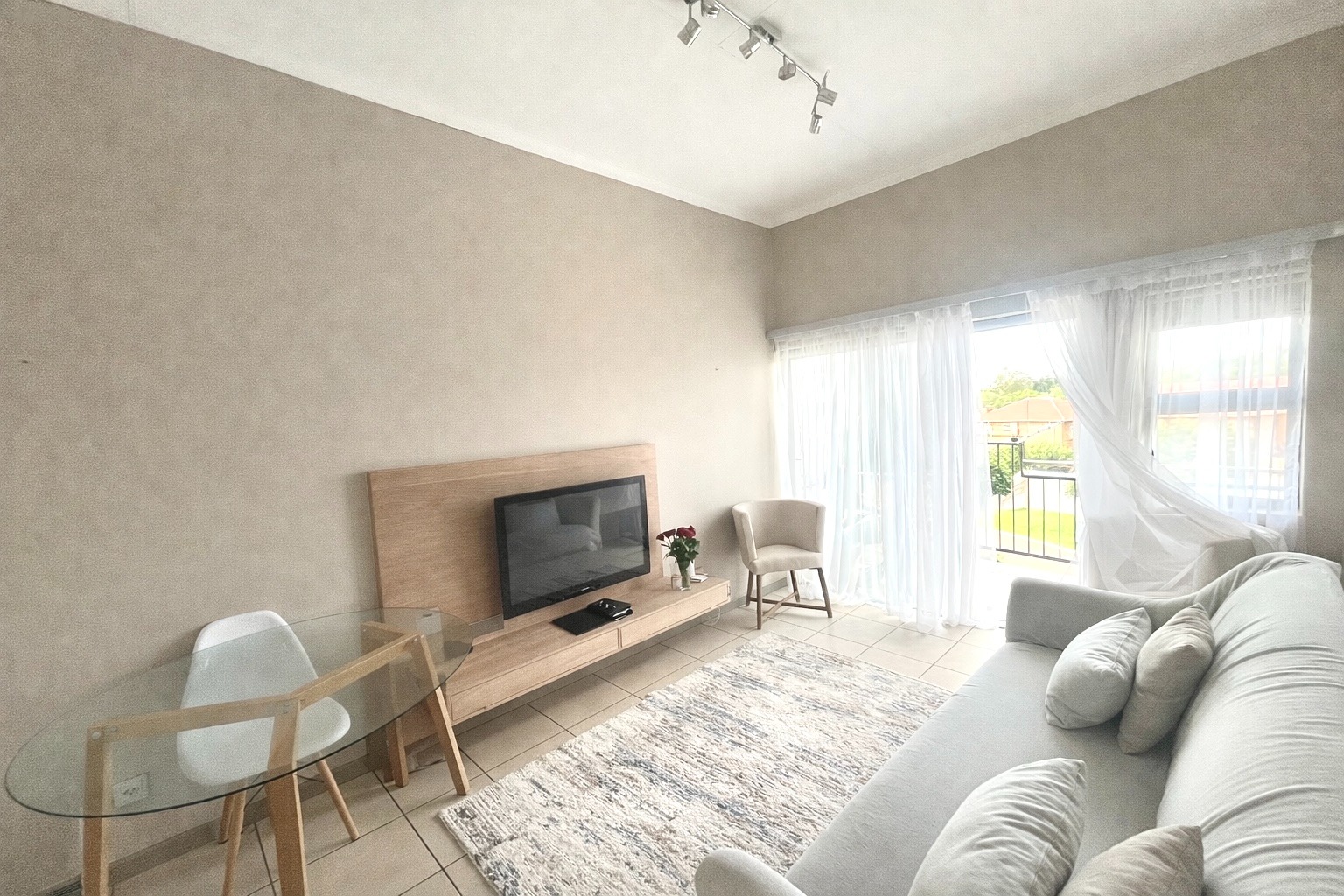 Discover modern living in this stylish 2-bedroom, 2-bathroom apartment located within a secure complex in Elarduspark, Pretoria. Spanning 67 square metres, this residence offers a contemporary open-plan layout, seamlessly connecting the living, dining, and kitchen areas. The interior boasts neutral decor, light tiled flooring throughout, and abundant natural light, creating a bright and inviting atmosphere. The well-appointed kitchen features modern built-in appliances, including an oven and hob, ample cabinet storage, dark countertops, and a double stainless steel sink, catering to all your culinary needs. The apartment comprises two comfortable bedrooms, each designed with neutral tones and tiled flooring. The main bedroom benefits from an en-suite bathroom, while both rooms offer practical built-in wardrobes, with some featuring mirrored doors for added convenience. The bathrooms are functional and well-maintained, providing essential amenities for daily living. A dedicated study space, also with natural light, offers flexibility for a home office or additional utility. Step outside to a private balcony, perfect for relaxation or entertaining, complete with a built-in braai for enjoyable outdoor cooking. The property includes two dedicated parking bays, ensuring convenience for residents. This apartment is situated within a security complex, offering peace of mind with features such as 24-hour security, CCTV surveillance, an access gate, electric fencing, and an alarm system. Fibre connectivity is also available, supporting modern digital lifestyles. Elarduspark is a well-established residential suburb in Pretoria, known for its family-friendly environment and convenient access to local amenities, schools, and major transport routes. It offers a balanced lifestyle with a strong sense of community. Key Features: * 2 Bedrooms, 2 Bathrooms * Open-plan living area * Modern kitchen with built-in appliances * Private balcony with built-in braai * Secure complex with 24-hour security * Two dedicated parking bays * Fibre ready * Tiled flooring throughout * 67 sqm floor size